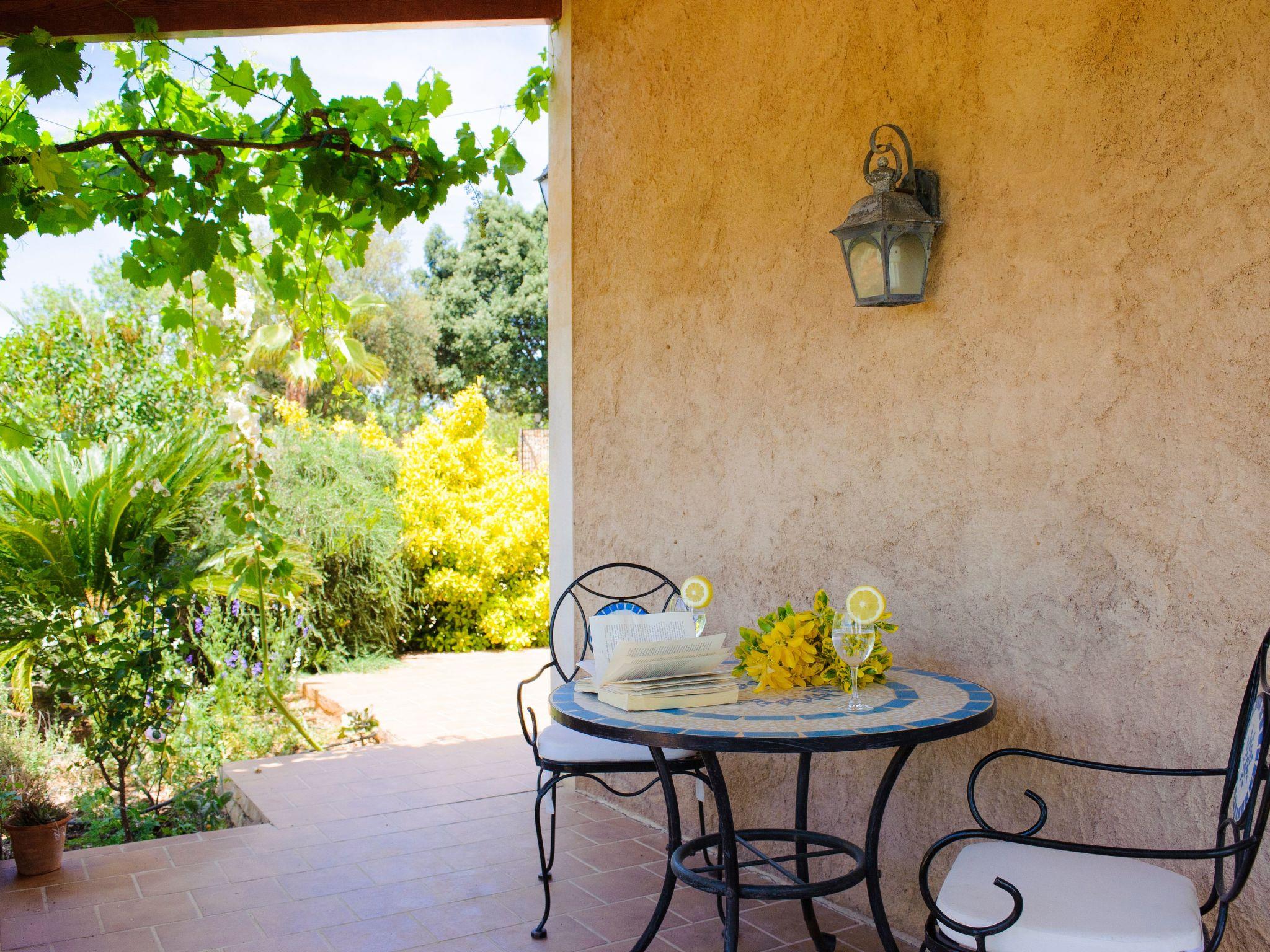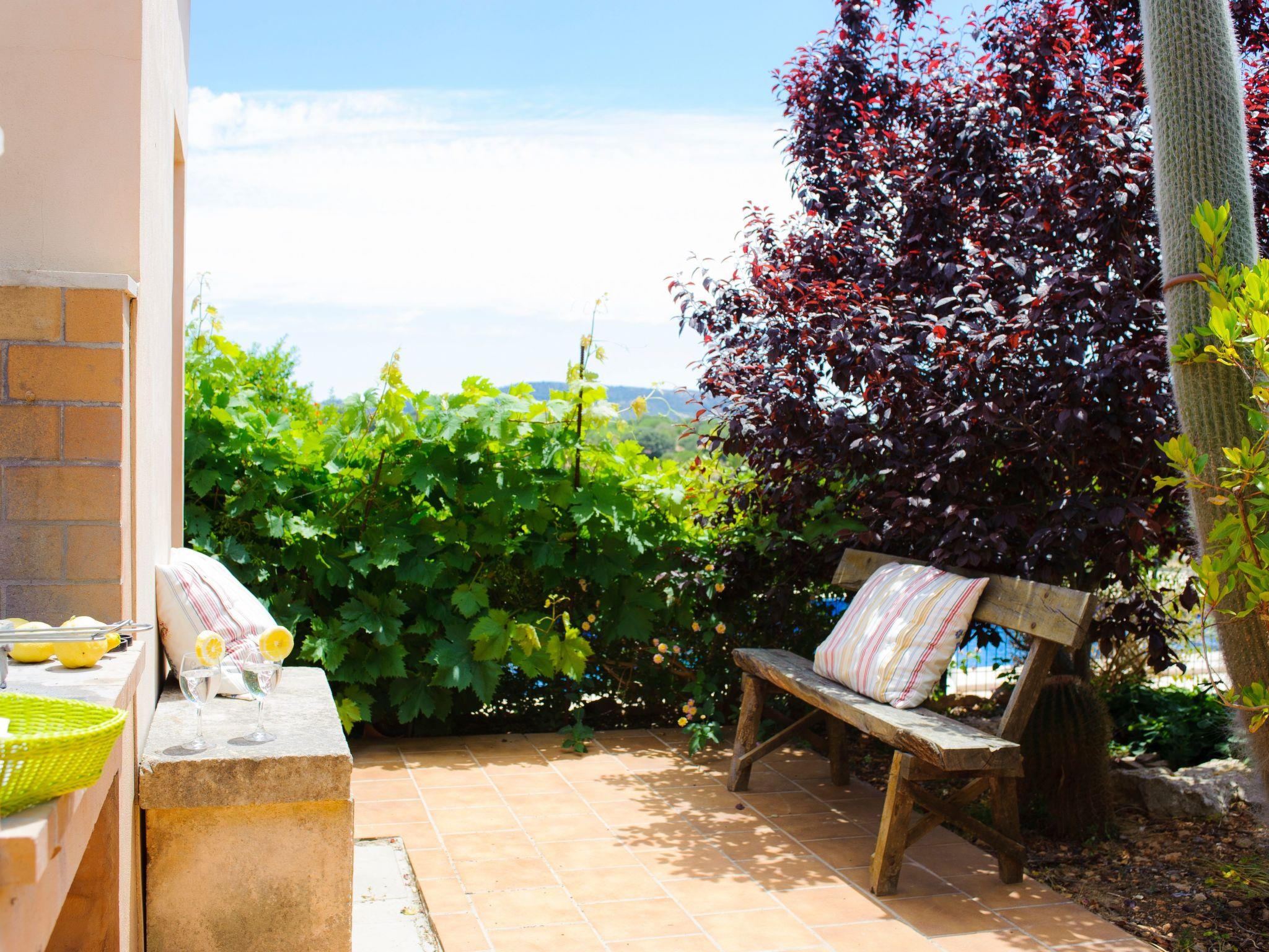 From the veranda, a small staircase leads to the beautiful, large pool area, which is fully fenced and has child-friendly steps. Sun loungers invite you to sunbathe and enjoy the marvellous view. From the rear terrace you also have access to a shower room with toilet. In the garden area there is a brick-built barbecue area and a seating area where you can relax. There are wonderfully fragrant shrubs and citrus trees as far as the eye can see and the large lawns are an invitation to stay, and not just for the children.