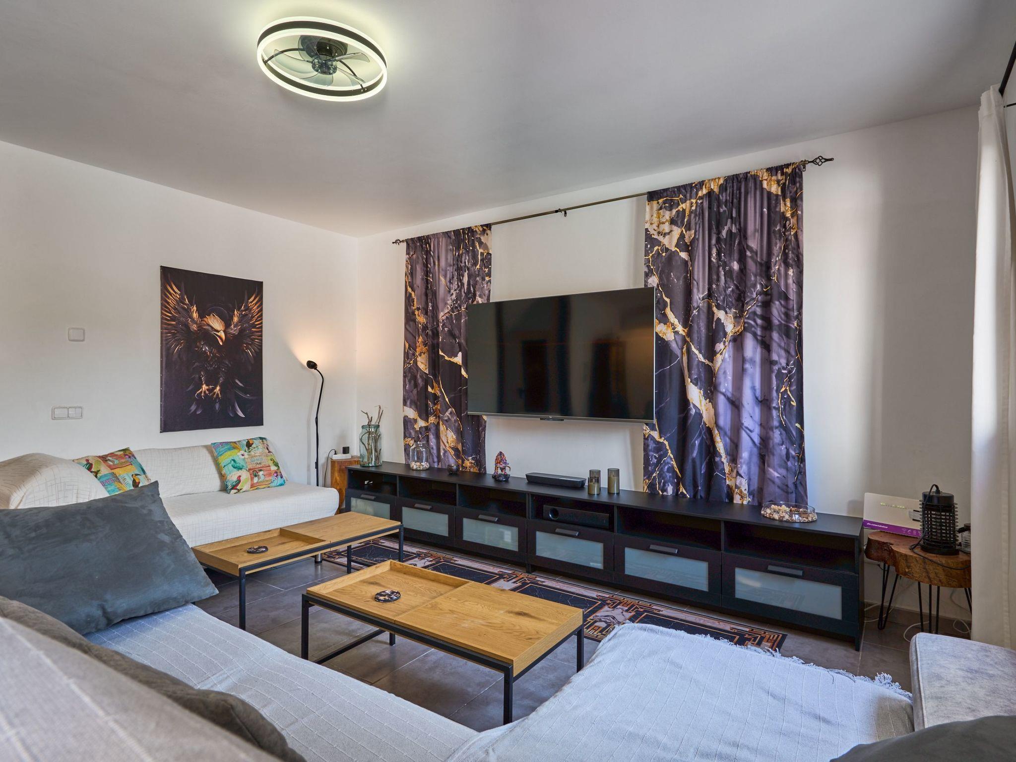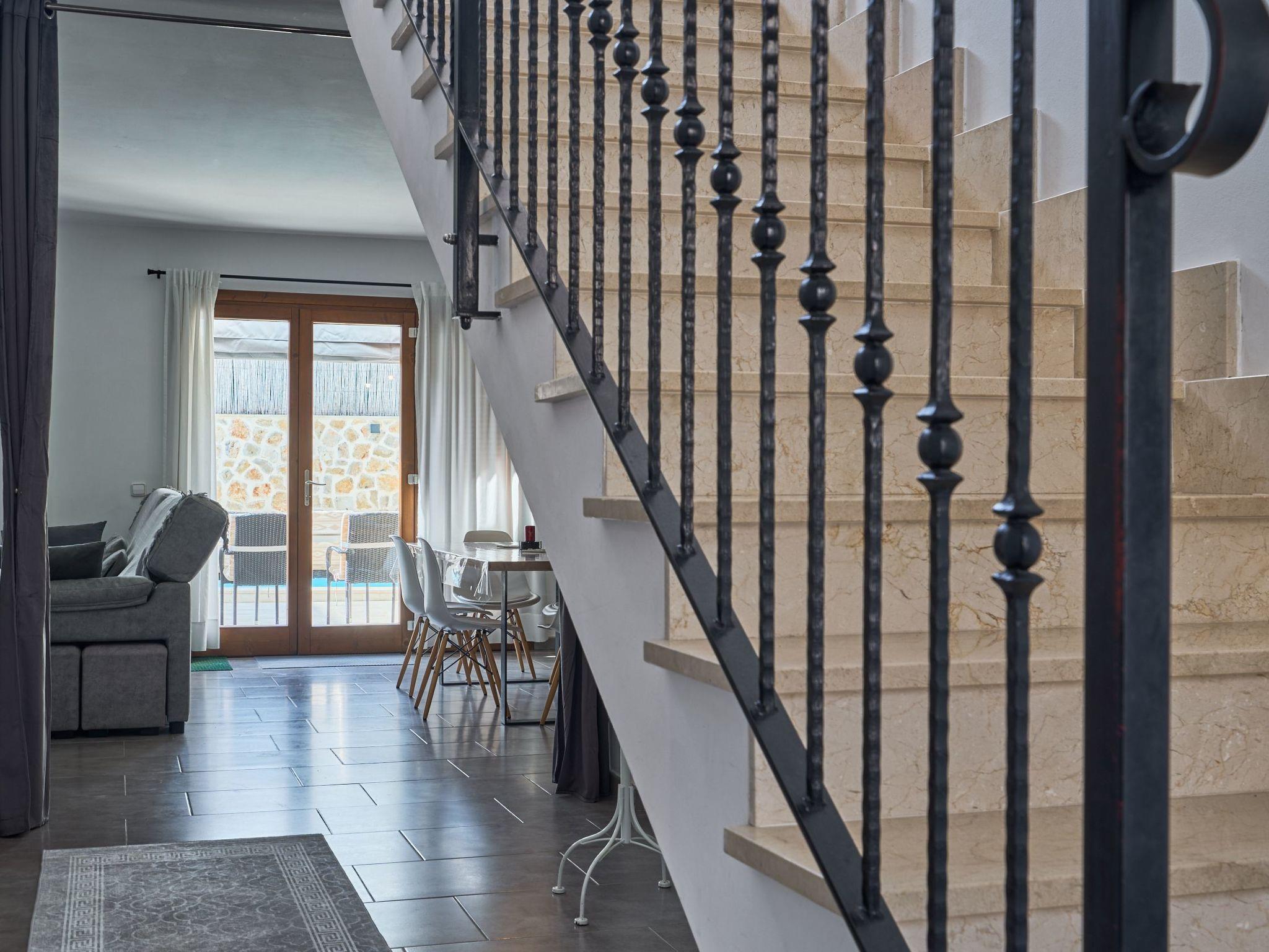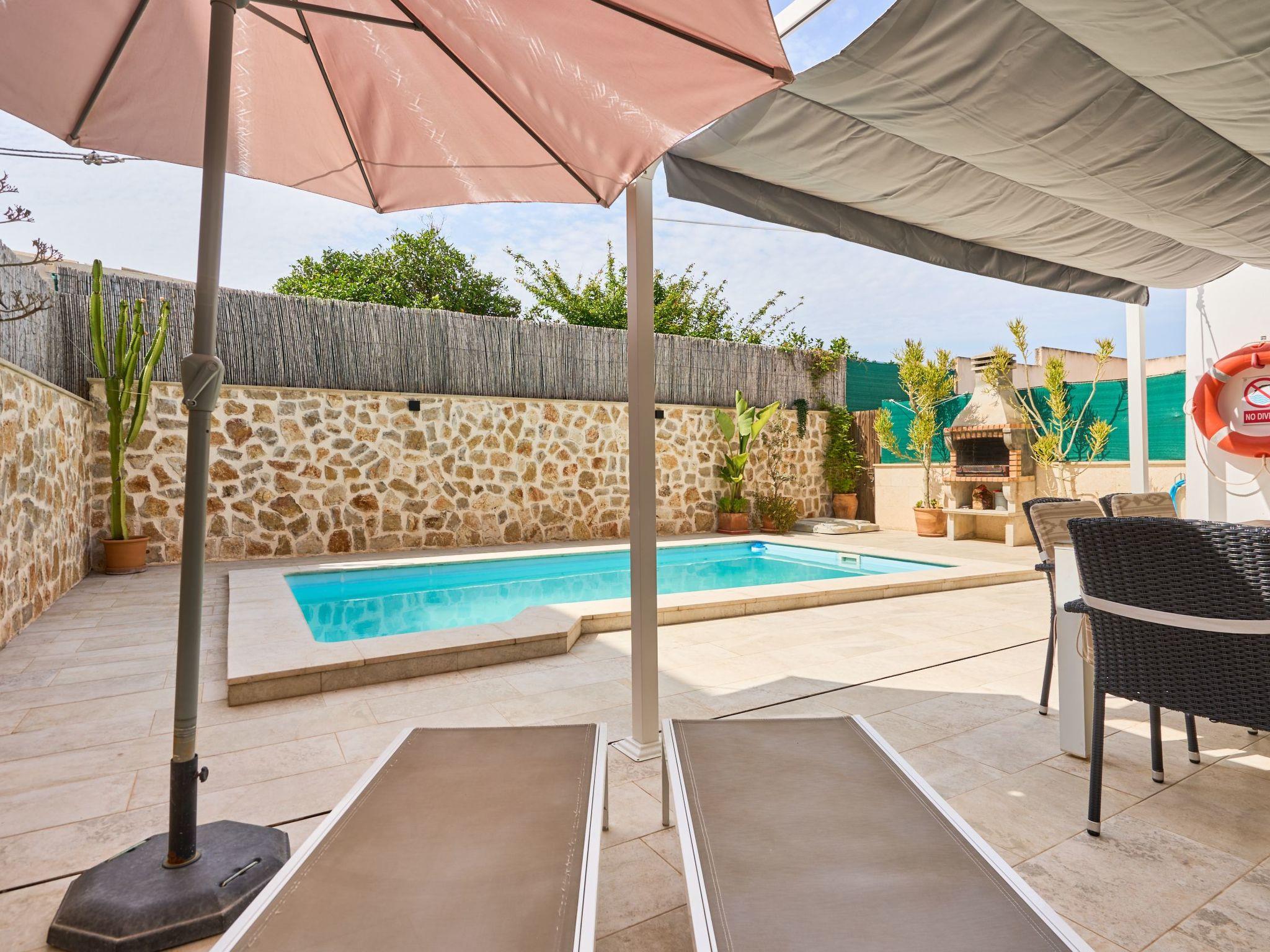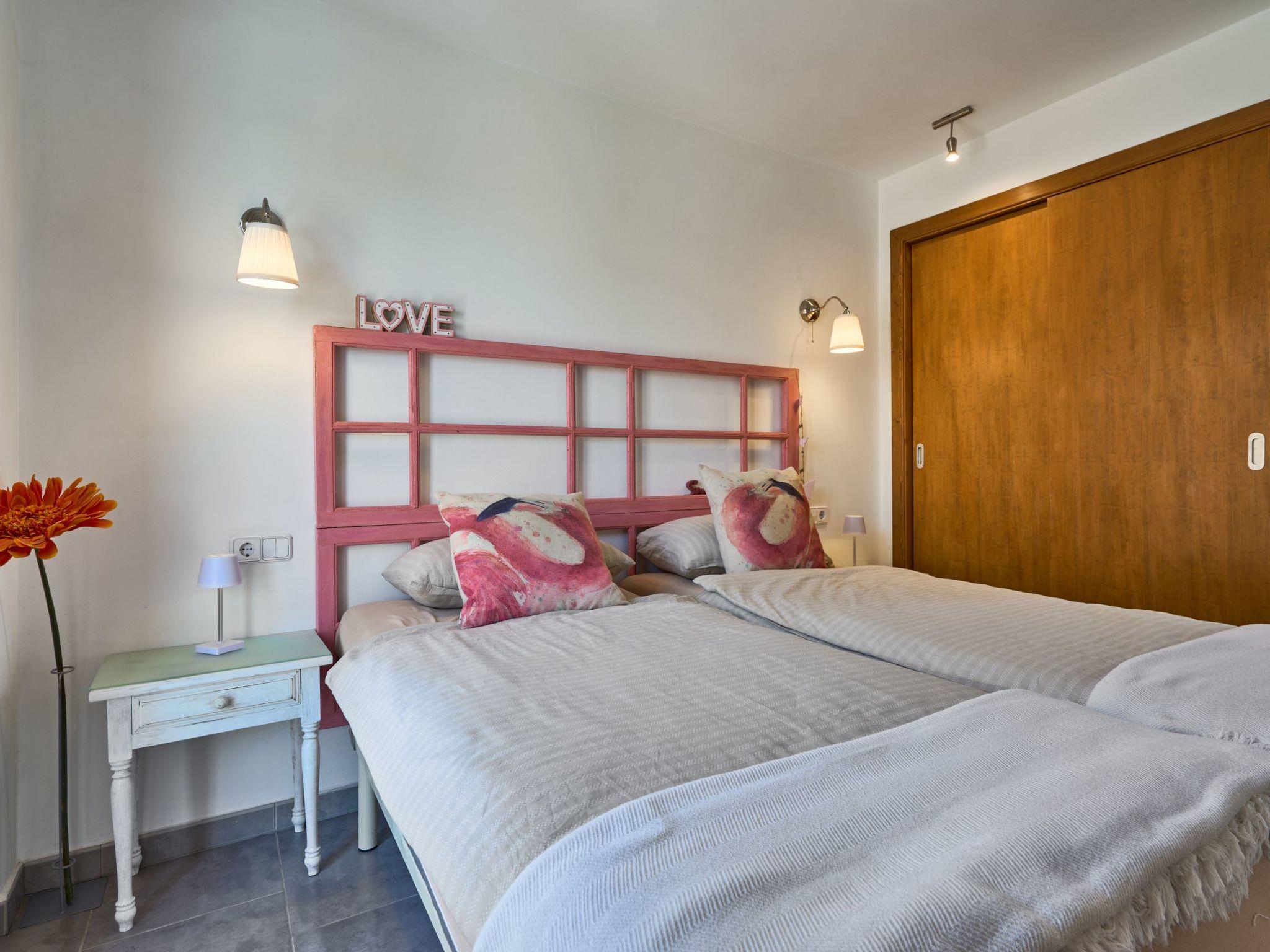 The Peral Cas Concos is a two-storey terraced house with plenty of natural light, located in a row with two other new builds. The entrance area leads to an open-plan living and dining room, equipped with a 65" satellite TV plus sound system. From here there is direct access to the pool area. The adjoining kitchen is well equipped and has a pantry. Direct access to the pool area and to a utility area with washing machine. There is also a bedroom with a separate shower room on the ground floor. A staircase leads to the first floor. From here there is access to a large terrace. The ideal place to read your favourite book or sunbathe in privacy. There are also two further double bedrooms with wall-mounted fire TVs on the upper floor. Both rooms also have their own bathroom with bath and shower.