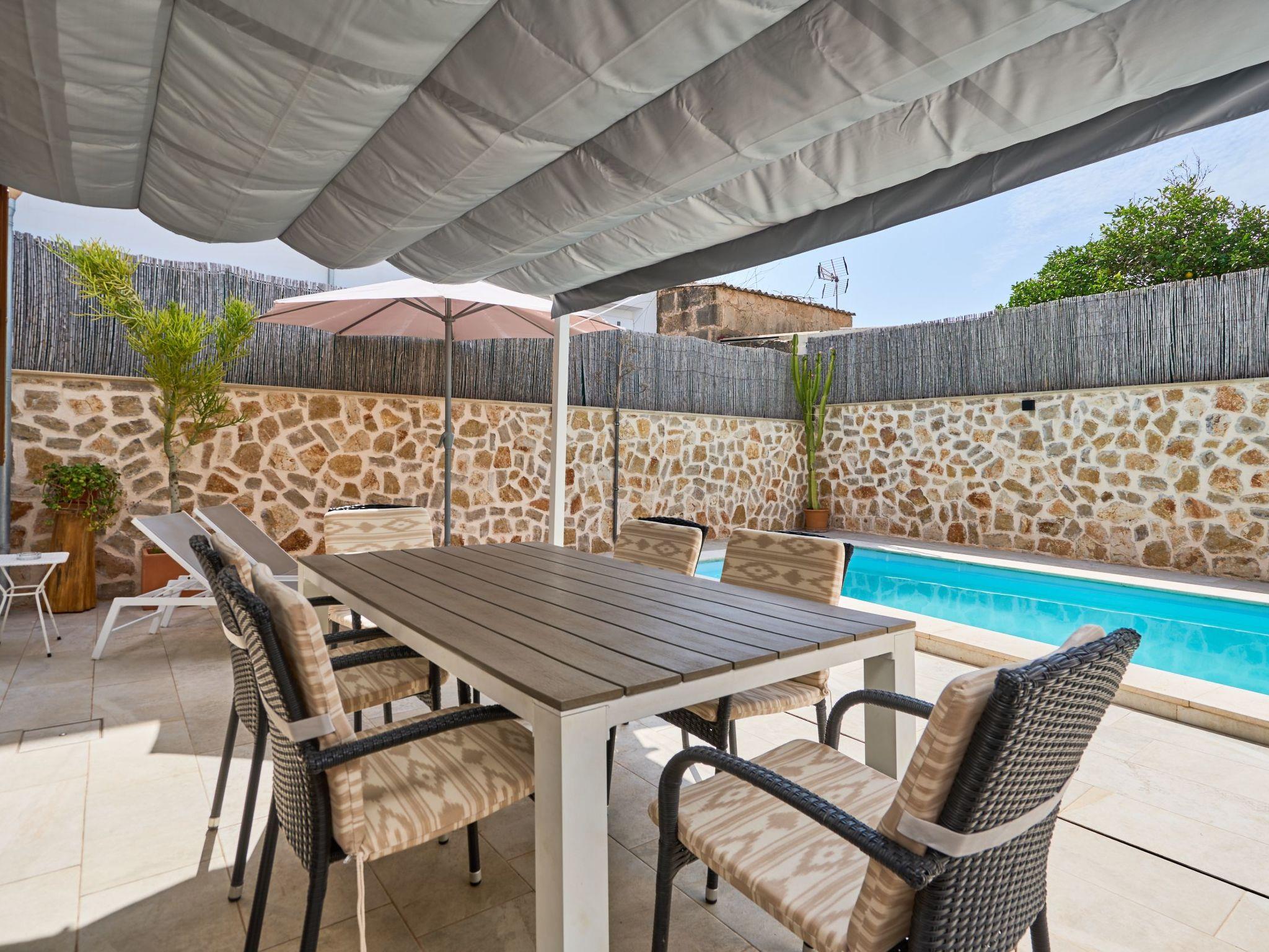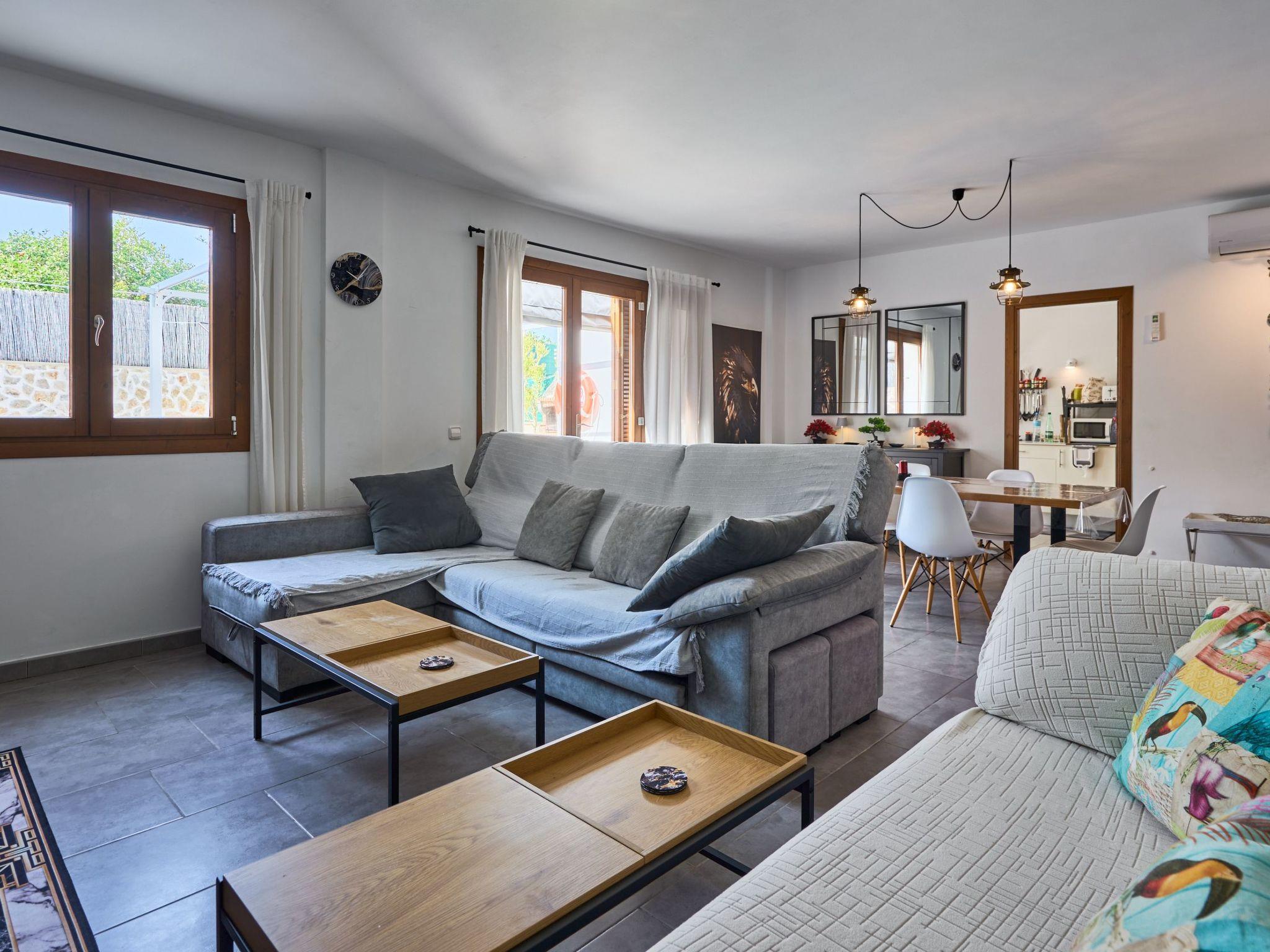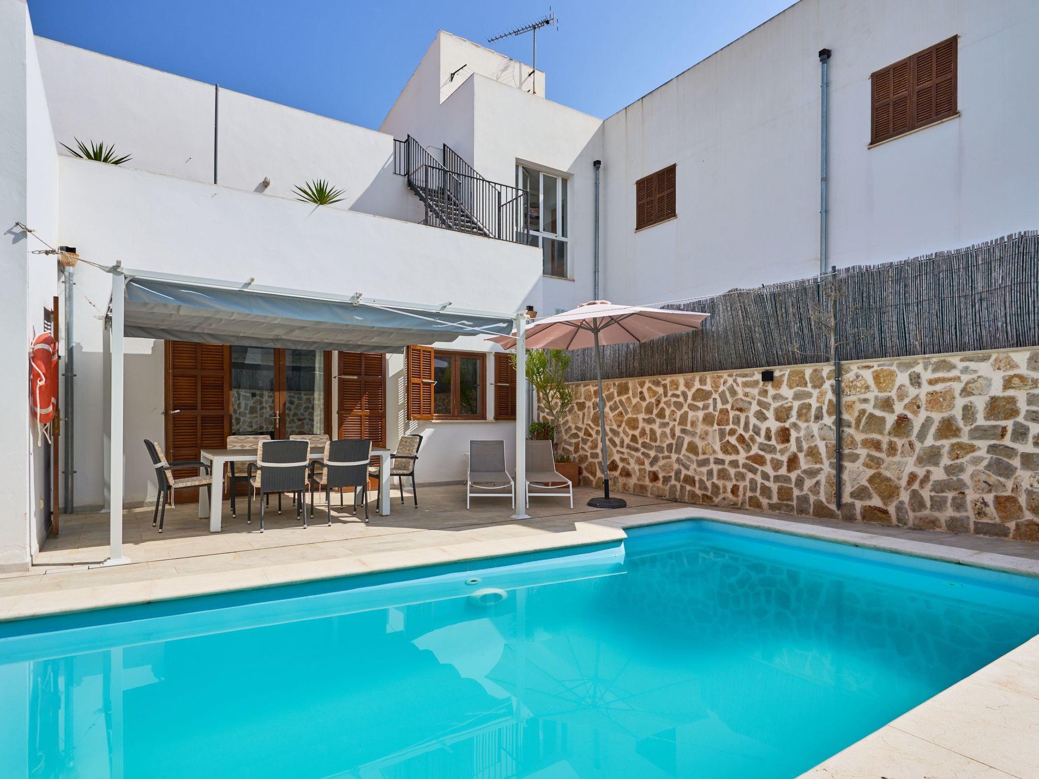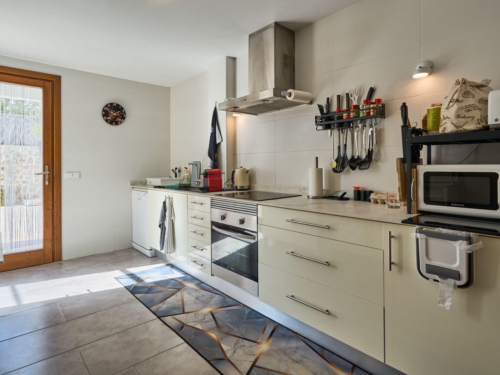 The Peral Cas Concos is a two-storey terraced house with plenty of natural light, located in a row with two other new builds. The entrance area leads to an open-plan living and dining room, equipped with a 65" satellite TV plus sound system. From here there is direct access to the pool area. The adjoining kitchen is well equipped and has a pantry. Direct access to the pool area and to a utility area with washing machine. There is also a bedroom with a separate shower room on the ground floor. A staircase leads to the first floor. From here there is access to a large terrace. The ideal place to read your favourite book or sunbathe in privacy. There are also two further double bedrooms with wall-mounted fire TVs on the upper floor. Both rooms also have their own bathroom with bath and shower.