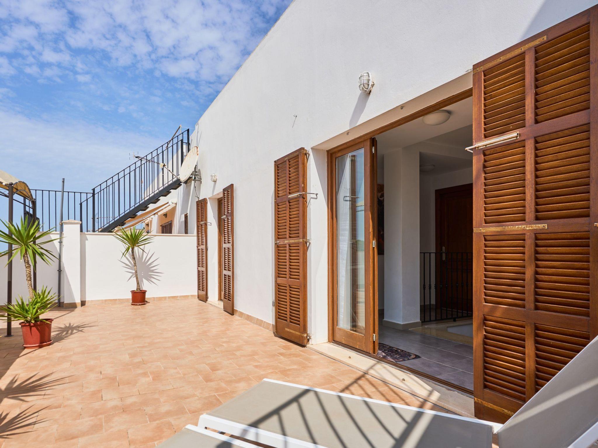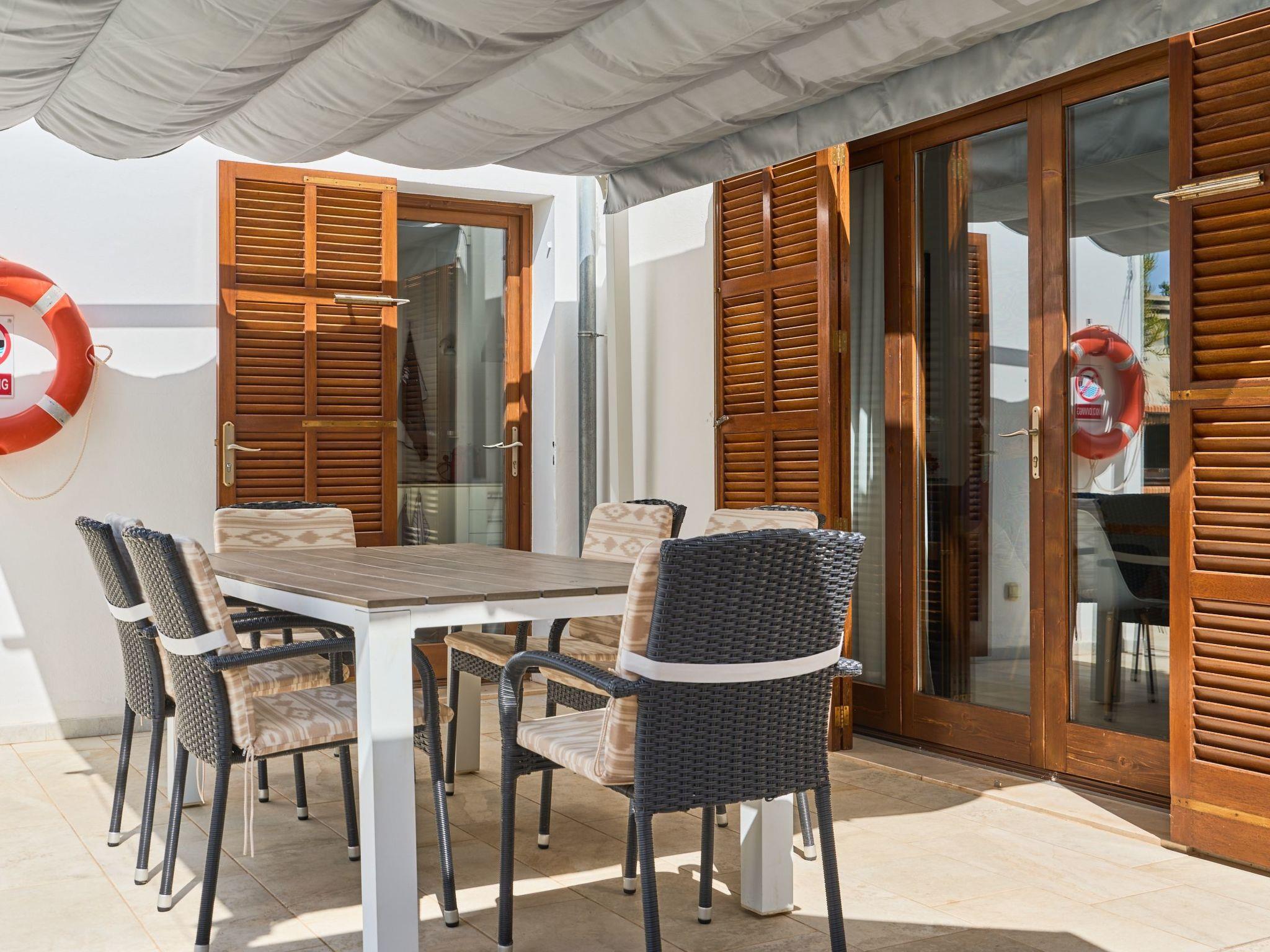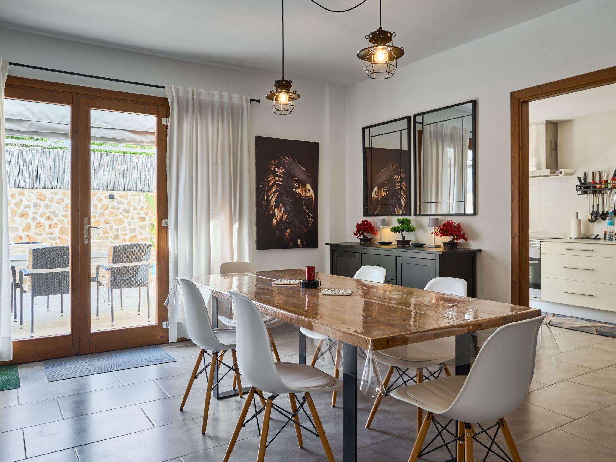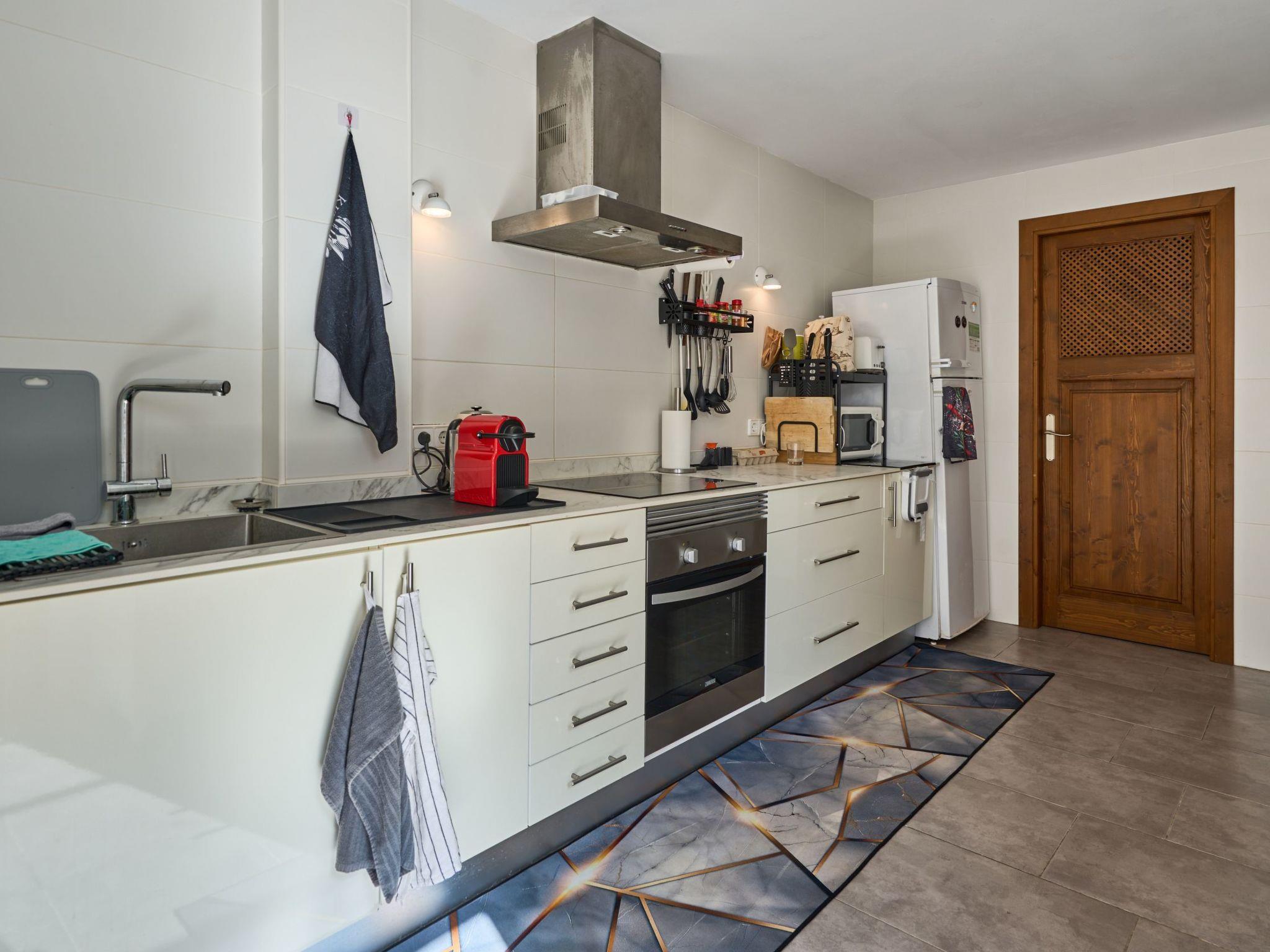 The Peral Cas Concos is a two-storey terraced house with plenty of natural light, located in a row with two other new builds. The entrance area leads to an open-plan living and dining room, equipped with a 65" satellite TV plus sound system. From here there is direct access to the pool area. The adjoining kitchen is well equipped and has a pantry. Direct access to the pool area and to a utility area with washing machine. There is also a bedroom with a separate shower room on the ground floor. A staircase leads to the first floor. From here there is access to a large terrace. The ideal place to read your favourite book or sunbathe in privacy. There are also two further double bedrooms with wall-mounted fire TVs on the upper floor. Both rooms also have their own bathroom with bath and shower.