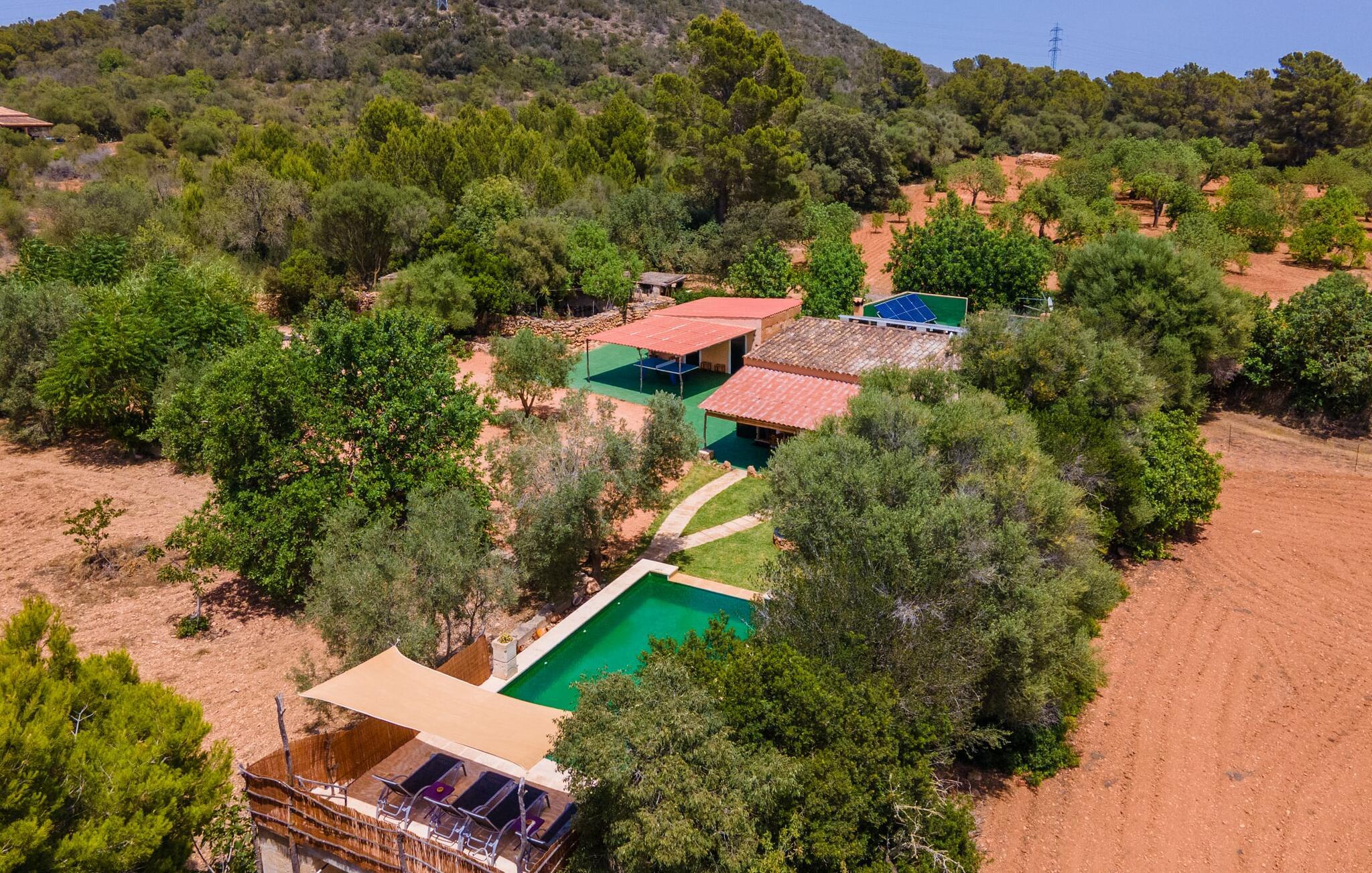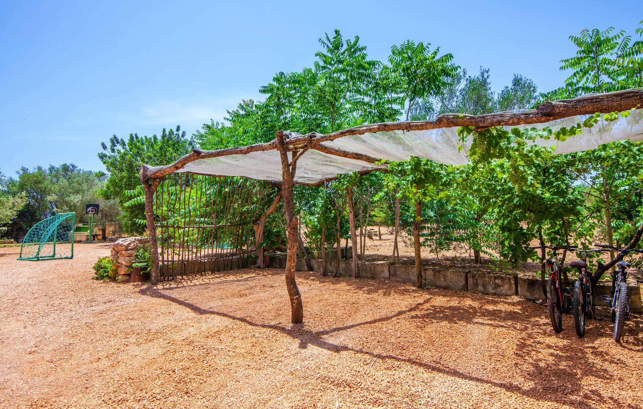 Denne bondegård på Mallorca byder på masser af plads til vidunderlige langtidsophold under den åbne middelhavshimmel. Ved første øjekast virker det ret upåfaldende, men ved nærmere eftersyn byder det på en række muligheder for en fantastisk ferie. Området, der består af mange gamle træer, rustikke natursten, små stier og forskellige nicher, byder på mange muligheder for nydelse i det fri. Det forhøjede bassin, et tidligere vandreservoir, giver afkøling til enhver tid på varme dage. Bordene til jeres yndlingsdrink er allerede klar her! På den overdækkede terrasse ved siden af huset eller i det gårdlignende åbne rum er der borde og stole til rådighed til fælles måltider eller blot en café con leche ind imellem. De forskellige spillemuligheder sikrer spil, sjov og action: bordtennisbord, dart, fodboldmål og basketballkurv. De venlige ejere bor ved siden af og besvarer gerne spørgsmål. Indretningen af dette feriehus på Mallorca er rustikt. Klassiske møbler, runde buer og typiske mallorcanske detaljer som de enkelte stoffer eller fliser skaber den helt autentiske stemning af livet på landet på øen. Fra terrassen kommer man ind i opholds- og spisestuen, som byder på de bedste forudsætninger for afslappende indendørs aftener med sofa, spisebord, tv og pejs. Det fuldt udstyrede køkken er halvåbent. Tre specialbyggede soveværelser – en dobbeltseng og to singler – fuldender 4-personers hyttens plads. Der er også to badeværelser, et med bruser, et med badekar, et af dem en suite. På grund af adgangen via en grusvej, anbefales en terrængående lejebil til denne bondegård. Vi anbefaler dette feriehus til alle, der ønsker at nyde fred og privatliv, mens de er omgivet af autentisk charme. Fincaen "Cas Conill", en rustik bondegård til fire personer, ligger i et absolut roligt område omkring 7 km sydøst for Llucmajor. Smukke strande som Playa de San Antoni eller Es Trenc i syd kan nås på 25 til 30 minutter i bil. Ø-metropolen Palma de Mallorca ligger ca. 32 km væk og har meget at byde på for kultur- og shoppingfans. Måske har I også lyst til at tage vandrestøvlerne på og udforske stuehusets smukke omgivelser til fods?