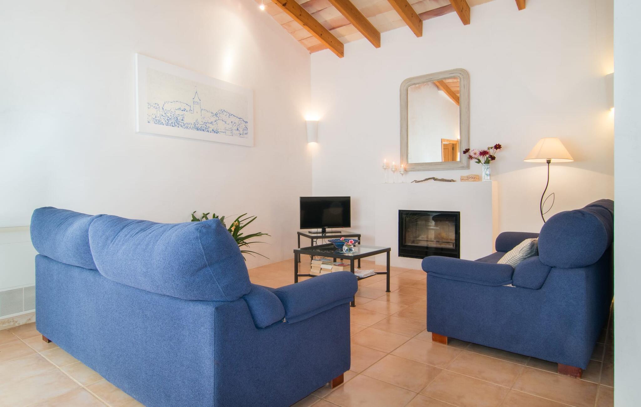 Den attraktive etplansvilla "Cas Forner" smelter harmonisk ind i det omgivende landskab og ligger for foden af en imponerende skråning og kun få minutters gang fra Colonia des Sant Pere. Det smagfulde udendørsområde er primært præget af vinstokke, oliven- og mandeltræer samt et rummeligt terrasseområde, der byder på en række muligheder for et attraktivt udendørs ophold. Den 8 x 4 m store pool strækker sig til horisonten og er omgivet af en smuk loungeterrasse. Poolen er meget let tilgængelig via trapper. Seks komfortable liggestole inviterer dig til at slappe af under den mallorcanske sol. Her kan du nyde absolut fred. Bliver UV-strålingen for kraftig, er du velkommen til at bruge de to tilgængelige parasoller. Et andet lille højdepunkt er det lille, overdækkede grillhus, som inviterer til kulinariske grillceremonier på lune aftener. Under en grill som denne kan man som ved alle andre måltider sidde på den overdækkede del af terrassen lige ved siden af huset og nyde den vidunderlige udsigt i godt selskab. Dette er et Fincallorca feriehus. Man træder ind i huset fra terrassen og ender straks i den rummelige spiseplads, udstyret med et solidt bord til seks personer, som igen giver direkte adgang til køkkenet. På den anden side er den lyst designede stue med et behageligt sofaområde og pejs. Her er også fladskærms-tv med satellitforbindelse installeret. Rumdesignets åbne stil, som også kan ses på øverste etage, formidler et særligt og meget behageligt indtryk af rum og generøsitet. De lette vægge og gulve samt det æstetiske synlige bjælkeloft forstærker denne atmosfære. Det typiske mallorcanske køkken, delvist i mursten, er udstyret med alt hvad du har brug for hver dag, inklusive en kedel og filterkaffemaskine. Tre moderne og lyst møblerede soveværelser repræsenterer klarhed og ro i deres design. Uden en masse distraherende tilbehør kan du finde den fred og ro, du har ledt efter. Gæsterne har adgang til en seng, der måler 1,80 x 2,00 m og fire senge, der måler 0,90 x 2,00 m. Et af soveværelserne er udstyret med åbent en-suite badeværelse, som igen er udstyret med håndvask, toilet, bidet, bruser og badekar. De to andre soveværelser deler endnu et badeværelse med to håndvaske, toilet, bidet og bruser. Et strygejern og en hårtørrer er til rådighed i huset, så du ikke behøver at medbringe dit eget. Colonia de Sant Pere er et ret roligt sted i kommunen Artà, skånet for masseturisme. Det ligger på den østlige udkant af Alcúdia-bugten. Ved fiskerihavnen finder du en smuk promenade med flere gode restauranter og cafeer. Kysten her er stenet og flad. Den lokale strand ved siden af havnen er kunstigt genopfyldt og godt beskyttet af bølgebrydere. Omkring Colonia de Sant Pere og nabobyen Betlem finder du andre stille sandede og klippefyldte bugter med klart, turkisblåt vand. De maleriske omgivelser i Colonia byder på adskillige aktivitetsmuligheder for både mountainbikere og vandrefans. Kun en kilometer fra havet og beliggende i bakken finder du villaen med havudsigt "Cas Forner". Fra hele komplekset har du en vidunderlig udsigt over Alcúdia-bugten. I Colonia de Sant Pere finder du gode indkøbsmuligheder, en promenade med indbydende restauranter og en lille yacht og fiskerihavn. Den beskyttede sandstrand er ideel for familier med børn.