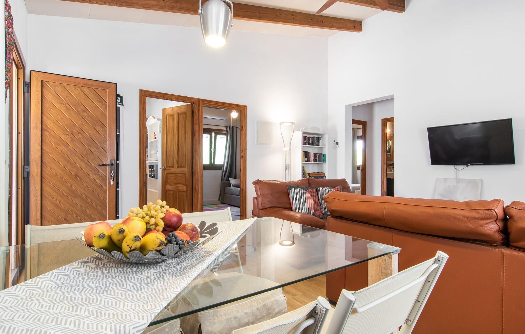 Når I træder ind i den herskabelige ejendom, vil I helt sikkert blive overvældet af en fantastisk følelse, en blanding af hjemkomst og starten på jeres ferie - dette middelhavshavehjørne vil ikke efterlade jer i mørket om, hvor nostalgien kommer fra! Tag et kig rundt, forkæl jer selv med en pause ved den runde pool på en af liggestolene og lad solen skinne på jeres hud. Hvis det er for kedeligt for jer, kan I holde en vild bordtenniskamp med jeres børn, for det nødvendige udstyr er til rådighed i en villa. Der er også et opholdsområde med havebord og parasol - den overdækkede terrasse med den praktiske kulgrill venter bare på, at I kan bruge den til ordentlige BBQs eller måske til en velsmagende tapas-aften. Det ugentlige marked i Llucmajor og selvfølgelig jeres egen frugthave vil helt sikkert tilbyde jer alle de kulinariske delikatesser, I har brug for - også fine spanske vine, hvis I ønsker det. For passionerede vandrere byder det omkringliggende landskab på både interessante vandrestier og hyggelige steder til korte pauser. Villaens indretning er luftig og lys - de relativt store vinduespartier gør, at man straks føler sig hjemme. Alle gæster har adgang til en hyggelig stue med sofahjørne, en pragtfuld flisebelagt pejs og et fremragende udstyret underholdningssystem. Lige bagved står spisebordet med masser af siddepladser. Køkkenet er også perfekt skræddersyet til de besøgendes ønsker - selvom det ikke er specielt stort, er det så meget desto mere praktisk og udstyret med alle de nødvendige hårde hvidevarer. De to dobbeltværelser tilbyder vidunderlige komfortable senge og masser af opbevaringsplads til jeres personlige ejendele og tøj, der for nylig er købt i Llucmajor. Begge badeværelser er to helt særlige højdepunkter – i ordets sandeste betydning. De har et moderne design og er udstyret med naturhvide fliser, der er plads nok og et af badeværelserne med en smuk bruseniche er endda en suite. Umiddelbart er "Cas Nets" måske ikke specielt fantastisk, men den hyggelige indretning og den smukke have gør det bestemt et besøg værd! Det omkringliggende område har meget at byde på: Llucmajor, for eksempel, en malerisk by, der imponerer med sin smukke centrale markedsplads og sine smukke små caféer, barer, restauranter og butikker. I kan komme dertil på kun 10 minutter i bil via Ma-19, som er inden for hørevidde afhængigt af vindstyrken. Mange af byens huse er fra 1920'erne og 30'erne - en tur gennem de smalle gader er bestemt det værd! Rådhuset på pladsen er endnu ældre: det blev bygget i 1882. Dette omfatter også den skjulte by S'Arenal på Playa de Palma, de nye byer Cala Blava, Badía Grand, Las Palmeras og Sa Torre i kommunen Llucmajor. Strande, vandre- og vandremuligheder og det berømte Palma Aquarium er også i nærheden. "Cas Nets" ligger kun få minutters kørsel fra Llucmajor, et af de største og mest historiske distrikter på hele øen. Køreturen til Palma og også til lufthavnen tager maksimalt 20 minutter, og den nærmeste strand i S'Arenal er heller ikke langt væk. Der er meget at opdage her: Uanset om I foretrækker at tage vandrestøvlerne på og udforske den nærliggende Puig de Randa eller besøge byens ugentlige marked - der er noget for enhver smag!