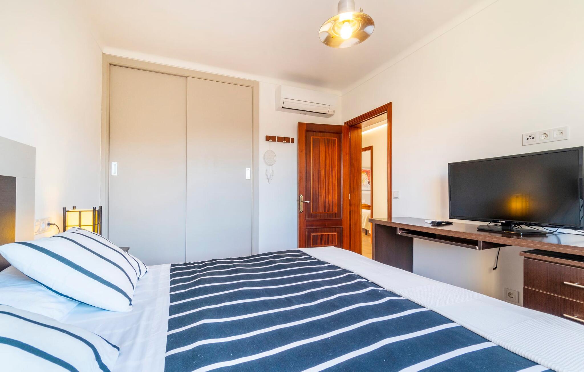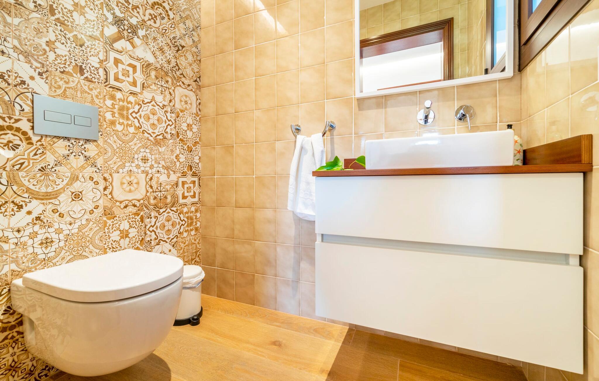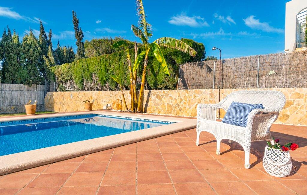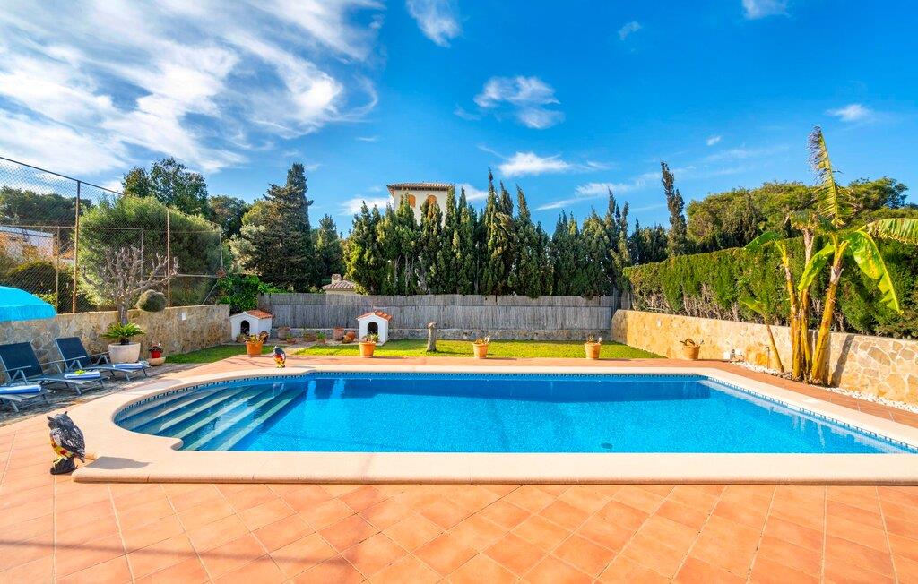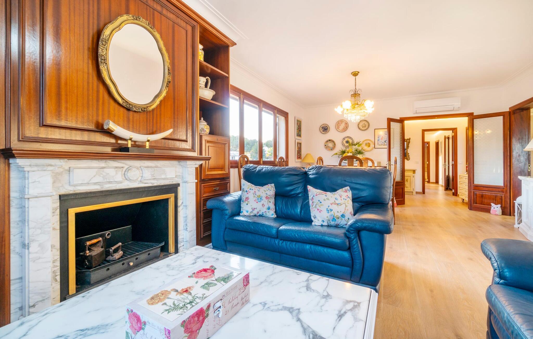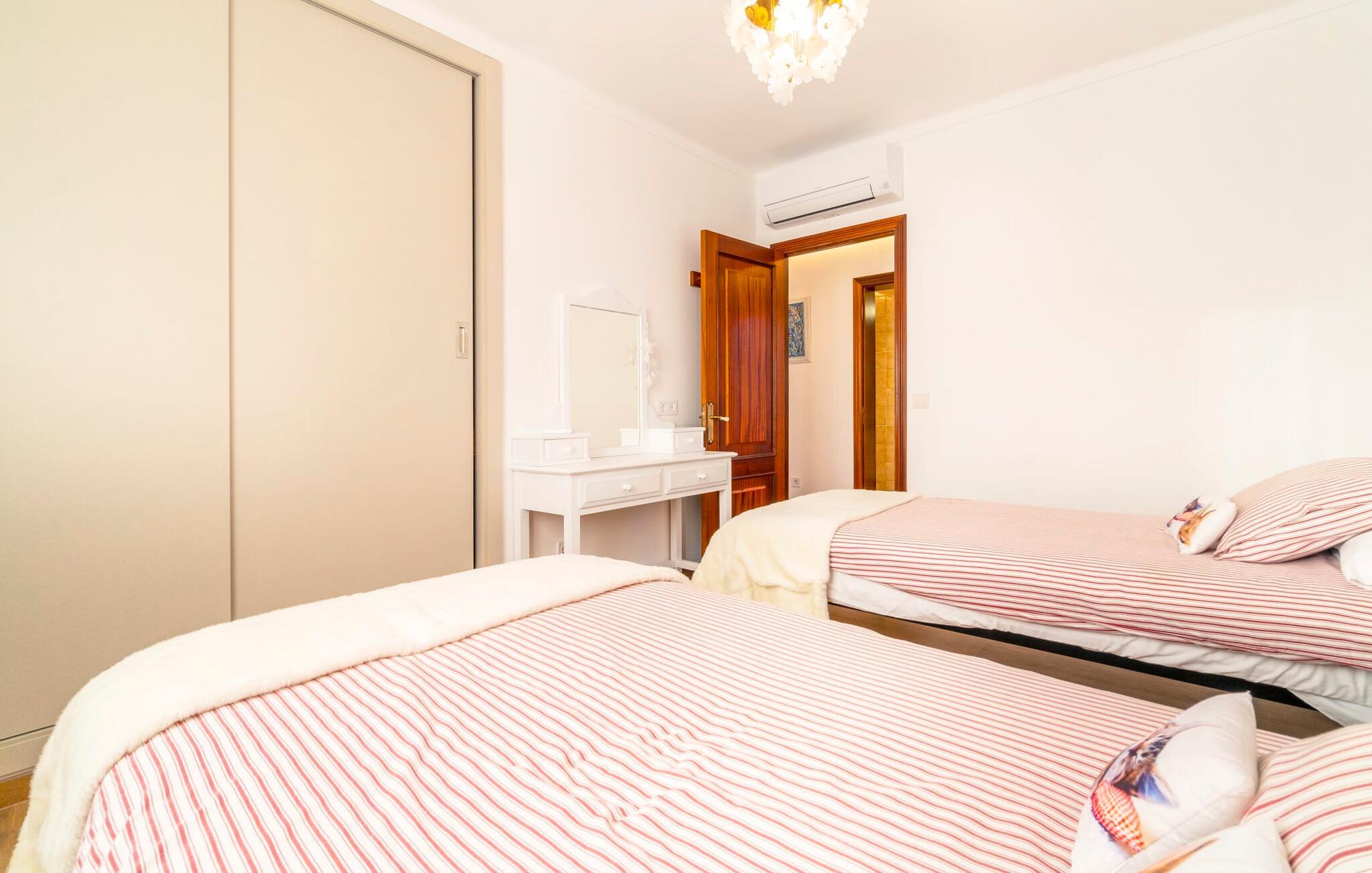 Kystvillaen "Cas Nin des Port" ligger på en udsat beliggenhed i havnebyen Porto Cristo og nær de berømte dragehuler på et næs ved fyrtårnet. Den maritime charme præger ikke kun naturhavnen, men har også en varig indflydelse på karakteren af det lyse hvide sommerhus. På trods af beliggenheden i en urbanisering, kan I nyde privatlivets fred i en solid Mallorca-villa, der er adskilt fra naboerne og beskyttet mod udsigt. Mosaikpoolen med komfortable trapper er havens centrum og fungerer som et behageligt sted at køle af. De komfortable liggestole kan placeres på den tilstødende græsplæne eller på solterrassen. I kan slappe skønt af på den skyggefulde terrasse under stuen. Overordnet set er der talrige siddemuligheder, som naturligvis også egner sig til en afslappet grillaften. Udfordr jeres medrejsende til et spil bordtennis – selv i skyggen og beskyttet mod vejret. Til siden af haveniveauet fører en trappe til en tagterrasse med spiseplads. Fra tagterrasserne er der direkte adgang til det indvendige område, som udelukkende ligger på øverste etage. Det moderne og fuldt udstyrede køkken med al mulig teknisk komfort er direkte forbundet med den udendørs spiseplads. På den anden halvdel af terrassen er der en hyggelig lounge med havudsigt, som er forbundet med stuen via en dobbeltdør. Det fine og lyse feriehus imponerer med en smuk blanding af mallorcansk tradition, som sikrer komfort og er behageligt kombineret med moderne elegance. Boligarealet er smart opdelt, så en til to familier eller seks personer kan slappe perfekt sammen. Ud over tre soveværelser med aircondition, er der et trendy indendørs badeværelse med bruseniche, et separat gæstetoilet og et udendørs badeværelse. Oplev ren feriefølelse i det private, familievenlige og veludstyrede rækkehus "Cas Nin des Port" og nyd jeres tid sammen med afslapning på Mallorca - hele året rundt og til en absolut overkommelig pris, især i den attraktive lavsæson. Den elegante villa "Cas Nin des Port" emmer af maritim charme som rækkehus med pool, grøn gårdhave og tagterrasse. Nyd havudsigten på kanten af en velholdt urbanisering. Dette er beliggende i det sydlige område af kystbyen Porto Cristo. I kan nå havet eller den smukke by med dens naturlige havn til fods. Nærheden til promenaden med talrige barer og pubber er det, der gør dette klassiske feriehus så attraktivt. Ud over den nærmeste bystrand i Porto Cristo, venter andre fantastiske bugter på jer efter en kort køretur.