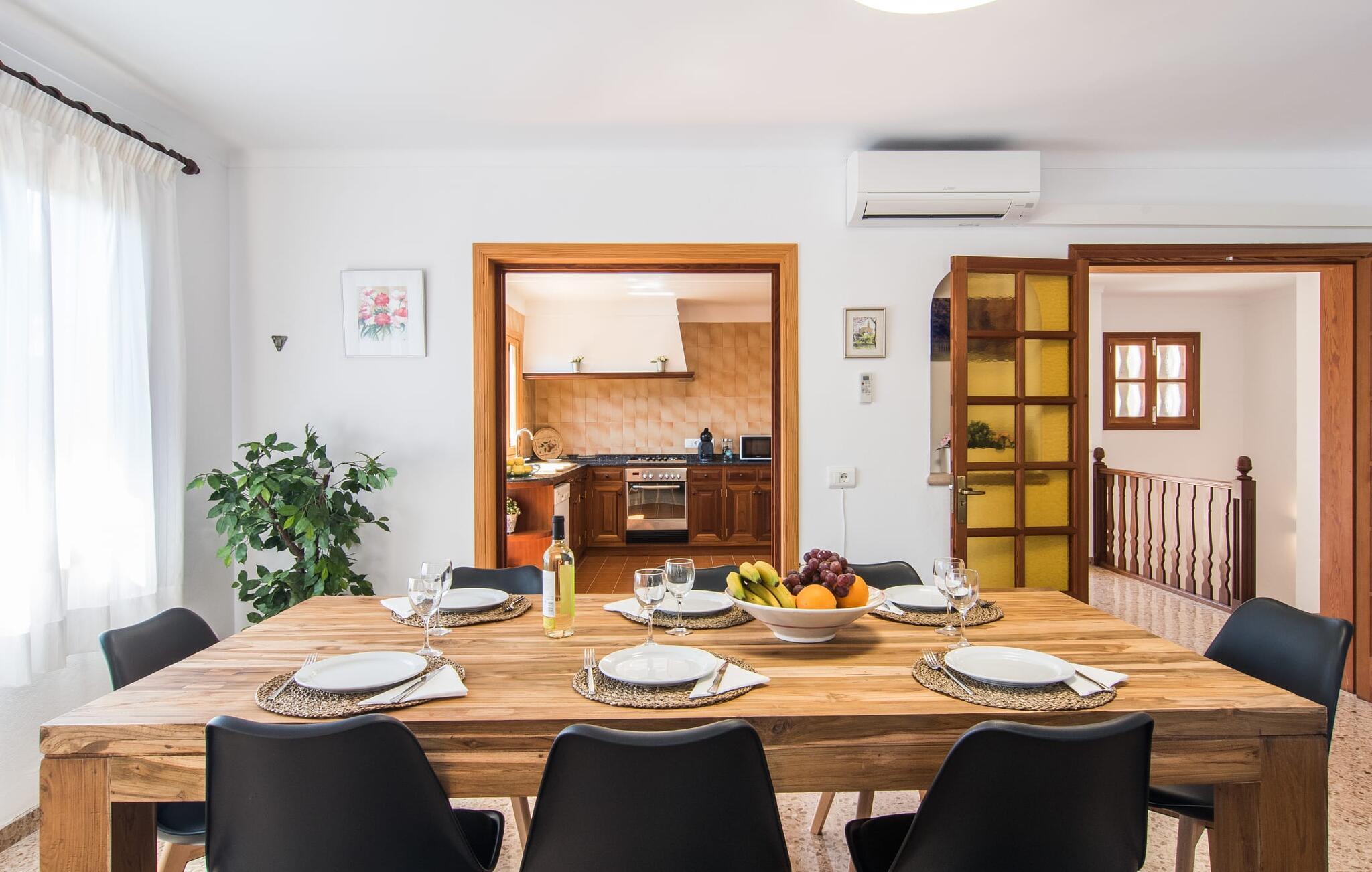 Et charmerende hus, nænsomt renoveret og med alle de bekvemmeligheder I kan ønske jer på ferien, kombineret med en ufattelig smuk beliggenhed - villaen "Cas Padrins de Cala Figuera" er placeret over den smukke lille bugt Cala Figuera og dens talrige, delvist overdækkede bugter og terrasseområder giver jer enestående udsigt over det turkise vand, der glitrer i solen, og bådene, der blidt vugger på bølgerne. For eksempel kan I spise jeres morgenmad udendørs med udsigt over havet! Men det bliver endnu bedre: Bakkehuset har rummelige havearealer med masser af plads til leg for børn og en privat sti ned til havet. Derfor kan I slappe af og tage en forfriskende svømmetur væk fra øens offentlige strande. Og på vej tilbage via en muret trappe kan I bruge den udendørs bruser til at skylle saltvandet af med det samme. Har I lyst til en kort siesta efter det forfriskende Middelhav? Gå derefter til den store tagterrasse med komfortable liggestole. Her kan I lade solen varme jer og simpelthen flygte fra hverdagen. Interiøret i "Cas Padrins de Cala Figuera" er vidunderligt lyst og åbent; Alle værelser er bekvemt placeret på én etage. Hele huset er indrettet i frisk hvidt, og indretningen er en lige så vellykket og unik kombination af rustik mallorcansk og moderne chic. Indgangen leder ind i den åbne stue og spisestue - her er der ikke kun to indbydende og komfortable sofaer, hvor I kan tilbringe en aften eller to med at se tv, men også det store spisebord parret med smagfulde og elegante stole. Dette skaber en visuel overgang til det åbne køkken, som er smukt vedligeholdt og udstyret med udstyr af høj kvalitet: Det byder på alt, der ville gøre en spirende kok glad. Føler I jer lidt træt efter en lang, solrig dag på Mallorca, kan I blot tage til et af de tre stilfulde og diskret indrettede dobbeltværelser, som hver har et stort indbygget klædeskab til jeres mangfoldige feriegarderobe. De to velholdte og meget rene badeværelser ligger på samme gang mellem soveværelserne. Hver har sit eget badekar. jeres sommerhus ligger ikke kun ved den smukke bugt Cala Figuera med sit turkisblå vand, som kan nås direkte fra huset via en privat sti. Det er også indlejret i et typisk middelhavslandskab, som er perfekt til lange, afslappende gåture. I finder adskillige butikker, restauranter af høj kvalitet og smukke caféer i både den lille fiskerby Cala Figuera, som nemt kan nås med jeres lejebil kun 4,1 km væk via en tydeligt hørbar vej (afhængig af vindretningen), og Cala Santanyí 4,5 km væk. Denne klassiske strand- og badeby har en familievenlig sandstrand i en beskyttet bugt, ideel til svømning og snorkling. En charmerende villa på en bjergskråning med udsigt over en malerisk bugt og privat adgang til det glitrende turkise vand - "Cas Padrins de Cala Figuera" er en drømmeferie, der går i opfyldelse! Dette nænsomt renoverede hus har en uforlignelig beliggenhed direkte ved havet i den sydlige del af Mallorca, omgivet af et smukt middelhavslandskab. I skal køre mindre end 5 km med jeres lejebil til både butikkerne og den smukke sandstrand Cala Santanyí.