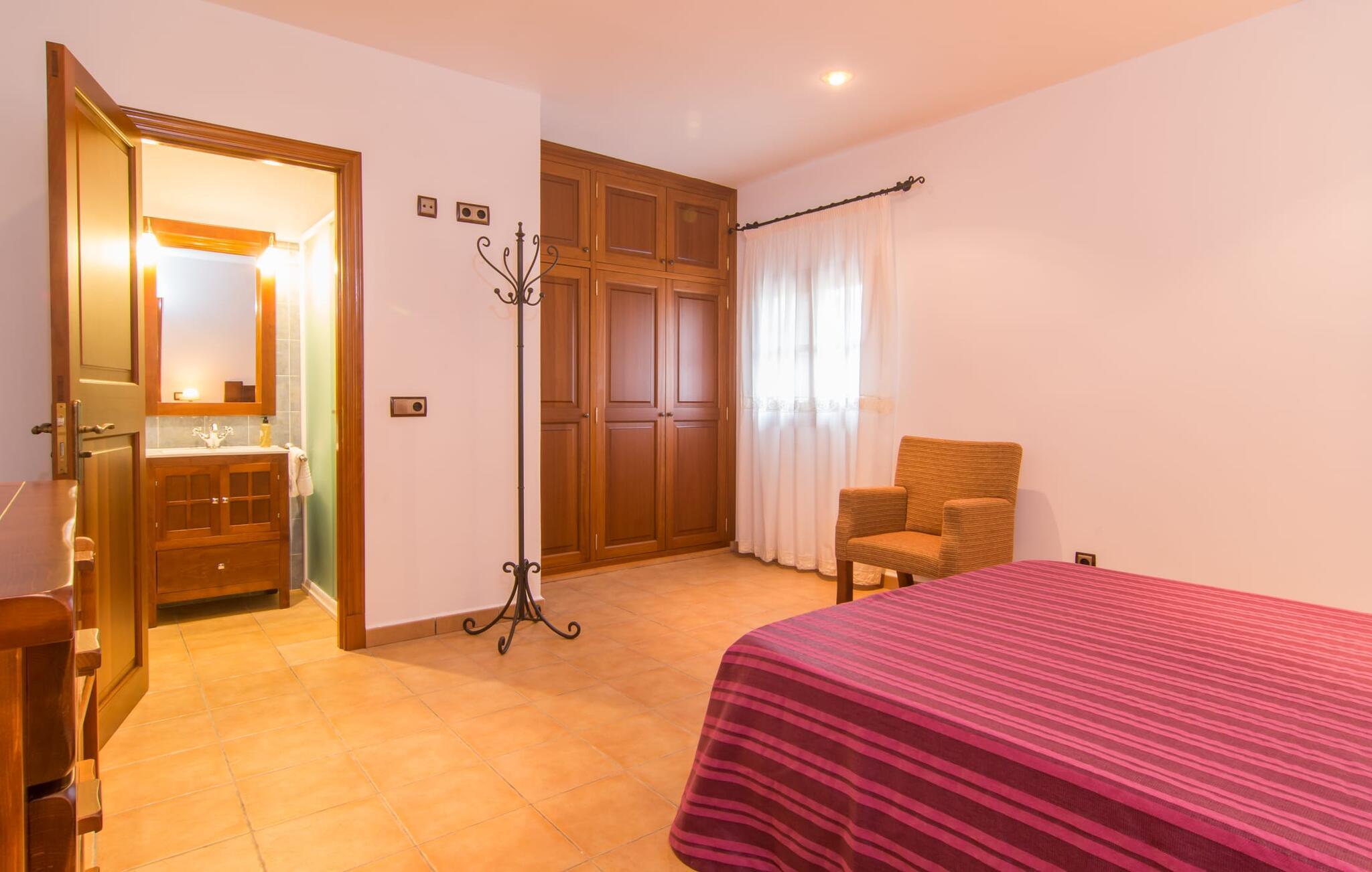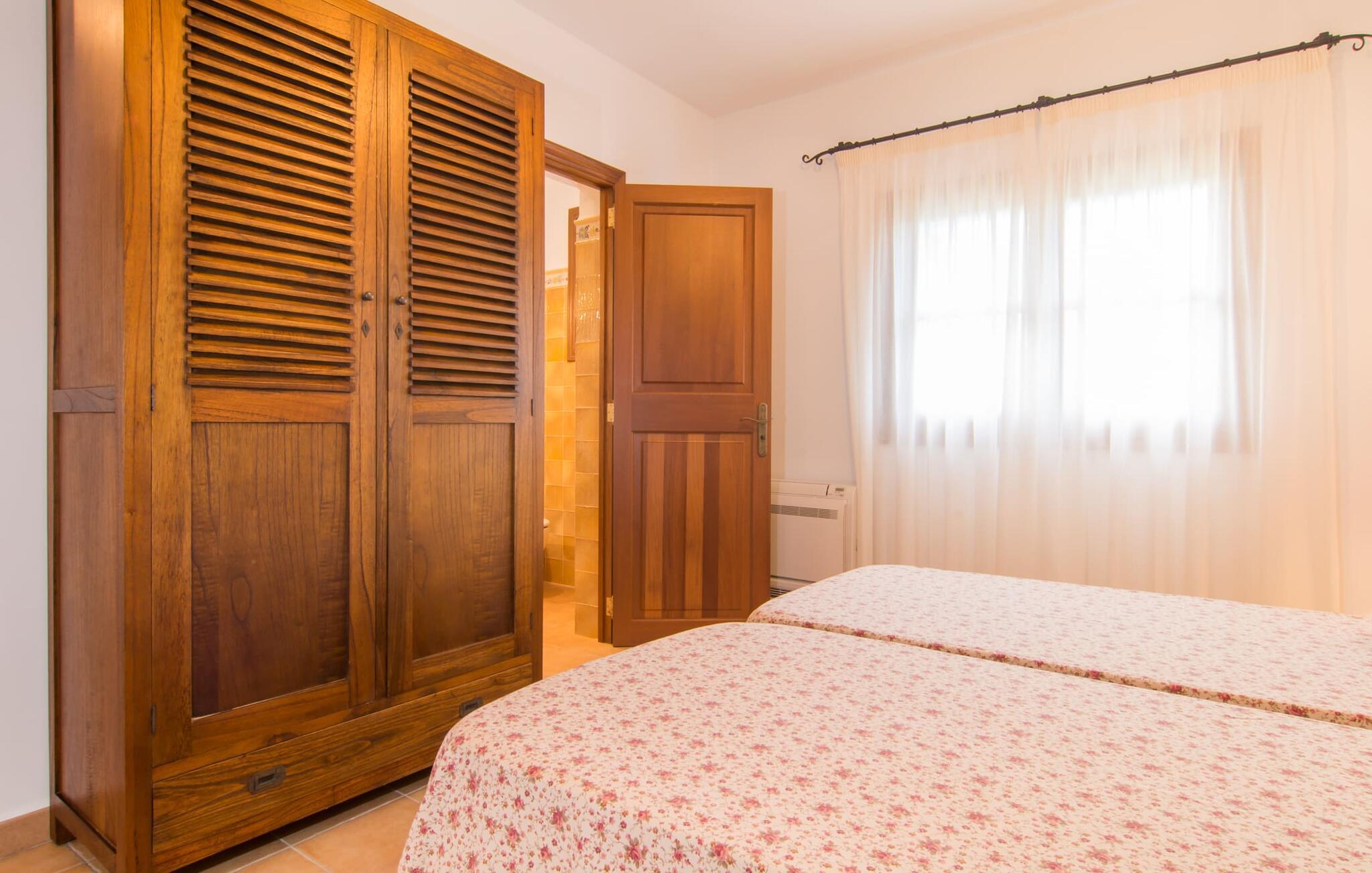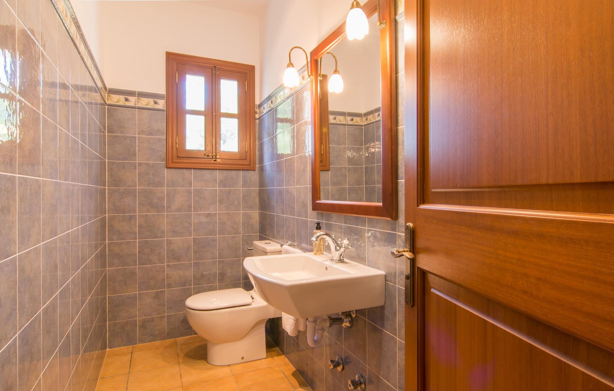 Villaen “Cas Verros” med dens imponerende indkørsel, der fører fra indgangsporten til villaen, står arkitektonisk ganske frækt i kontrast til de andre, mere traditionelt opførte mallorcanske villaer og henter i stedet inspiration fra naboøen Ibiza. Det er en kubistisk affære, med hvidkalkede massive stenvinduer og dørkarme, der fremhæver den ibizanske indflydelse. Derudover har ejendommen en meget smuk naturstensfacade, der rejser sig imponerende og giver villaen sit særligt maleriske udseende. Et stort terrasselandskab strækker sig over hele husets forside. Det smelter næsten problemfrit sammen i en solterrasse, som igen omgiver den 32 m² store pool. Terrasselandskabet afrundes af en forhøjet tagterrasse med en vidunderlig udsigt over poolen og den omkringliggende have og endda til havet. De udvendige finish er førsteklasses. Se venligst de udvendige billeder og liggestolene. Flere høje palmer runder harmonisk helhedsindtrykket af, og endnu en ærværdig træbestand giver behagelig naturlig skygge ved poolen. Der er et separat lille grillhus udenfor, som ligger i umiddelbar nærhed af poolen. Grillentusiaster vil få noget for pengene med denne installationsmulighed. Gå ind i villaen gennem en stor indgangsdør i massivt træ og ind i husets foyer. Vi fortsætter ind i opholdsstuen med spiseplads og køkken - naturligvis fuldt udstyret med vaskemaskine, opvaskemaskine, køleskab, tørretumbler og meget mere - og til de forskellige soveværelser, der alle er udstyret med aircondition. Villaen har fire soveværelser og byder på plads nok til op til otte gæster. Hvis I rejser med en baby, er en barneseng og en høj stol til rådighed. Huset byder også på fire badeværelser, hvoraf tre er en-suite. Derfor er privatlivets fred garanteret uden begrænsninger, selv når enheden er på fuld kapacitet. Villaen er smagfuldt indrettet overalt og opfylder jeres høje forventninger til luksus under en villaferie på Mallorca. Der er også aircondition, varme, satellit-tv og WiFi. Villaens indre er lige så høj kvalitet og udstyret med alle de nødvendige faciliteter som udearealet. Placeringen af villaen er perfekt for alle, der ønsker at tilbringe en helt afslappende ferie væk fra byens stress og jag. Beliggende i en rolig beliggenhed midt i et smukt landskab, er dette feriehus ideel til lange gåture eller udflugter i naturen. Entusiastiske vandrere får også noget for pengene. Og hvis I foretrækker noget lidt mere urbant, kan I nå det lille feriested Felanitx i bil på ingen tid. Uanset om det er restauranter, caféer og små butikker eller det traditionelle mallorcanske ugentlige marked - et besøg er det værd. Flere strande og en smuk havnepromenade kan hurtigt og nemt nås. Placeringen af denne ejendom er næsten uovertruffen i vores store portefølje. Villa "Cas Verros" modtager vores højeste anbefaling. Den smukke og meget moderne naturstensvilla "Cas Verros" ligger tæt på stranden og byder på udsigt over havet. Villaen er beliggende på den sydlige del af øen, ved porten til fiskerbyen Portocolom. Der er kun få minutters kørsel til den maleriske havnepromenade med barer, restauranter og supermarkeder. De lokale fine sandbugter (Calas de Mallorca) kan også nås hurtigt.