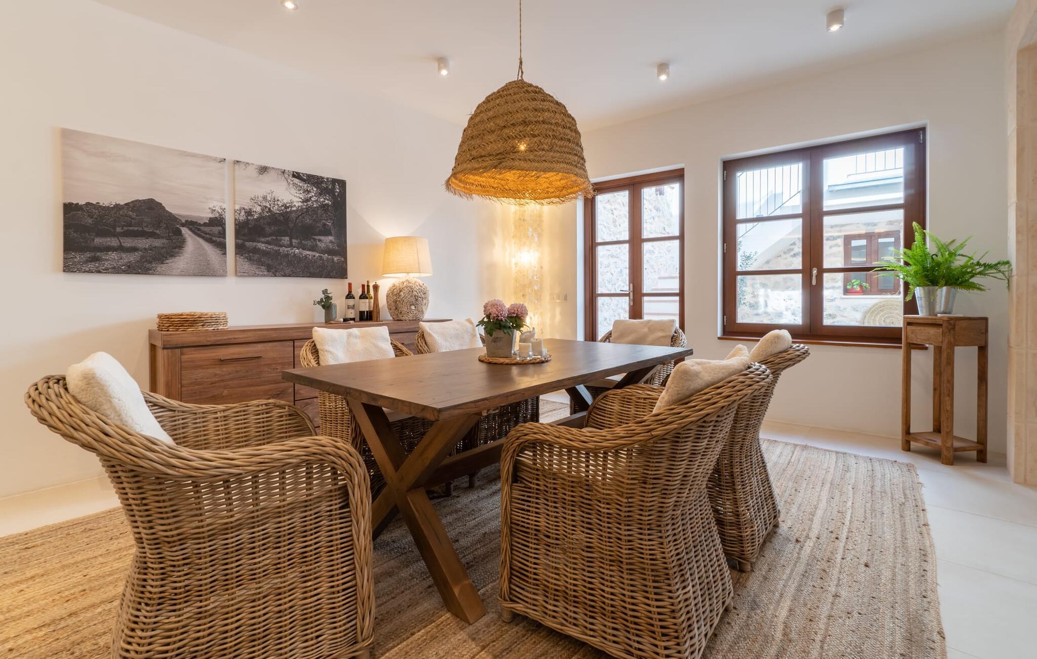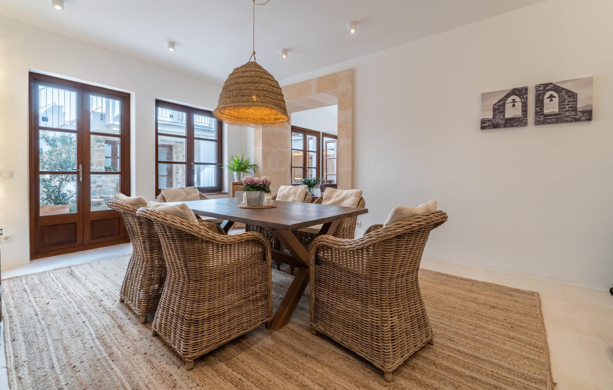 udkanten af Artà er "Casa Bella Mirada" et smukt renoveret rækkehus, ideelt for familier med børn fra 8 år og derover, og tilbyder en betagende udsigt over byen og de frodige omgivelser. Beliggende mellem traditionelle bygninger giver denne ejendom jer mulighed for at fordybe jer i middelalderbyens rige historie. Nyd den mallorcanske sol på en af de to tagterrasser eller slap af i den overdækkede gårdhave med direkte adgang til køkkenet. Interiøret byder på en harmonisk blanding af rustikt og moderne design og byder på en hyggelig stue, et veludstyret køkken og tre smagfuldt indrettede soveværelser. Rækkehuset ligger direkte på en asfalteret vej, hvor I også kan parkere. Dette hjem lover komfort og stil i hvert hjørne. Det moderne rækkehus "Casa Bella Mirada" ligger i den smukke østlige del af øen, direkte i den smukke by Artà. Butikker, caféer og gode restauranter er derfor let tilgængelige til fods. De smukke omgivelser byder på frodig middelhavsvegetation samt skønne vandreruter og populære golfbaner. Hvis I leder efter lidt mere livlighed, så er Cala Ratjada, omkring 10 km væk, det rigtige sted for jer. Der kan I tilbringe en afslappende dag på stranden i en af de smukkeste bugter på østkysten. Bemærk venligst, at denne ejendom ikke accepterer ungdomsgrupper eller polterabender. En ungdomsgruppe på denne ejendom består af personer på 25 år eller derunder. Book ikke denne ejendom, hvis I er en ungdomsgruppe eller polterabend, da jeres reservation vil blive afvist, når den er booket, hvilket også kan være tilfældet ved ankomst til ejendommen eller under jeres ophold, og I vil ikke modtage en refusion
