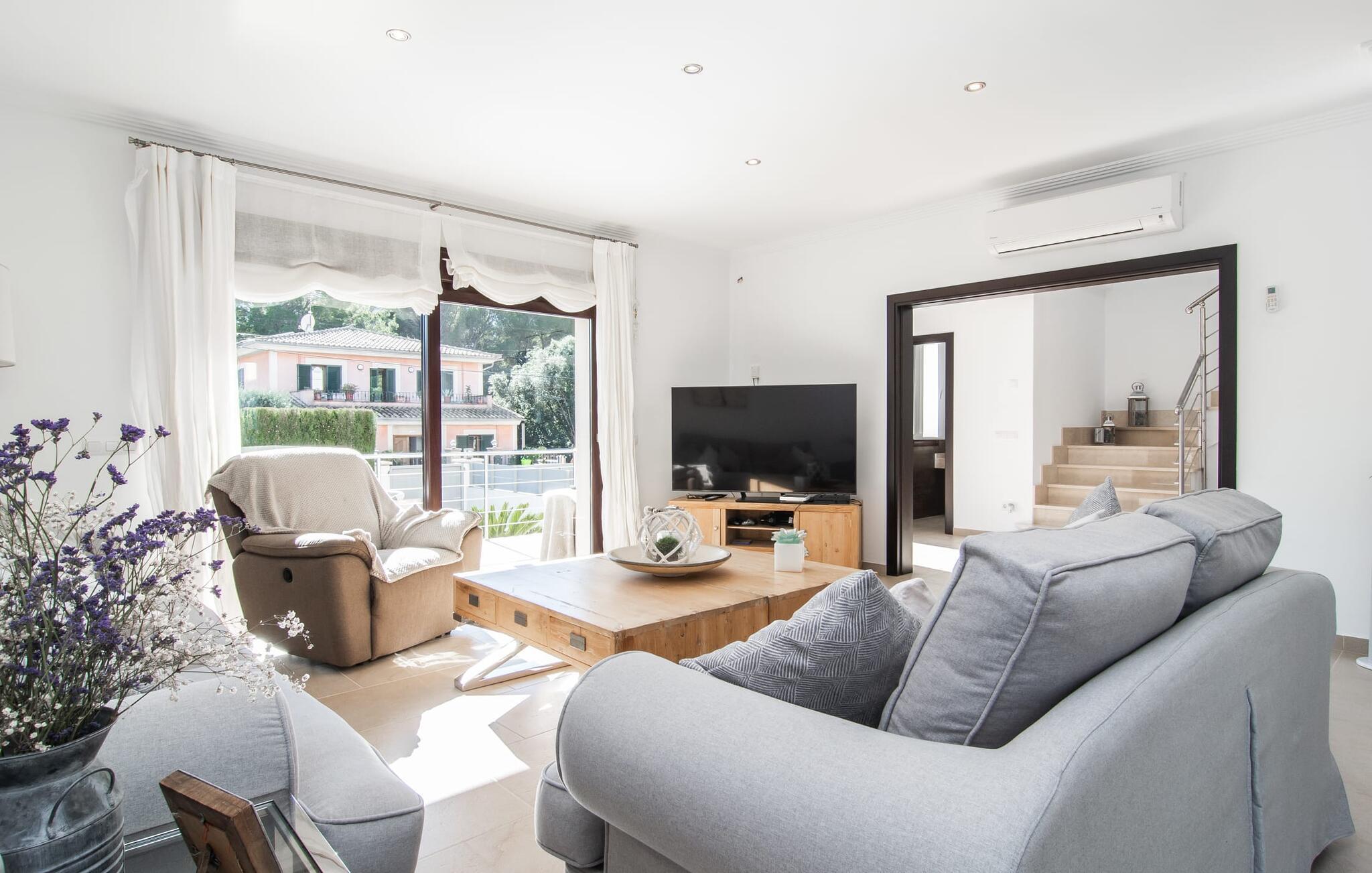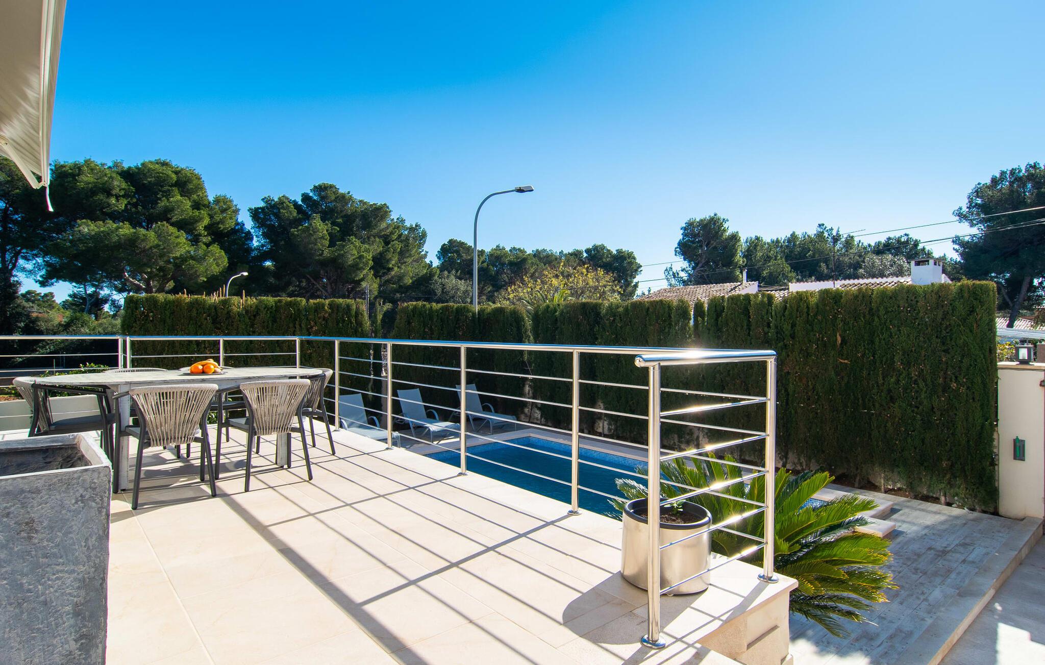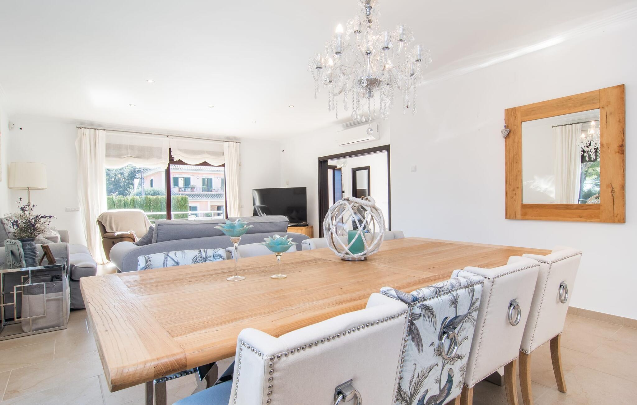 Nærheden til havet er uden tvivl det enestående kendetegn ved denne store ferievilla på Mallorca. Men "Casa Bon Sol" - "House of the Good Sun" - har stadig et eller to højdepunkter i ærmet! Man træder ind i ejendommen og befinder sig straks midt i den murede have, der emmer af en vis hjemlighed med sin græsplæne og stedsegrønne hæk midt i bebyggelsen. Det lille palmetræ er et rigtigt blikfang ved poolen, som er beklædt med blå mosaiksten og har en afslapningszone, hvor boblende vand forkæler kroppen. I får lyst til at drømme om den blå himmel hele dagen lang på de komfortable liggestole. Samtidig er den hævede terrasse attraktiv, hvor I om nødvendigt kan nyde jeres måltider under forteltets beskyttelse og have en fantastisk udsigt til poolen. Afhængig af solens stilling og jeres behov for varme, kan I alternativt bruge terrassen på den anden side af huset og sidde ved et bord også der. Det er en sand fornøjelse at tilberede middelhavsdelikatesser på murstensgrillen og nyde dem i godt selskab. Oversvømmet med lys og i moderne stil, venter den veludstyrede villa sine gæster indenfor. Et ekstremt harmonisk farveskema i kombination med materialer af høj kvalitet og harmoniske former sikrer en eksklusiv, trendy stemning. En stue-spisestue i åbent plan med stort fladskærms-tv og udgang til terrassen er det perfekte sted at slappe af indendørs, mens det fuldt udstyrede køkken har et super moderne udtryk med sofistikerede hårde hvidevarer og en køkkenø. Der er også et andet bord her. På villaens øverste etage er der tre elegante og hyggelige soveværelser og to badeværelser, hvoraf det ene er en suite. Der er praktisk gæstetoilet i stueetagen. Husets generøse fodaftryk giver mulighed for masser af privatliv, selv når det er fuldt besat. Vi giver "Casa Bon Sol" på Mallorca vores absolutte anbefaling! Meget tæt på havet, i den sydlige udkant af det populære feriested Cala Ratjada, venter den moderne villa "Casa Bon Sol" op til seks gæster. Den attraktive bolig for par og familier byder, udover forskellige terrassearealer foran og bag huset med indbydende siddepladser, en saltvandspool med wellness-område, hvor vandet bobler dejligt. Takket være privatlivsskærmen kan I nyde absolut privatliv på trods af de direkte naboer. Beliggenheden på gaden gør den infrastrukturelle forbindelse ideel: shopping, restauranter og stranden er let tilgængelige til fods. Bemærk venligst, at denne ejendom ikke accepterer ungdomsgrupper eller polterabender. En ungdomsgruppe på denne ejendom består af personer på 25 år eller derunder. Book ikke denne ejendom, hvis I er en ungdomsgruppe eller polterabend, da jeres reservation vil blive afvist, når den er booket, hvilket også kan være tilfældet ved ankomst til ejendommen eller under jeres ophold, og I vil ikke modtage en refusion