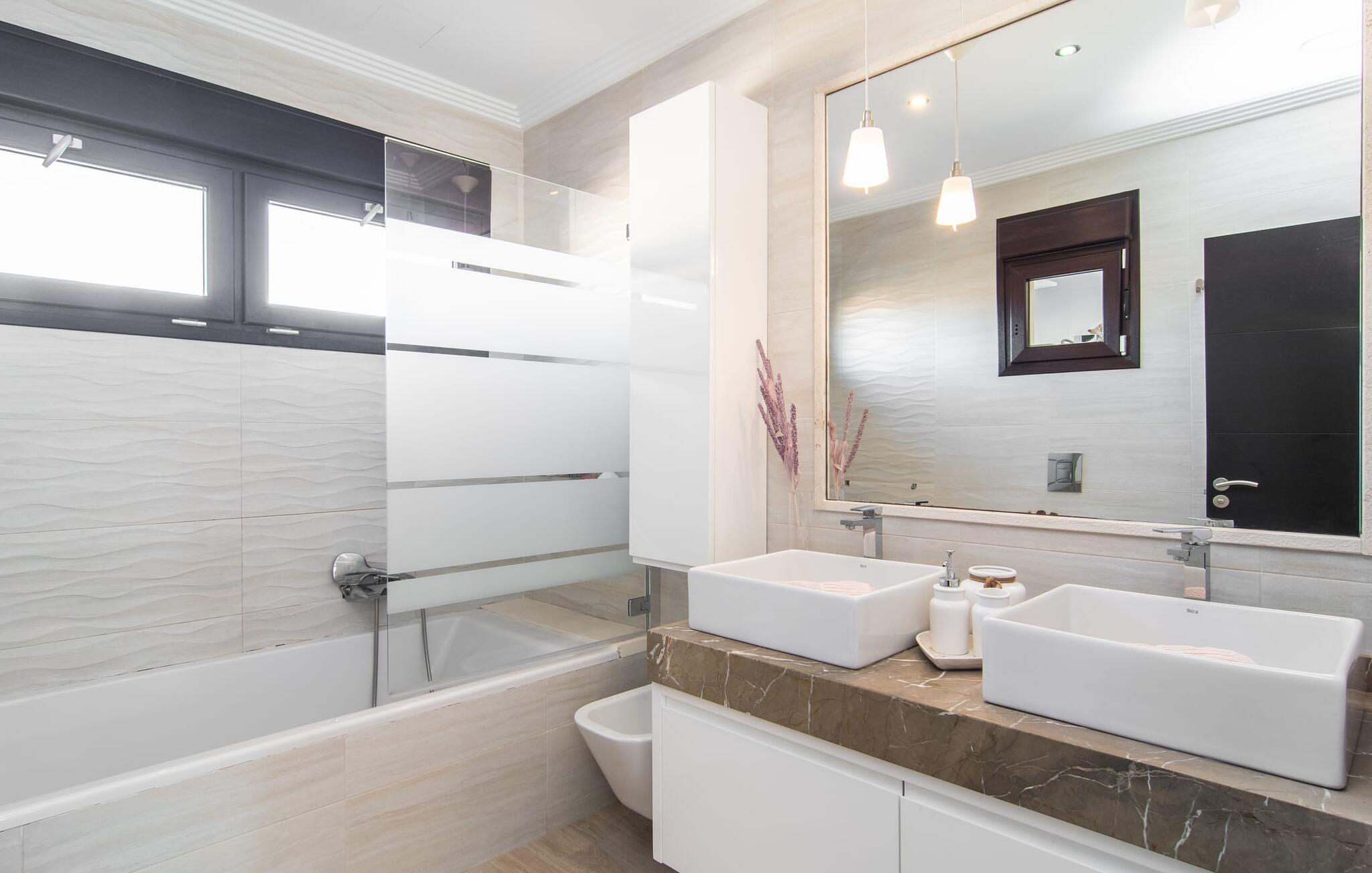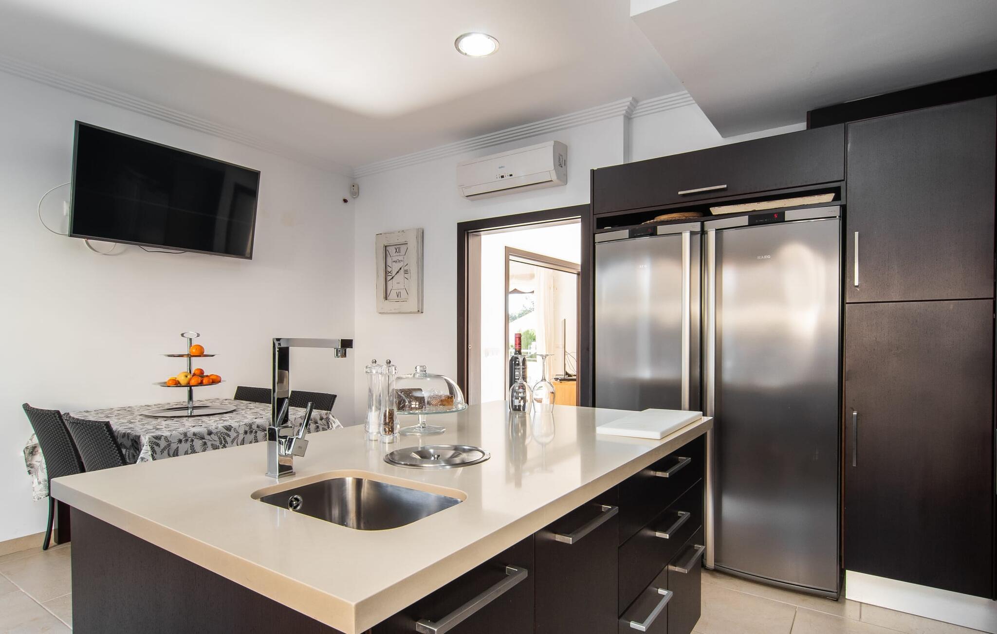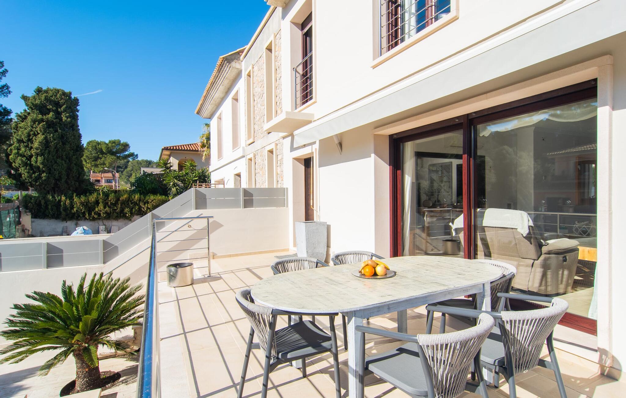 Nærheden til havet er uden tvivl det enestående kendetegn ved denne store ferievilla på Mallorca. Men "Casa Bon Sol" - "House of the Good Sun" - har stadig et eller to højdepunkter i ærmet! Man træder ind i ejendommen og befinder sig straks midt i den murede have, der emmer af en vis hjemlighed med sin græsplæne og stedsegrønne hæk midt i bebyggelsen. Det lille palmetræ er et rigtigt blikfang ved poolen, som er beklædt med blå mosaiksten og har en afslapningszone, hvor boblende vand forkæler kroppen. I får lyst til at drømme om den blå himmel hele dagen lang på de komfortable liggestole. Samtidig er den hævede terrasse attraktiv, hvor I om nødvendigt kan nyde jeres måltider under forteltets beskyttelse og have en fantastisk udsigt til poolen. Afhængig af solens stilling og jeres behov for varme, kan I alternativt bruge terrassen på den anden side af huset og sidde ved et bord også der. Det er en sand fornøjelse at tilberede middelhavsdelikatesser på murstensgrillen og nyde dem i godt selskab. Oversvømmet med lys og i moderne stil, venter den veludstyrede villa sine gæster indenfor. Et ekstremt harmonisk farveskema i kombination med materialer af høj kvalitet og harmoniske former sikrer en eksklusiv, trendy stemning. En stue-spisestue i åbent plan med stort fladskærms-tv og udgang til terrassen er det perfekte sted at slappe af indendørs, mens det fuldt udstyrede køkken har et super moderne udtryk med sofistikerede hårde hvidevarer og en køkkenø. Der er også et andet bord her. På villaens øverste etage er der tre elegante og hyggelige soveværelser og to badeværelser, hvoraf det ene er en suite. Der er praktisk gæstetoilet i stueetagen. Husets generøse fodaftryk giver mulighed for masser af privatliv, selv når det er fuldt besat. Vi giver "Casa Bon Sol" på Mallorca vores absolutte anbefaling! Meget tæt på havet, i den sydlige udkant af det populære feriested Cala Ratjada, venter den moderne villa "Casa Bon Sol" op til seks gæster. Den attraktive bolig for par og familier byder, udover forskellige terrassearealer foran og bag huset med indbydende siddepladser, en saltvandspool med wellness-område, hvor vandet bobler dejligt. Takket være privatlivsskærmen kan I nyde absolut privatliv på trods af de direkte naboer. Beliggenheden på gaden gør den infrastrukturelle forbindelse ideel: shopping, restauranter og stranden er let tilgængelige til fods. Bemærk venligst, at denne ejendom ikke accepterer ungdomsgrupper eller polterabender. En ungdomsgruppe på denne ejendom består af personer på 25 år eller derunder. Book ikke denne ejendom, hvis I er en ungdomsgruppe eller polterabend, da jeres reservation vil blive afvist, når den er booket, hvilket også kan være tilfældet ved ankomst til ejendommen eller under jeres ophold, og I vil ikke modtage en refusion