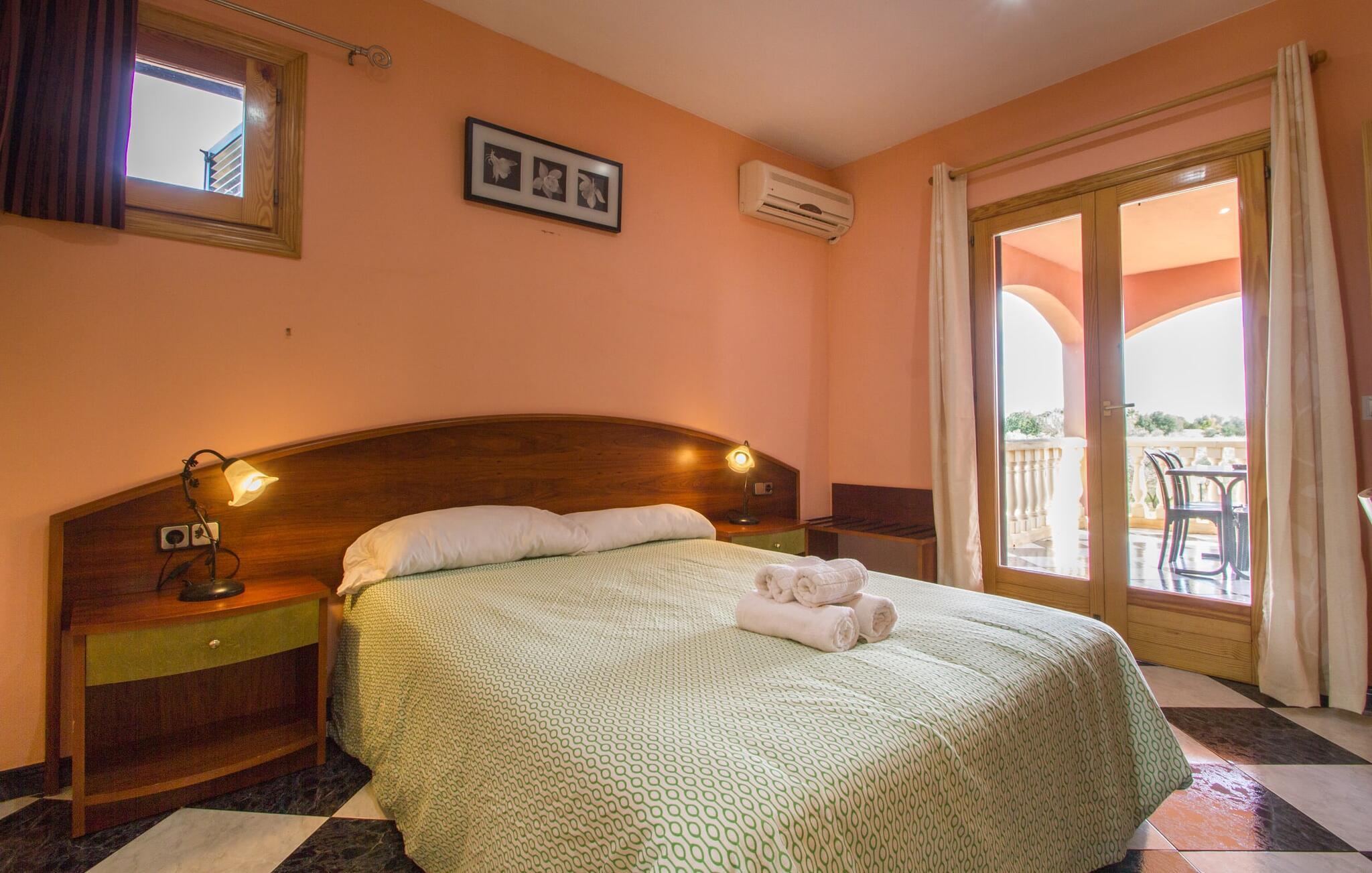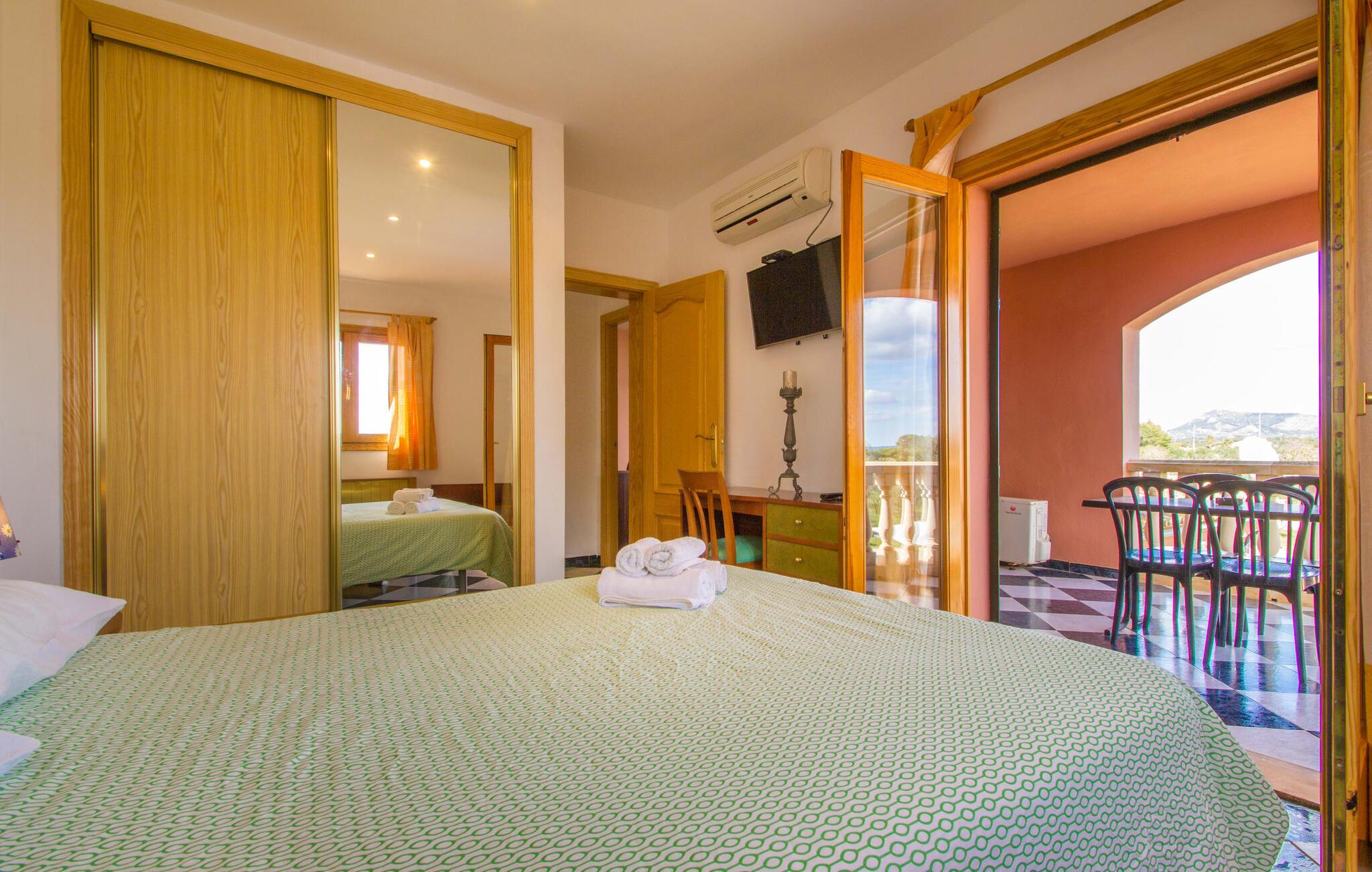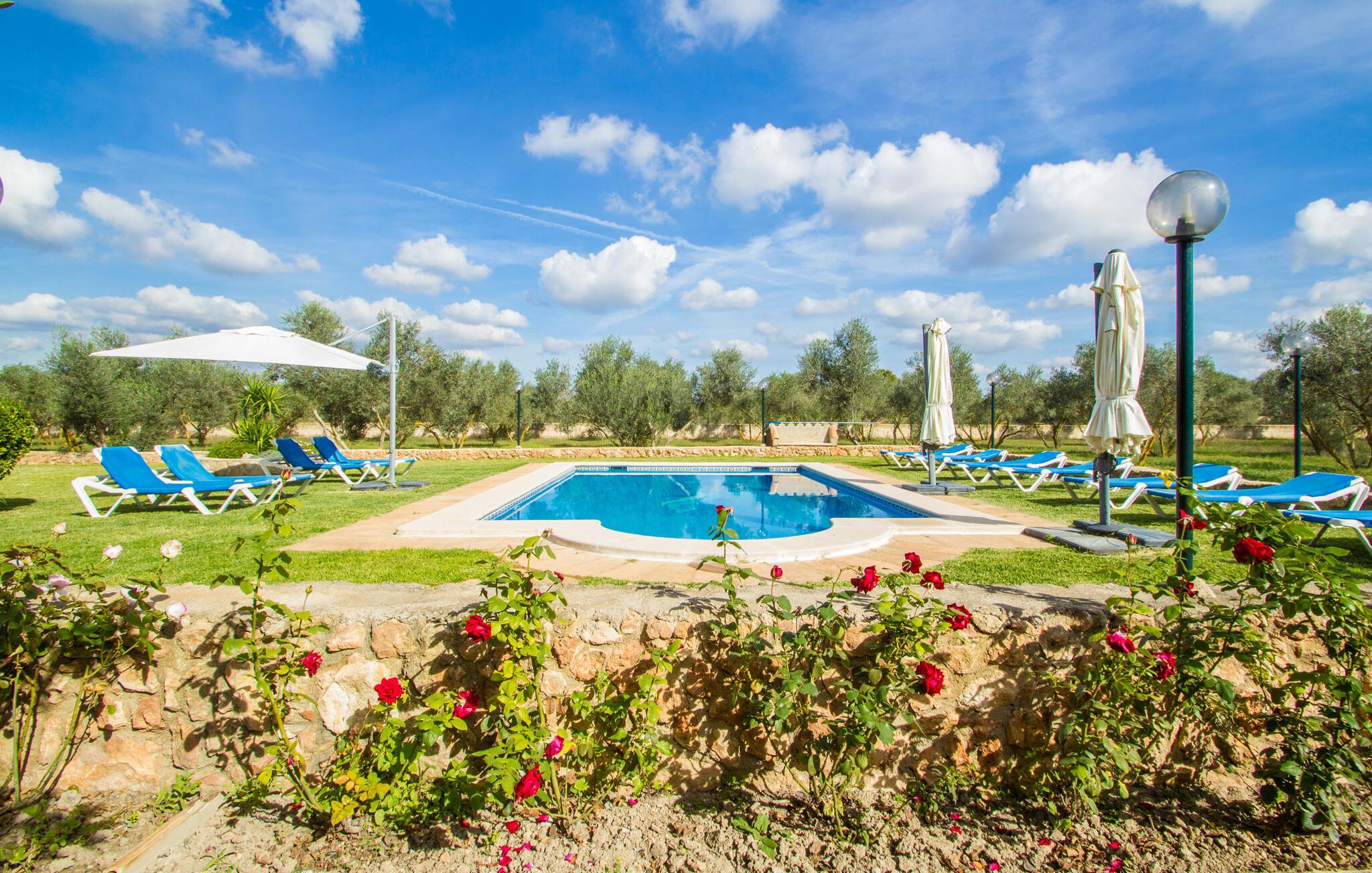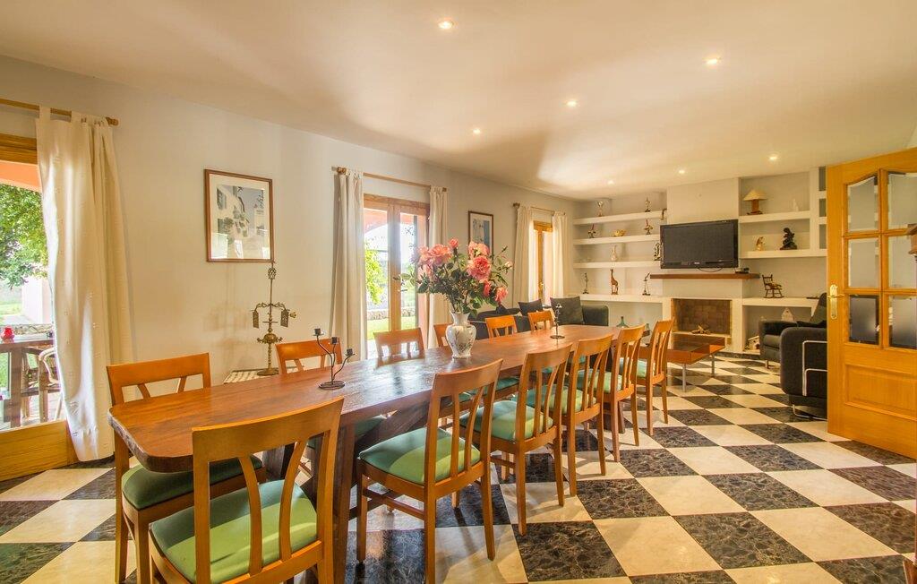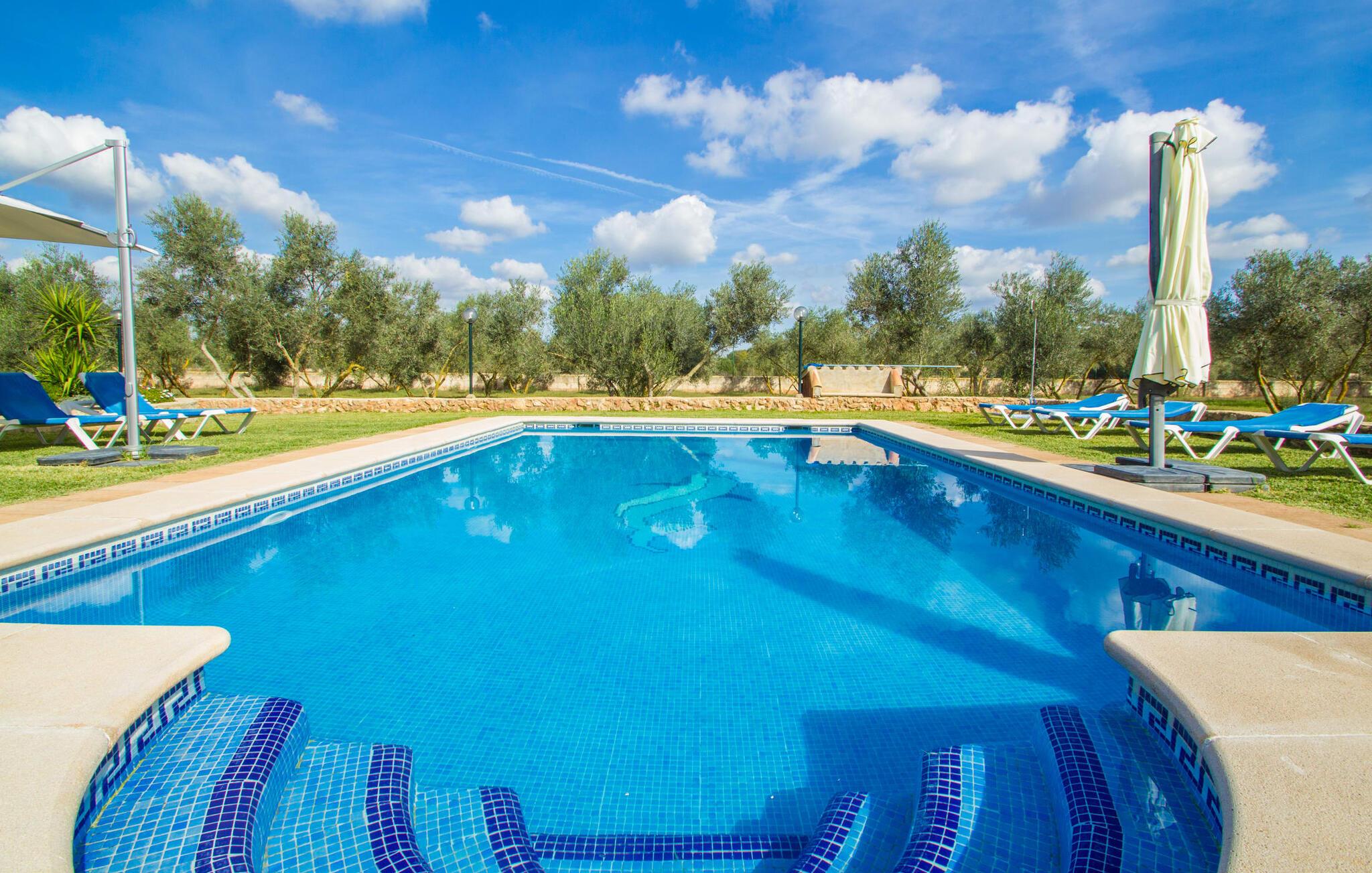 Selv indkørslen til jeres sommerhus afslører lidt af dens vidunderlige karakter. I kan parkere jeres bil lige foran huset, hvilket gør udpakningen meget nem. Den rummelige, 20.000 m², velholdte ejendom byder på masser af plads til at slappe af og garanterer absolut privatliv. De omfattende græsgange og deres gamle træer giver en idé om størrelsen. Et nøgleelement i denne atmosfærisk designede have er poolen på 8 x 4 m med etageret gulv og en indbydende græsplæne. Store parasoller giver behagelig skygge, hvis det kræves. Eller hvad med en revitaliserende morgen yoga træning i disse utrolige omgivelser? Det store spisebord på den overdækkede terrasse er et skønt sted at slutte aftenen af, og lige overfor ligger udekøkkenet med grill: frisk fisk, paella og grillede grøntsager er blot nogle få eksempler på lokale delikatesser, der kan sammensættes på no. tid overhovedet. Den udendørs belysning omkring poolen skaber en magisk atmosfære sidst på aftenen. Hvorfor ikke bruge de sidste par timer af dagen alene med refleksionen af måneskin i vandet? Det charmerende og smagfuldt indrettede interiør strækker sig over en generøs 420 m². I stueetagen ligger opholdsrummet, som er nænsomt designet ned til mindste detalje. Når I træder ind i denne vidunderlige casa fra terrassen, falder jeres øje straks på det imponerende lange spisebord i træ. Et komfortabelt sofaområde med et stort fladskærms-tv inviterer jer til at slappe af. Den åbne ild vil holde jer varm og godt tilpas på koldere aftener. En smart blanding af rustikke møbler, moderne genstande og mallorcanske accenter har forvandlet "Casa Campillos" til et sandt levende paradis. Et særligt højdepunkt ved denne villa er det store, fuldt udstyrede køkken, hvor I kan opdage det mallorcanske køkkens forviklinger og fremtrylle kreative menuer til jeres hjertes lyst. Lige bag køkkenet er et loungeområde med en behagelig sofa og pejs: det perfekte sted at mødes. I stueplan er der desuden gæstetoilet og soveværelse med 1,35 m bred dobbeltseng, eget badeværelse og direkte udgang til haven. På første sal finder I yderligere fire smagfuldt indrettede soveværelser. Tre dobbeltværelser med 1,35 m eller 1,50 m brede dobbeltsenge, hvoraf det ene også har eget badeværelse, samt et soveværelse med to enkeltsenge (90 x 190 cm) har alle direkte udgang til en smuk terrasse med en fantastisk udsigt over landskab. Ovenpå værelserne deler et rummeligt badeværelse med stor håndvask og badekar. For at undgå at svede i sommermånederne har alle soveværelser aircondition. I landlig afsondrethed ligger denne ejendom elegant midt i en smuk flora; Lokal vegetation og mallorcansk tradition præger dette maleriske billede. Oliven- og abrikostræer, majsmarker, vindmøller og paradisiske strande smelter sammen til en middelhavsidyl på Mallorcas blide sydkyst. Takket være den nærliggende motorvej MA-19 er "Casa Campillos" let at nå; Herfra kan I opdage mange af regionens højdepunkter uden at skulle rejse langt, inklusive nogle af de smukkeste strande i syd, herunder den romantiske klippebugt Cala Pi eller Mallorcas længste naturlige strand, Es Trenc, som er perfekt til svømning og afslappende. Hvorfor ikke besøge den nærliggende Salines d'Es Trenc og glæde jeres kære derhjemme med smagfulde souvenirs. Den verdensberømte, omhyggeligt håndskummede Flor de Sal er en væsentlig ingrediens i det mallorcanske køkken. Der er over 400 plantearter og 10.000 kaktusarter på kun 40.000 m². Mange af dem er en del af en samling af mallorcinsk vegetation. For en vidunderlig udsigt over øen anbefaler vi også en vandretur til den 500 m høje Puig de Sant Salvador. Der finder I Santuari de Sant Salvador-klostret, som også rummer en restaurant med en smuk terrasse. Den omfattende, 20.000 m² store landejendom og storslåede casa ligger ikke langt fra byen Llucmajor ved foden af Puig de Randa-bjerget i den sydlige del af øen. Llucmajor har en bred vifte af shoppingmuligheder, og nogle af de smukkeste strande ligger kun en kort køretur væk. Landskabet er præget af naturparker og endeløse kyststrækninger med små bugter samt strandparadiset Es Trenc. I kan nå hovedstaden Palma på omkring 30 minutter via MA-19.