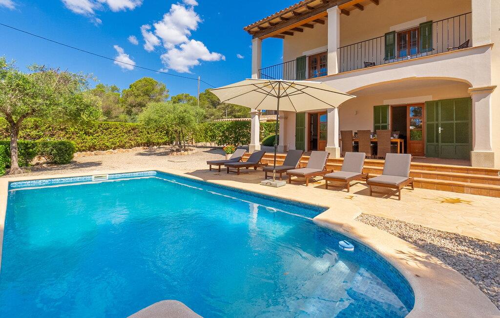 Villaen “Casa Ferie” på Mallorcas sydkyst er for nylig blevet renoveret og opgraderet inde og ude af ejerne af nabovillaen “Clafé”. Ekspansive udendørs siddepladser tilbyder en fantastisk havudsigt, der står i levende kontrast til den dybblå himmel. Udendørsområdet, dekoreret med middelhavsplanter, er blevet nydesignet og byder nu på grus, fliser og natursten. Nye hække blev plantet i haveområdet. Derudover blev der tilføjet en ny klippehave, udendørs grill med sti og udendørs bruser. Fra den charmerende søjlegang veranda med havudsigt med udendørs spiseplads kan I nyde en fantastisk udsigt over den 28 m² store pool og den sydvendte solterrasse. Komfortable liggestole og en stor parasol inviterer jer til at slappe af. På samme etageareal, en etage højere, er havudsigten endnu mere eksklusiv. Denne etage byder også på smukke siddepladser. Der er endnu en altan på østsiden af huset. Villaens lyse, indbydende interiør imponerer med en harmonisk blanding af smagfuld indretning og nøje udvalgte byggematerialer. I stueetagen finder I en åben stue og spisestue med komfortable sofaer, satellit-tv og en åben pejs, som inviterer jer til at slappe af komfortabelt i de køligere måneder. Det moderne køkken med lav vedligeholdelse er fuldt udstyret med nyt køleskab, emhætte, ovn, keramisk kogeplade, opvaskemaskine, mikroovn, filterkaffemaskine og elkedel. En stilfuld, åben trappe fører jer til øverste etage. De tre rummelige soveværelser, hvoraf det ene har eget badeværelse, har hver deres udgang til det fri og er udstyret med nye senge og madrasser. De tilgængelige sengestørrelser er en dobbeltseng, der måler 1,60 x 2,00 m og to dobbeltsenge, der måler 2 x 1,00 x 2,00 m. Badeværelserne, nogle dekoreret med mosaikfliser, er ganske enkelt elegante og yderst funktionelle. Varm/kold aircondition er installeret i hele huset, og en vaskemaskine, tørretumbler, strygebræt og strygejern er til rådighed. Den knaldgule villa “Casa Ferie” med havudsigt ligger kun omkring 100 m i luftlinje fra kysten, i den østlige udkant af den lille landsby Vallgonera-Es Pas, på den sydlige del af øen og hører til til den nærliggende kommune Cala Pi Find her I finder typiske mallorcanske restauranter og alt hvad I behøver til jeres daglige behov. Klipperne, som er inden for gåafstand, giver direkte adgang til havet. Køreturen fra villaen til Palma de Mallorca Lufthavn tager 35 minutter.