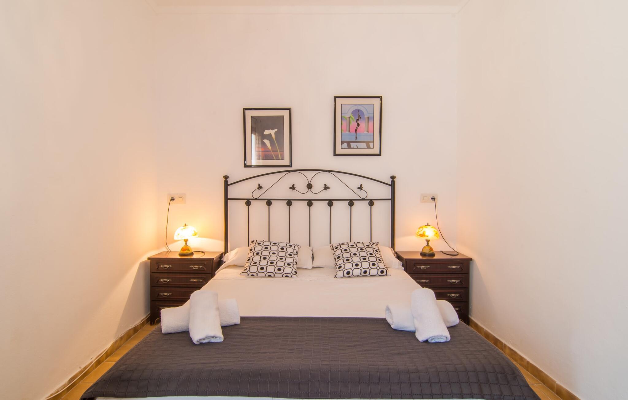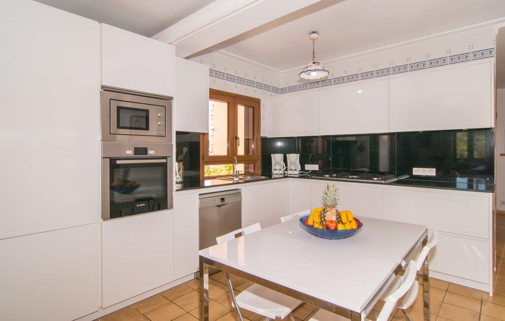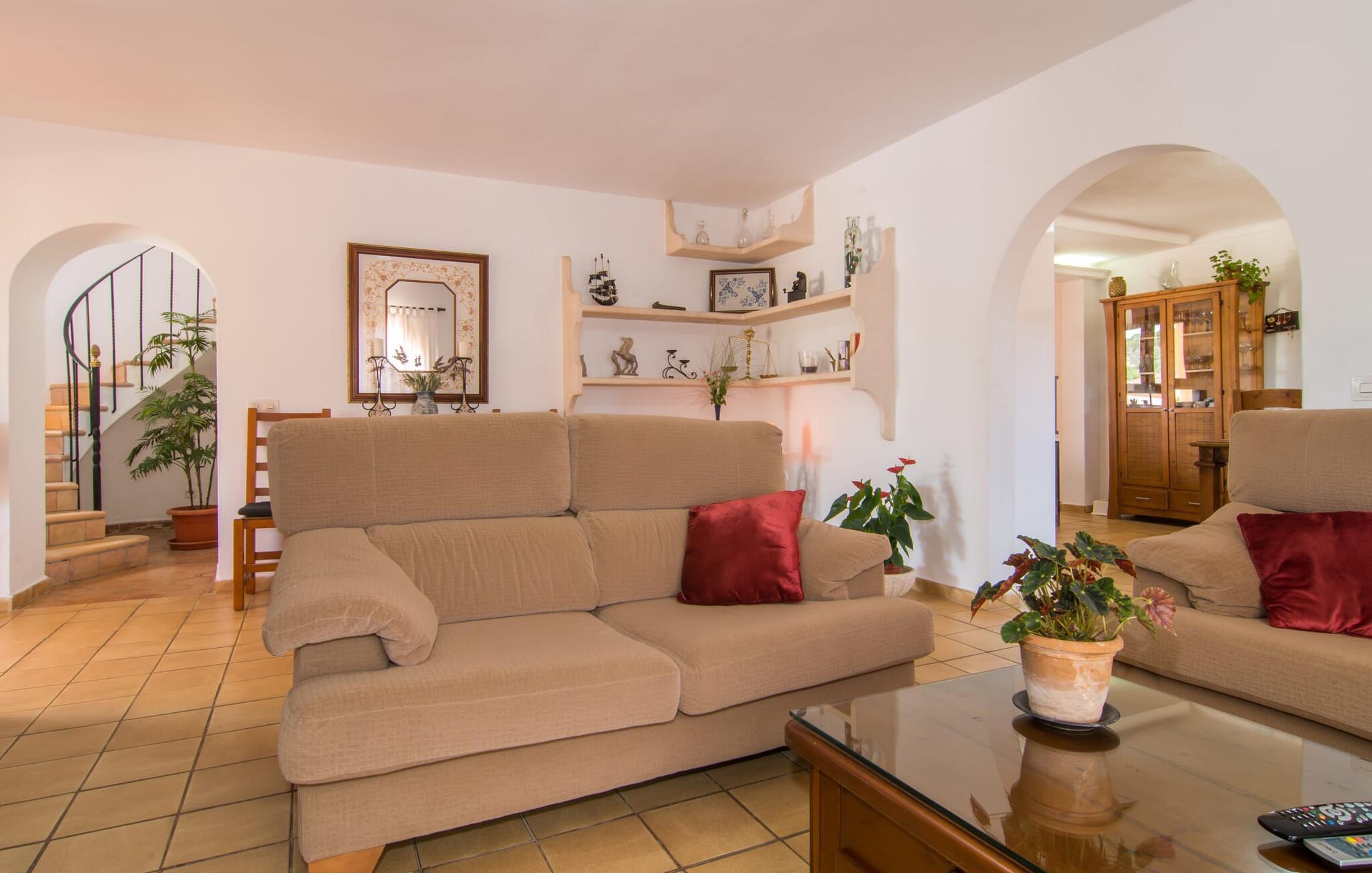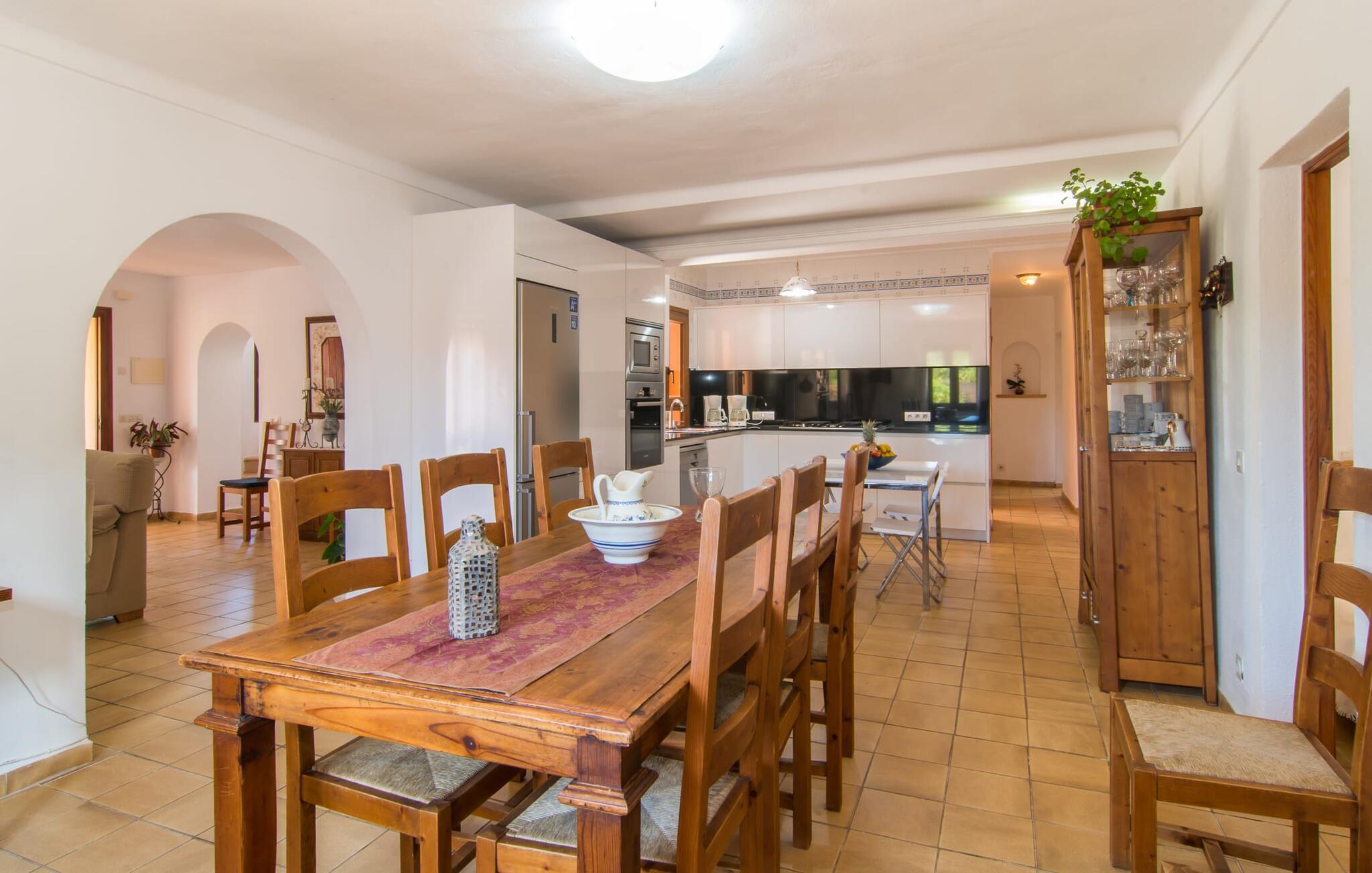 Din elegante, komfortable villa "Casa Fina" med sit varme sandstenslook kan med sikkerhed tælles blandt landejendommestyperne. Med sit tårn udstråler den typisk mallorcinsk charme. En velholdt indkørsel fører til huset, foran hvilken der nemt kan parkeres flere biler. På den anden side er den omfattende, kærligt anlagte have med pool. Omgivet af appelsintræer og palmer kan I slappe af på liggestolen eller de komfortable puder omkring poolen. Slap af på den luftige, skyggefulde terrasse ved huset, hvor lyse lilla bougainvilleaer vokser, eller spil et spil bordtennis. Det hyggelige udekøkken med grill og stort spisebord har til huse i et lille åbent stenhus og er oplagt til at grille på dejligt varme, uendelige sommeraftener. Inde i jeres villa finder I en smagfuld blanding af muntre, lyse hvide og rustikke træmøbler. Stilfulde rundbuer i stedet for døre forbinder de enkelte rum og formidler en luftig rumfølelse. En rustik vindeltrappe fører fra indgangspartiet til tårnet. Her finder I et af dobbeltværelserne med eget badeværelse. Den hyggelige stue i stueetagen med pejs og stort fladskærms-tv støder direkte op til det moderne, fuldt udstyrede køkken. Indrettet i et hvidt farveskema med et lille bord, ideelt som opbevaringsbakke eller til den første morgenmad, flyder det ind i spisestuen, hvor et stort træbord inviterer til fest. På denne etage er der et af badeværelserne med bruser, gæstetoilet og yderligere tre soveværelser med dobbeltsenge. I en mesterlig blanding af gammelt og nyt er alle værelser smagfuldt indrettede med sans for detaljer. Praktiske indbyggede skabe giver nok opbevaringsplads til jeres feriebagage. Yderligere to værelser, hver med eget badeværelse, ligger direkte ved siden af hovedhuset i en separat bygning. Ideel til en ferie med den (udvidede) familie eller venner. Hvilket panorama! Fra jeres rustikke villa "Casa Fina" i sydøst kan I nyde en overvældende udsigt over de omkringliggende bakker og den 500 m høje Puig de Sant Salvador, som klostret af samme navn ligger på. Den nærliggende landevej fører jer til den blomstrende by Felanitx, som tilbyder alt hvad I behøver til jeres villaferie, herunder supermarkeder, apoteker og restauranter, inden for 5 minutter i bil. De smukke strande i Cala Murada, Cala Tropicana eller Cala Marçal ligger mindre end 13 km væk. Som en kærkommen måde at køle af på varme dage er de mystiske dragehuler, Cuevas del Drach nær Porto Colom, altid et besøg værd: et imponerende system af underjordiske drypsten og undervandshuler.