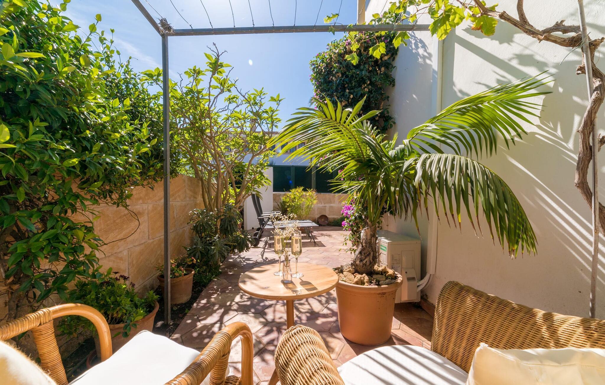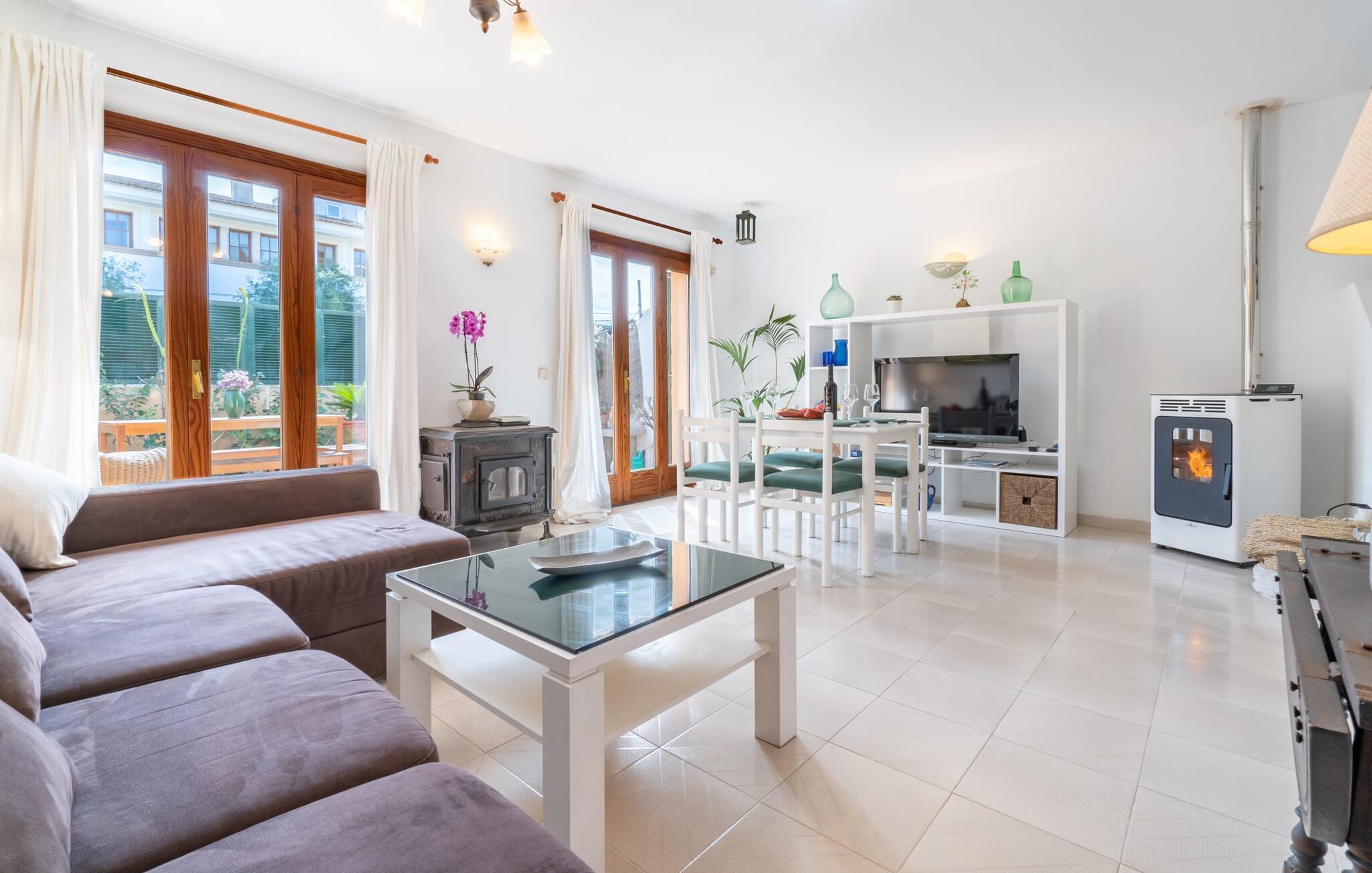 Bare rul dine kufferter gennem den lille grønne låge, "Casa Ginebro" står klar til at byde dig velkommen. Dette er et feriehus i Fincallorca. En stenbænk og to blå liggestole omgivet af potteplanter og kaktusser giver et roligt sted i skyggen for at nyde duften af friske citroner. På bagsiden af huset er der en charmerende gårdhave-terrasse med et spisebord med træbænke og en muret grill til perfekte aftener under åben himmel. Grønne skodder, en gul og hvid facade og kurvestole under en pergola fuldender middelhavscharmen. Efter en dag på stranden kan du skylle af og slappe af i den private udendørs bruser. Indenfor kombinerer den rummelige stue klinkegulve med lyse hvide vægge, hvilket skaber en frisk, luftig atmosfære. En behagelig sofa, flere naturinspirerede malerier, et panorama-tv og en pejs tilføjer komforten, mens de store franske døre åbnes for at fylde rummet med lys. Det fuldt udstyrede køkken er ideelt til selvforplejning. På øverste etage er der to soveværelser med dobbeltsenge og et lille værelse med balkon, ideelt som børneværelse. "Casa Ginebro" byder på både komfort og karakter til en afslappende ferie. Fincaen "Casa Ginebro" er beliggende nær stranden i den varierede østlige del af øen, nær den smukke bugt Font de sa Cala. Supermarkeder, små butikker og hyggelige barer ligger inden for gåafstand. Havnebyen Cala Ratjada ligger kun 5 km væk og imponerer med sin attraktive strandpromenade og smukke, uberørte strande, mens det farverige ugentlige marked Capdepera kun ligger omkring 3 km væk. Aktive rejsende kan tage et surfkursus, leje en båd eller udforske undervandsverdenen ved at dykke.