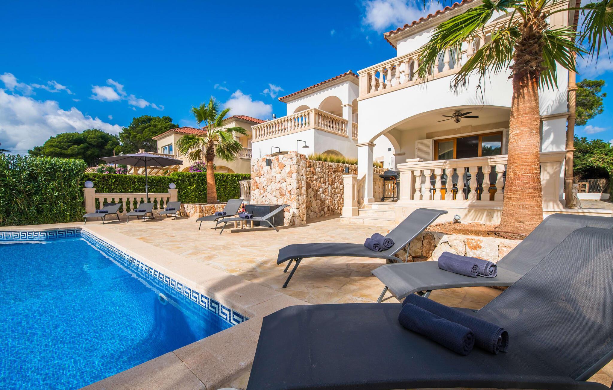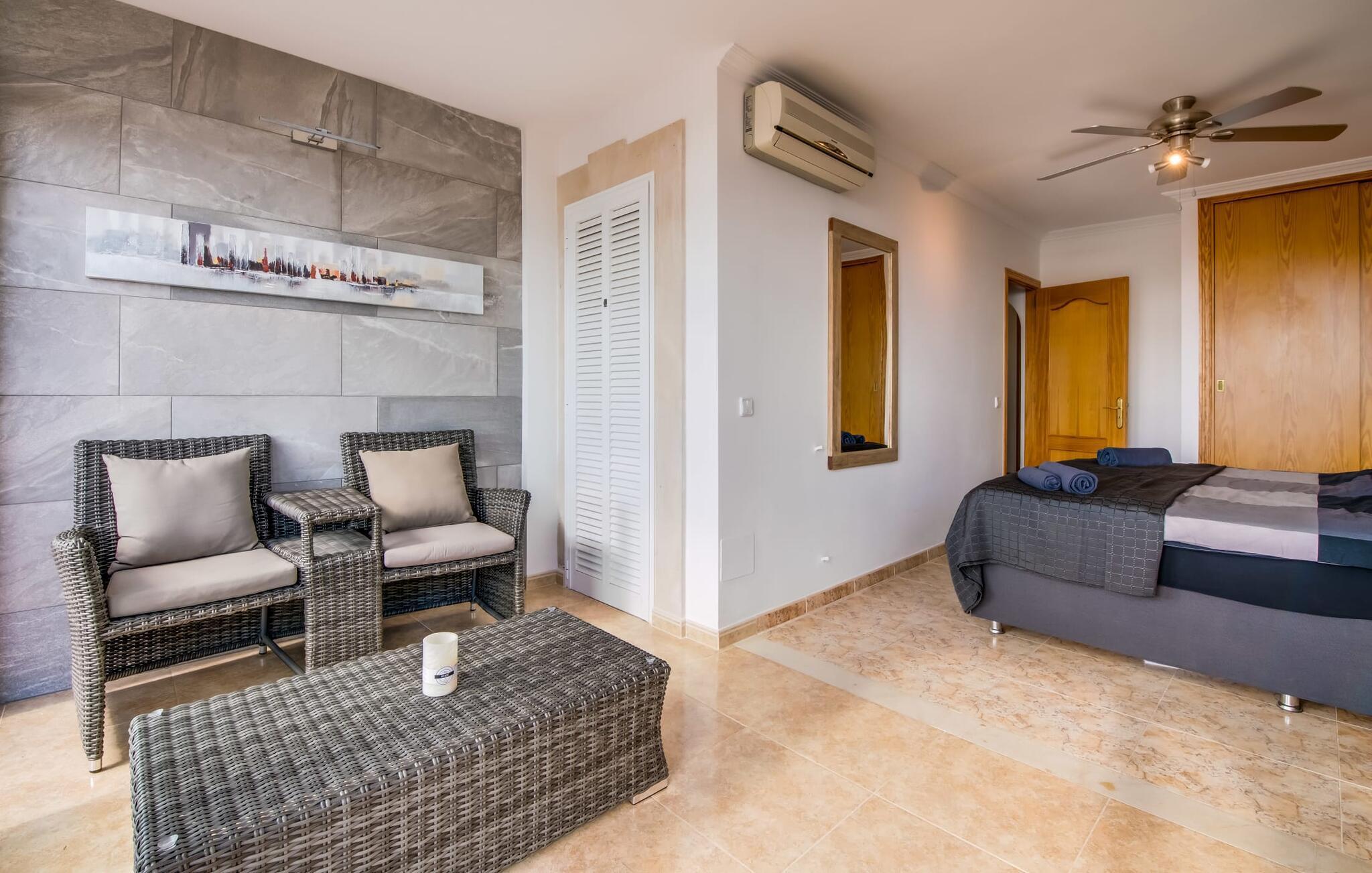 Den stilfulde villa "Casa Habana" kombinerer luksus med en afslappet, munter atmosfære. Dette er et feriehus i Fincallorca. Beliggende blandt palmer og en naturstenterrasse har villaen smarte liggestole, en parasol og en fælles pool med mosaikfliser, som deles med naboen "Casa Cuba" (EMI110), perfekt til en ferie med venner eller familie. Nyd måltider på den overdækkede terrasse med havudsigt eller lav mad på gasgrillen. En rummelig balkon og tagterrasse giver yderligere steder at slappe af og nyde omgivelserne. Indenfor byder den åbne stue og spisestue på moderne komfort. Der er to dobbeltværelser med aircondition med adgang til tagterrassen på første sal og et med to enkeltsenge i stueetagen. To flisebadeværelser sikrer komfort, mens det fuldt udstyrede køkken byder på alt hvad du behøver til selvforplejning. Villaen er perfekt til at nyde øens charme. Havudsigtsvillaen "Casa Habana" ligger to gader væk fra de fænomenale klipper i den dejlige kystby Cala Pi. Denne velholdte urbanisering giver dig mulighed for at tilbringe skønne timer på lange gåture langs den imponerende kystregion. Du kan gøre dine indkøb i de omkringliggende byer på den sydlige del af øen. Den børnevenlige badebugt Cala Pi ligger kun 2 km væk.