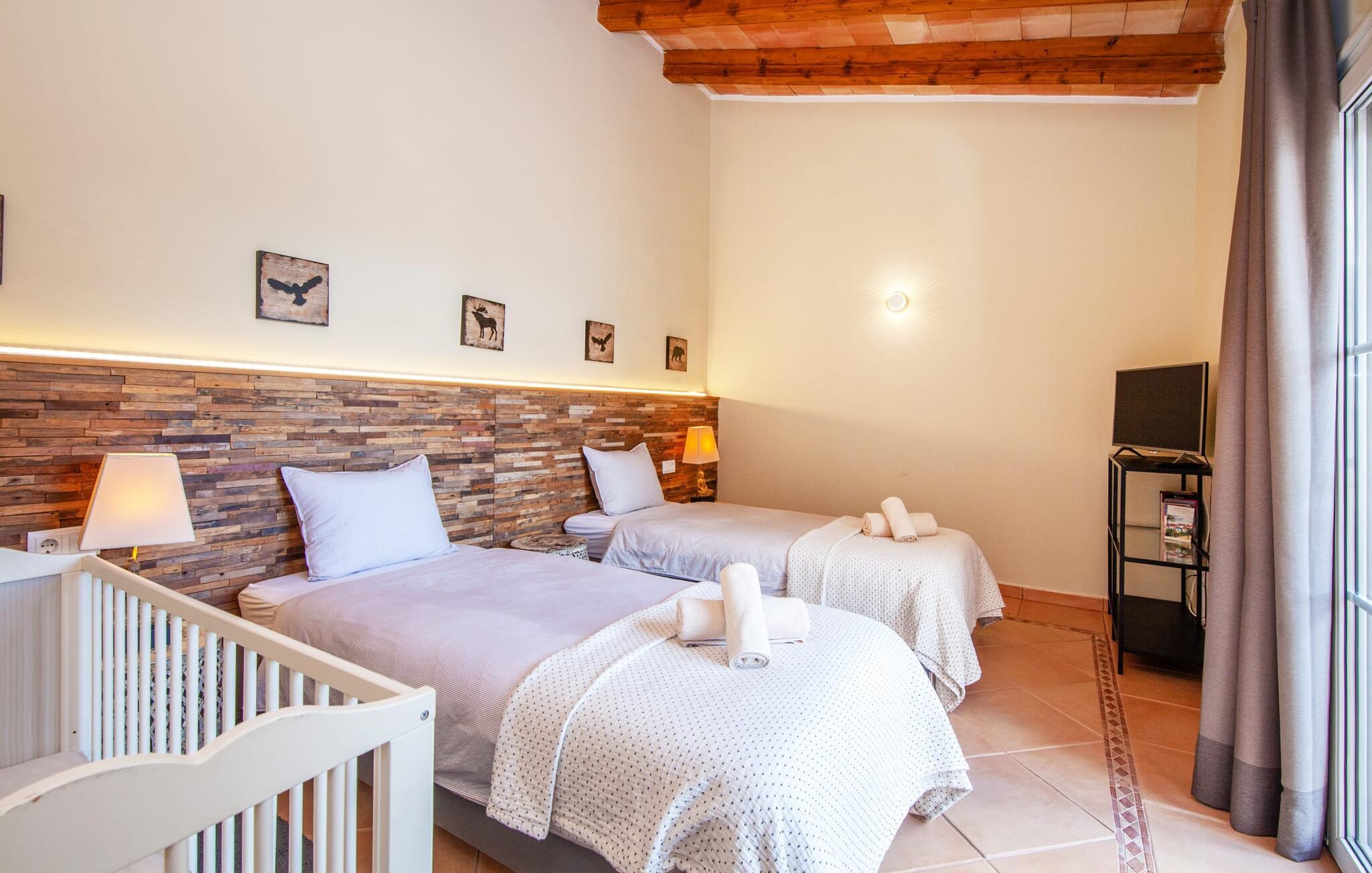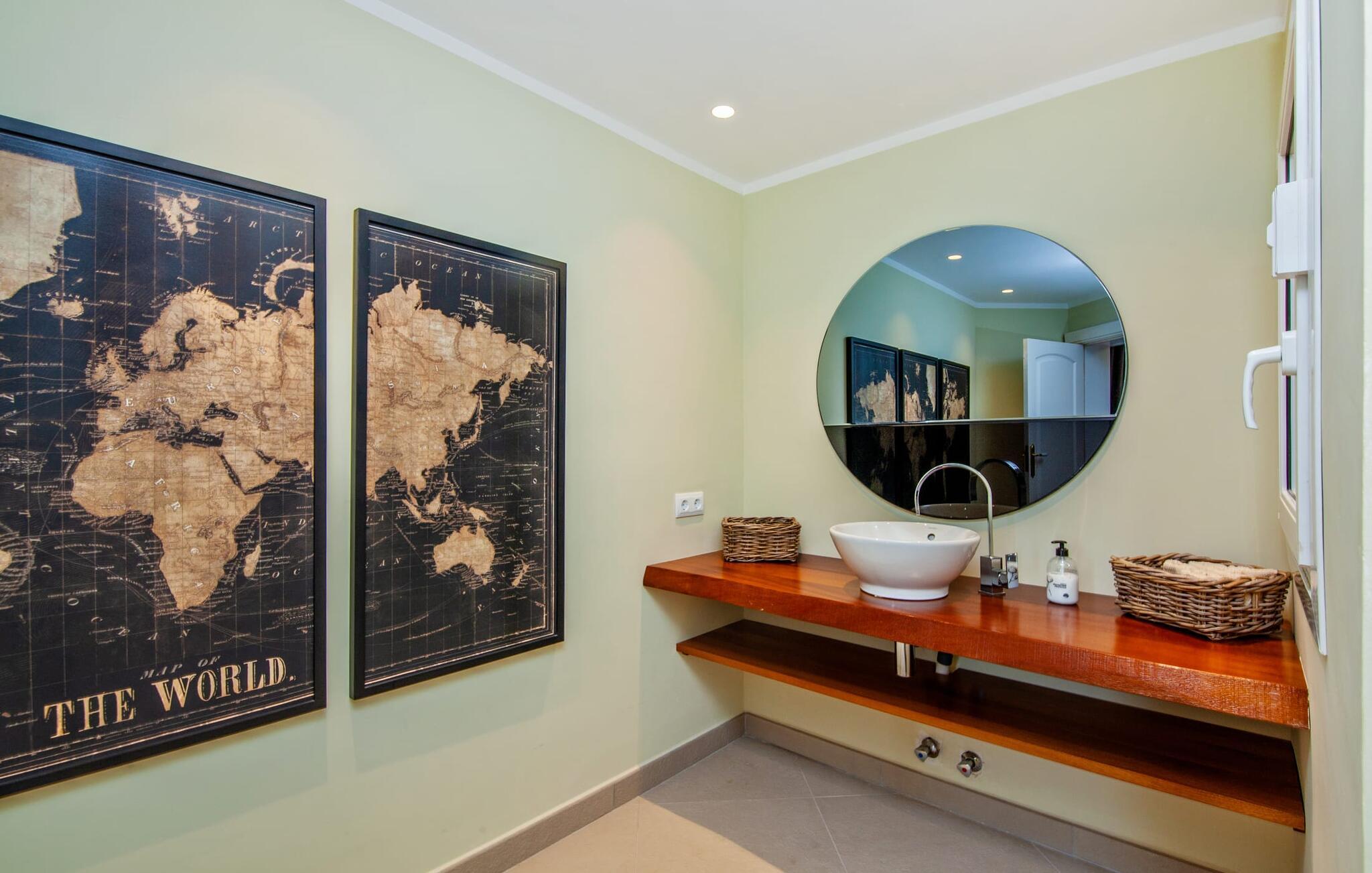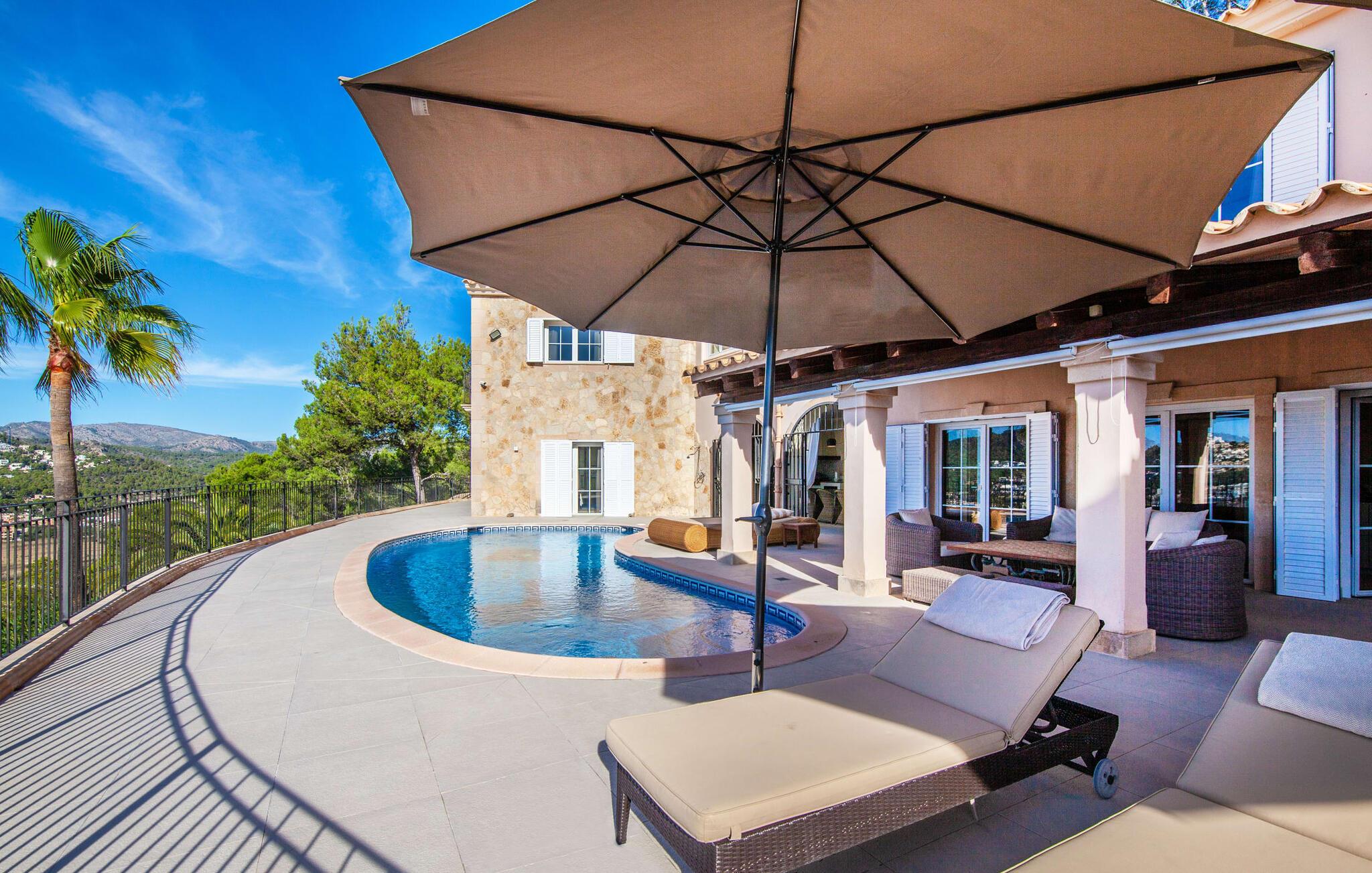 Dette luksuriøse feriehus og dets udendørsområde er smukt designet. Omkring poolen, som er let tilgængelig via trapper, er der forskellige steder med betagende udsigt, herunder den hyggelige lounge og daybed. Spisebordet på den overdækkede terrasse bag buerne tilbyder også et storslået panorama. En balkon ovenpå fuldender det udendørs opholdsområde. En sauna er også tilgængelig i udendørsområdet i dette feriehus på Mallorca.