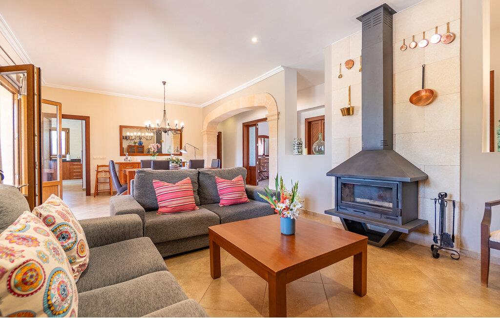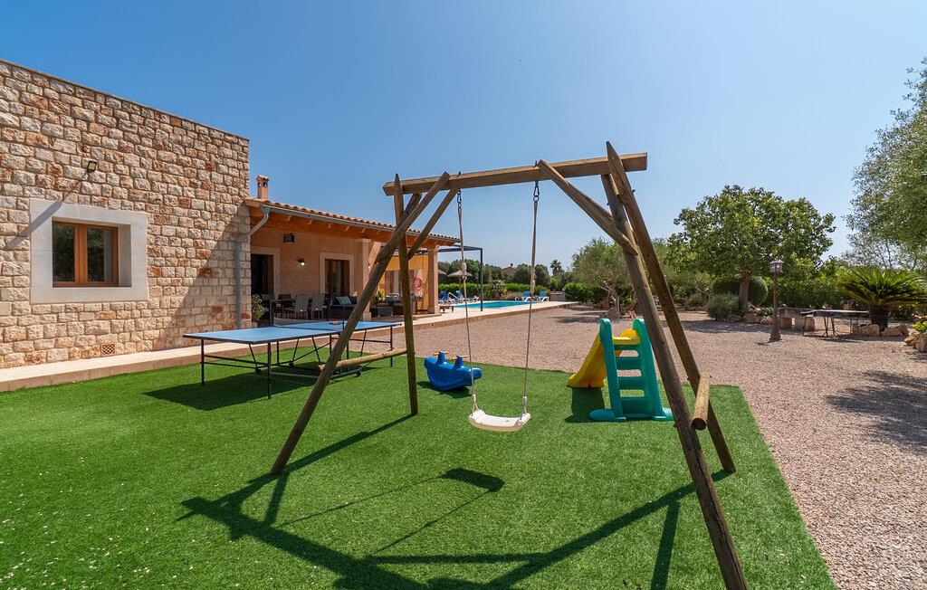 Et vidunderligt privat, landligt feriehus på Mallorca - med et stort hjerte for familier: Dette er fincaen "Casa Maria". Stueetagens finca, delvist bygget af smukke natursten, byder på plads til op til seks personer og er beliggende i det landlige sydlige Mallorca på en stor grund. Under en gåtur vil I støde på imponerende rester af de berømte historiske tårnbygninger fra Talayot-kulturen lige ved siden af. Udover disse interessante historiske facetter byder feriehusets yderst velholdte og nænsomt designede udendørsområde på ren afslapning. Forskellige terrasseområder, herunder en solrig tagterrasse, inviterer til afslapning - det være sig med en lækker snack ved det indbydende spisebord, med en god bog på en af de komfortable liggestole under parasollen ved poolen eller med en sporty omgang bordtennis ved husets bord. I kan parkere jeres lejebil komfortabelt på pladsen ved huset eller i garagen med direkte adgang til huset. Interiøret i "Casa Maria" er klassisk med moderne elementer. Masser af varmt træ, kombineret med lyse vægge og klinkegulve, plus møbler af høj kvalitet, nogle få udvalgte dekorative stykker og behagelig belysning: et sommerhus at føle sig godt tilpas i! At bo på ét plan er særligt praktisk, især for familier med små børn. I kommer ind i huset gennem et rummeligt indgangsparti. Den hyggelige, åbne stue og spisestue inviterer jer til at slappe af og spise sammen. Men I kan også spise morgenmad sammen i det rummelige, veludstyrede køkken uden pladsproblemer. De tre soveværelser med dobbeltsenge, alle smagfuldt og diskret indrettede og udstyret med indbyggede skabe, tilbyder masser af privatliv. Et soveværelse har et moderne badeværelse en suite, et andet badeværelse fuldender boligområdet på fincaen. Stille og landligt, men på ingen måde isoleret, blev fincaen "Casa Maria" bygget til seks personer på en kæmpe grund. Især børnefamilier vil finde et dejligt privat sommerhus her: Ud over masser af plads til børn at lege og løbe rundt giver den sydvendte pool med sine rummelige, overdækkede og solrige terrassearealer og et bordtennisbord variation på ferie. Den smukke landsby Ses Salines med indkøbsmuligheder ligger kun 2,4 km væk, og den smukke naturlige strand Platja Platja d'es Dolç er kun 7,8 km væk. Bemærk venligst, at denne ejendom ikke accepterer ungdomsgrupper eller polterabender. En ungdomsgruppe på denne ejendom består af personer på 25 år eller derunder. Book ikke denne ejendom, hvis I er en ungdomsgruppe eller polterabend, da jeres reservation vil blive afvist, når den er booket, hvilket også kan være tilfældet ved ankomst til ejendommen eller under jeres ophold, og I vil ikke modtage en refusion