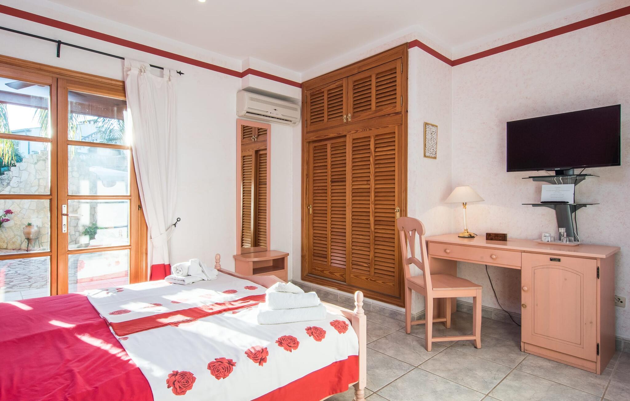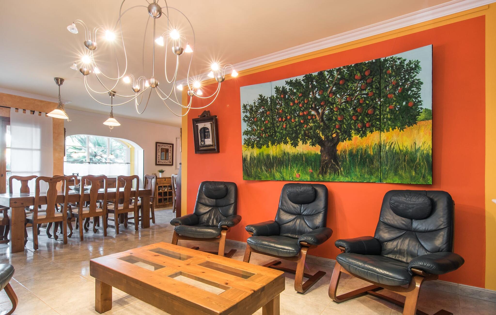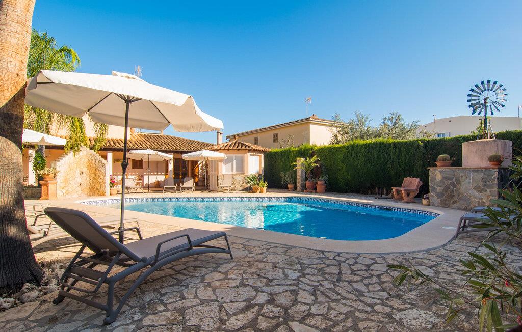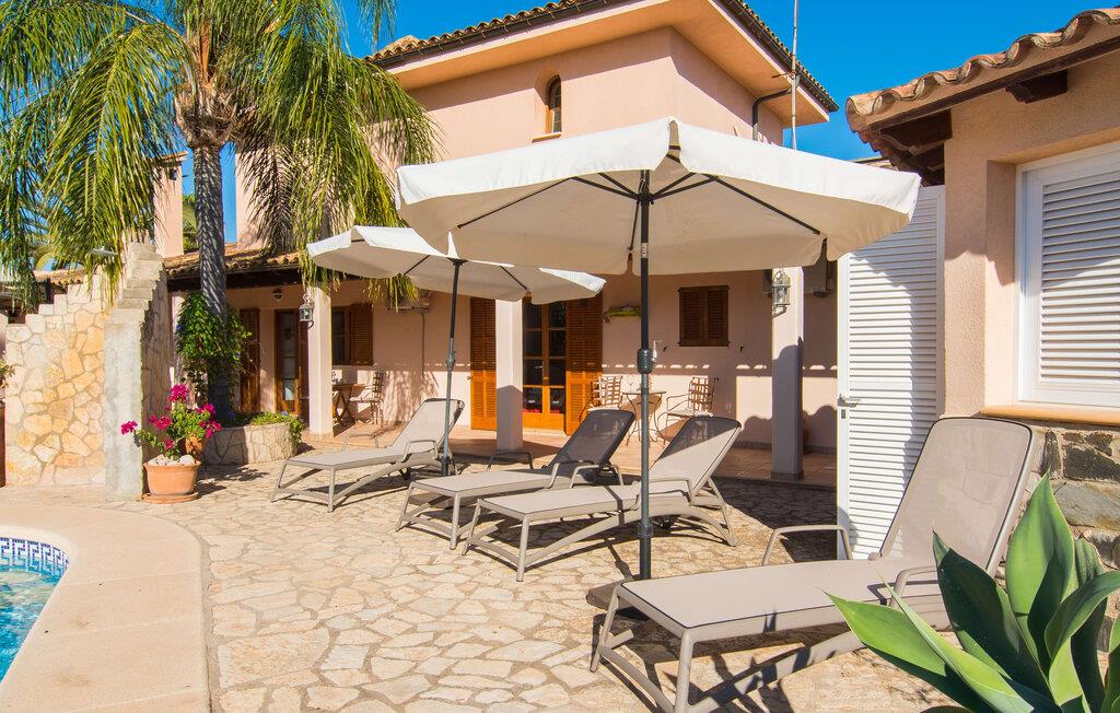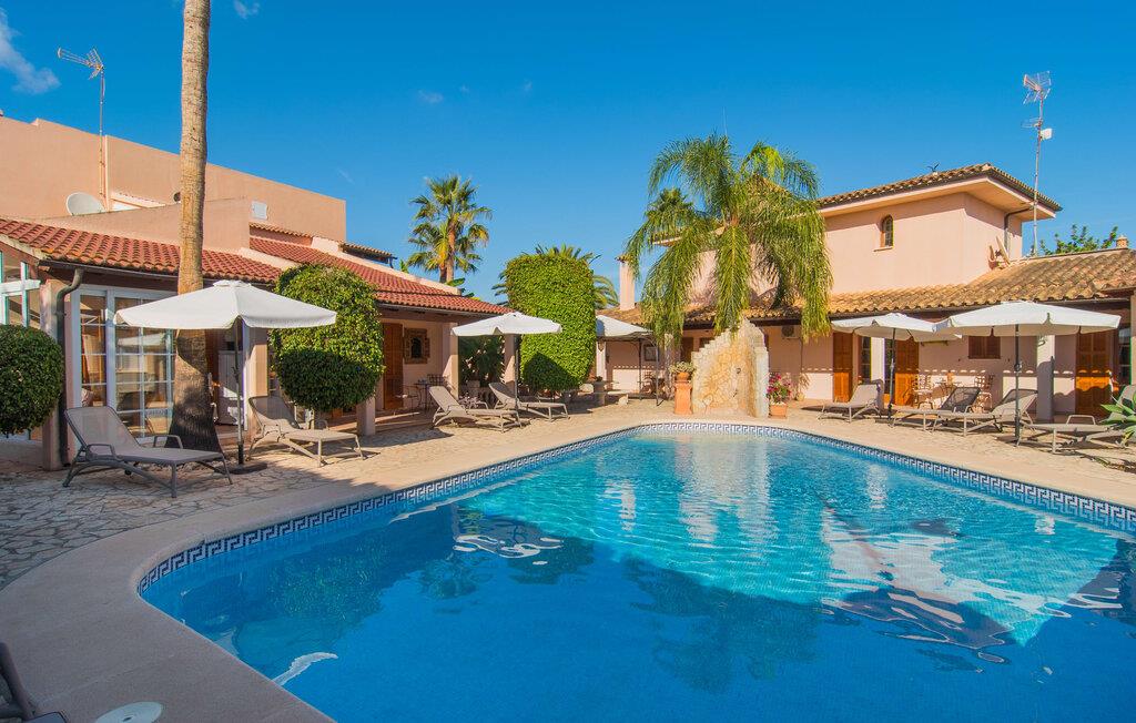 "Casa Romantica" er en charmerende villa i Sa Coma, perfekt for dem, der leder efter en central, men tæt på stranden beliggenhed. Beliggende på en rummelig grund byder ejendommen på et smukt vedligeholdt udendørsområde med indbydende terrasser, palmer og blomsterbede, der skaber en afslappende middelhavsstemning. Nyd at slappe af ved poolen med liggestole og parasoller eller forkæl jer selv med al fresco-måltider tilberedt ved grillpladsen eller i det fuldt udstyrede køkken. Et særligt kendetegn er den udendørs sauna, som giver jeres ferie et strejf af luksus. Parkeringspladser er tilgængelige direkte foran villaen. Indvendigt emmer villaen af en hyggelig bondegårdsstemning, med rustikke træmøbler, vinduesrammer og døre, der gør det nemt at slappe af og føle sig hjemme. I stueplan er der spisestue, opholdsstue med pejs og lyst køkken med udgang til terrasse. Fire dobbeltværelser, hver med eget badeværelse og rummelige garderobeskabe, sikrer privatliv og komfort. En vindeltrappe fører til et yderligere soveværelse med dobbeltseng med en-suite badeværelse, der fuldender hjemmets indbydende og velindrettede rum. Den velholdte finca "Casa Romantica" ligger på en rummelig grund i Sa Coma på det østlige Mallorca. Takket være den centrale beliggenhed kan I nemt nå restauranter og butikker til fods. Stranden i Sa Coma ligger kun omkring 1,8 km væk. I kan køre til andre strande som Cala Millor eller Cala Petita via den akustisk mærkbare vej, kun 3,2 km, eller 4,9 km med en lejebil. Og det ugentlige marked Son Servera ligger kun omkring 5,5 km væk.