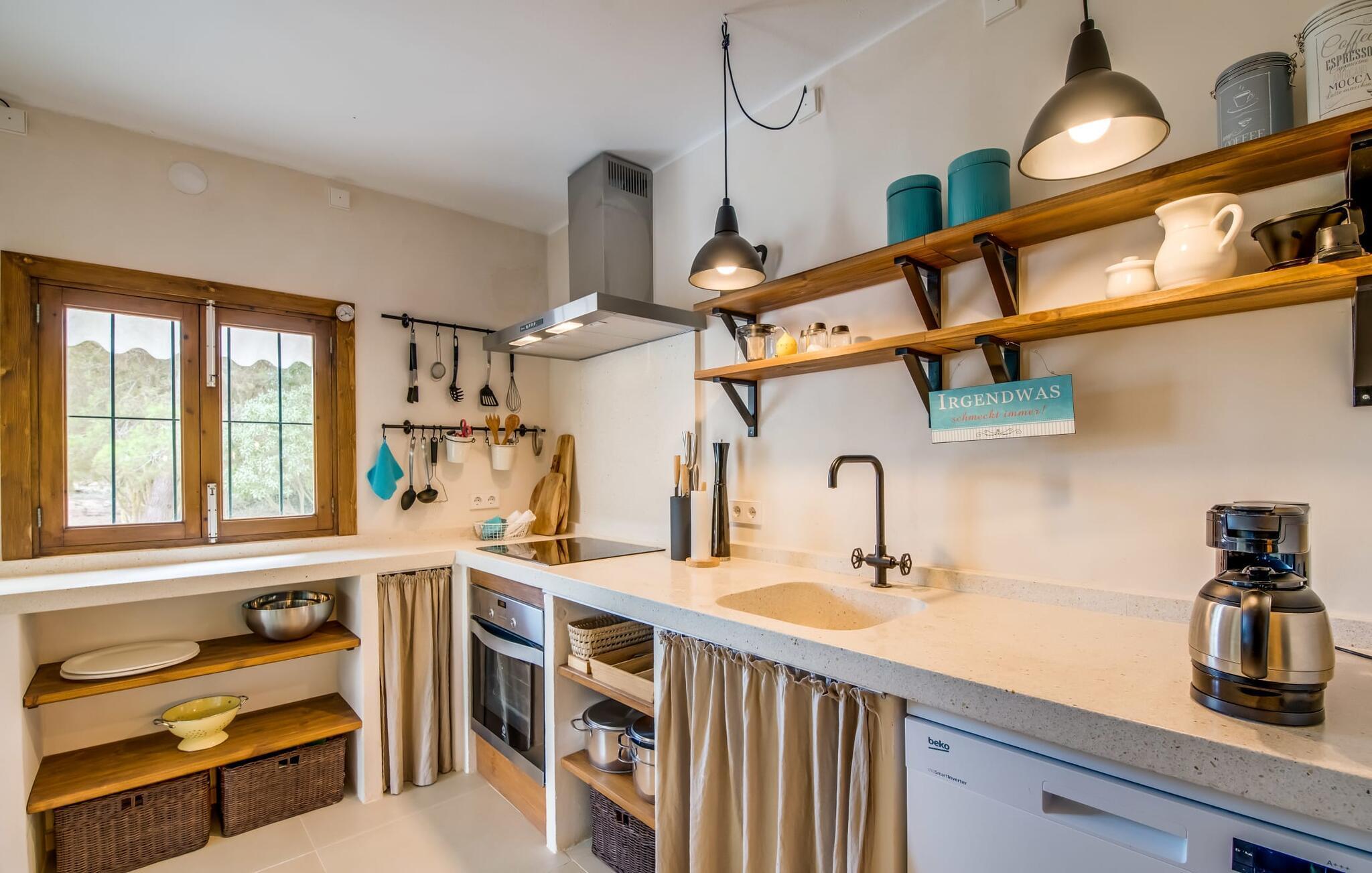 Dette charmerende feriehus på Mallorca udstråler en let sommerfriskhed og stilfuldt design. Den lyse bygning med fladt tag er omgivet af smukke middelhavstræer og byder på adskillige udendørs afslapningsmuligheder. Dette er et Fincallorca feriehus. Slap af på grusbedet foran terrassen eller nyd den luftige lounge under taget, perfekt til at drikke eller læse, mens du nyder naturen. Det udendørs køkken med grill er tæt på, hvilket giver mulighed for problemfri spisning under åben himmel. Blot få skridt væk er der en rummelig solterrasse i tilknytning til poolen, som nemt kan nås via trapper. Inde i huset er der en stilfuld stemning med hyggelige polstrede møbler og pilleovn i stuen, mens spisepladsen skaber en varm atmosfære med originalt bord, elegant belysning og pejs. Det fuldt udstyrede køkken forbedrer selvforplejningsoplevelsen med sit praktiske, men æstetisk tiltalende design. De to elegant designede soveværelser har hver især rummelige en-suite badeværelser, hvilket sikrer privatliv og komfort. Dette unikke bondehus, centralt beliggende på øen, kan varmt anbefales til en dejlig ferie på Mallorca. Dette charmerende bondehus har en smuk sydvendt beliggenhed på det østlige Mallorca. På grund af beliggenheden meget tæt på Manacor, som ligger ca. 4 km væk, kan flere supermarkeder og smukke strande nås hurtigt. Det er de såkaldte Calas de Mallorca, i alt 18 fine sandede og let skrånende strande langs østkysten.