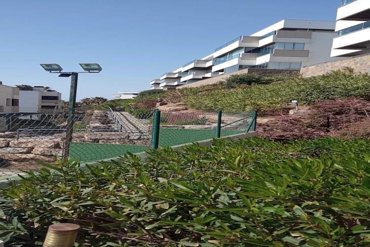 På 1. etage: (Stue(Fjernsyn, spisebord, sofahjørne, balkon eller terrasse, klimaanlæg), Køkken(brødrister, komfur, kaffemaskine, ovn, mikrobølgeovn, opvaskemaskine , køle-fryseskab), Soveværelse med badeværelse(dobbeltseng, bruser, håndvask, toilet, klimaanlæg), Soveværelse med badeværelse(enkeltseng, enkeltseng, bruser, håndvask, toilet, klimaanlæg)) have, swimmingpool(deles med andre gæster), padelbane