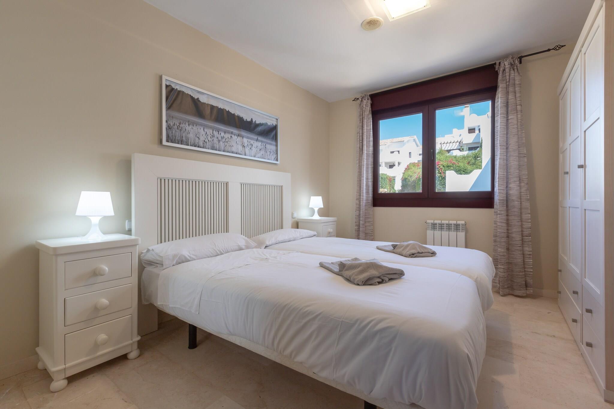 Buiten het appartement vindt u een uitgebreid gemeenschappelijk chloorzwembad, met afmetingen van 10m x 4m en een dieptebereik van 1m tot 1,6m, waar u kunt afkoelen op warme zomerdagen en een tuingedeelte; waar ze kunnen zonnebaden terwijl de kleintjes spelen. Op het terras van het huis kunt u ontspannen en iets drinken met uw gezelschap, dankzij de eethoek in de openlucht. Houd er rekening mee dat, aangezien dit een appartement is, de privacy beperkt is, aangezien er buren in de buurt zijn. Eenmaal binnen vindt u een prachtige woonkamer die open staat voor de eetkamer. Het gehele appartement is voorzien van gecentraliseerde AC. De kamer is uitgerust met Smart TV en is de ideale plek om tijd door te brengen met uw dierbaren. De keuken, met een keramische kookplaat, is volledig onafhankelijk en beschikt over alle benodigde keukengerei om comfortabel te kunnen koken. Bij het slapengaan vindt u twee slaapkamers. De eerste heeft een tweepersoonsbed en een eigen badkamer met douche en bubbelbad en de tweede slaapkamer heeft twee eenpersoonsbedden. Een andere badkamer met douche en hydromassagebad maakt de kamer compleet. Ze kunnen gebruik maken van de radiatoren en de wasmachine die ze in de accommodatie aantreffen. Als u met uw baby reist, kunnen wij u voorzien van een kinderbedje en een kinderstoel. Casares Bay staat bekend om zijn gouden zandstranden en kristalheldere water, maar ook om zijn indrukwekkende kliffen en rotsformaties langs de kust, waardoor het de ideale bestemming is voor watersporten zoals windsurfen, kitesurfen en paddlesurfen. Dankzij de talrijke routes die langs de kliffen en langs de kust lopen, is het ook de perfecte plek voor wandelliefhebbers. Op gastronomisch gebied staat La Bahía bekend om zijn verse vis en zeevruchten, die u kunt proeven in de talrijke restaurants en bars in de omgeving. In de buurt van deze stad ligt het natuurpark Alcornocales, de stad Estepona en de prachtige stad Marbella, op ongeveer 30 km afstand. Het zwembad is geopend van 15 mei tot en met 15 oktober van 9.00 tot 21.00 uur. Voor eventuele extra kosten kunt u contact opnemen met de adverteerder. Wij accepteren geen huisdieren. Het vieren van evenementen is niet toegestaan. Er is buiten parkeergelegenheid voor 1 auto. Afstanden Strand: 1,7 km - Playa de la Sal Luchthaven: 127,0 km - Luchthaven Jerez Golfbaan: 2,1 km - Doña Julia golfclub Stad: 3,5 km - San Luis de Sabinillas Treinstation: 29,3 km - station Jimena de La Frontera Bushalte: 3,4 km - San Luis de Sabinillas Veerboot: 59,8 km - Veerboot Algeciras Ziekenhuis: 5,4 km - Gezondheidscentrum in Manilva Toeristenvergunning: VUT/MA/30350