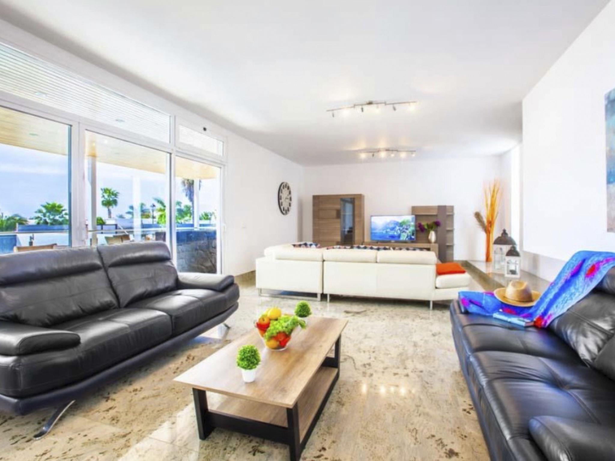 The exterior of Capri is equally impressive, offering private terraces and a solarium ideal for enjoying Lanzarote's privileged climate. The exclusive use garden promises moments of tranquillity and relaxation, while the swimming pool invites for refreshing dips in total privacy. For entertainment lovers, a pool table and a ping pong table are available, as well as comfortable sunbeds and a barbecue area for outdoor enjoyment.