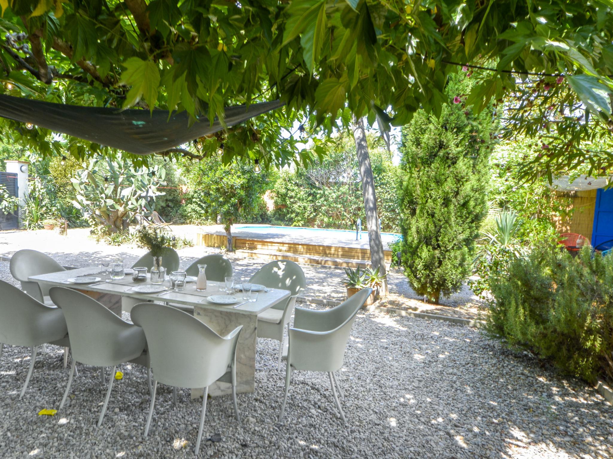 5-room house 178 m2, south-west facing position. Spacious and bright, comfortable and stylish furnishings: large living room with satellite TV and digital TV. Exit to the patio, to the swimming pool, south facing position and west facing position. 1 large room with 1 french bed and shower/WC. Exit to the garden. 1 large room with 1 french bed and shower/WC. Exit to the garden. 1 large room with 1 french bed and shower/WC. Exit to the garden. Large kitchen (5 hot plates, oven, dishwasher, microwave, freezer, electric coffee machine, Capsules for coffee machine (De'Longhi)) with dining table. Sep. WC. Large garden, south facing position and west facing position. Terrace furniture, barbecue, deck chairs, sitting area. View of the swimming pool and the garden. Facilities: washing machine, dryer. Internet (WiFi, free). Parking at the house. Please note: suitable for families. Maximum 2 small pets/ dogs allowed. TV only DE, ES, FR. Pets : 5€ pro day / pro pet. HUTG035651 // Reg. Nr.: ESFCTU000017008000874683000000000000000000HUTG0356510
