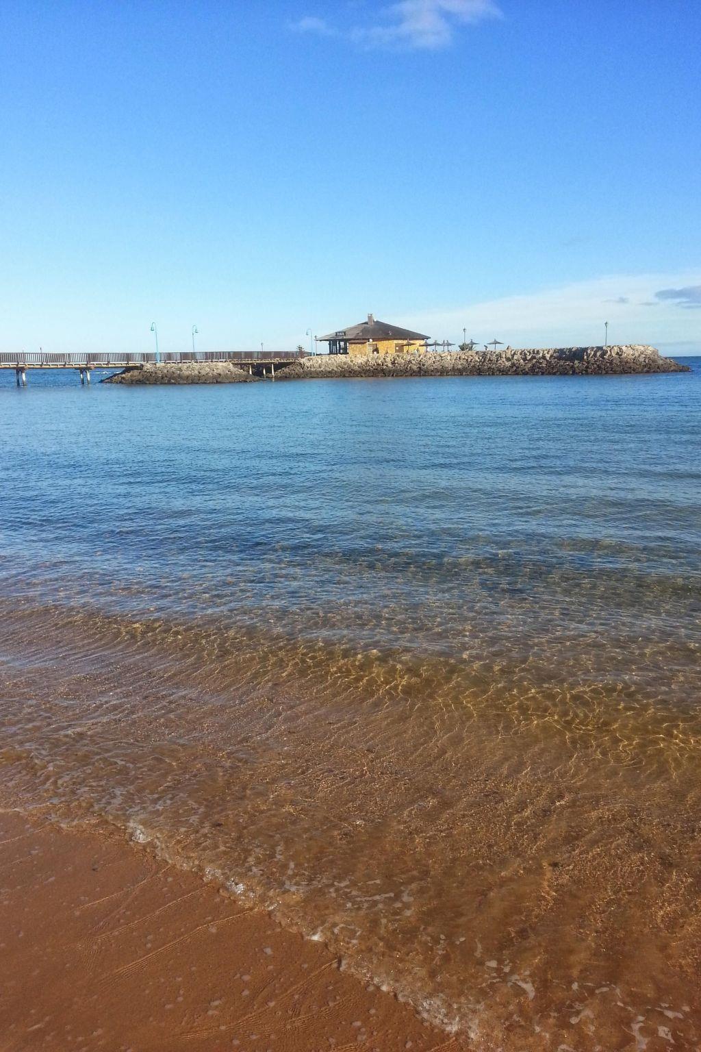 The beach is easily accessible via a paved footpath. There are several sheltered bays here, protected from the waves, making it ideal for children. There are several restaurants close to the beach and a large supermarket.