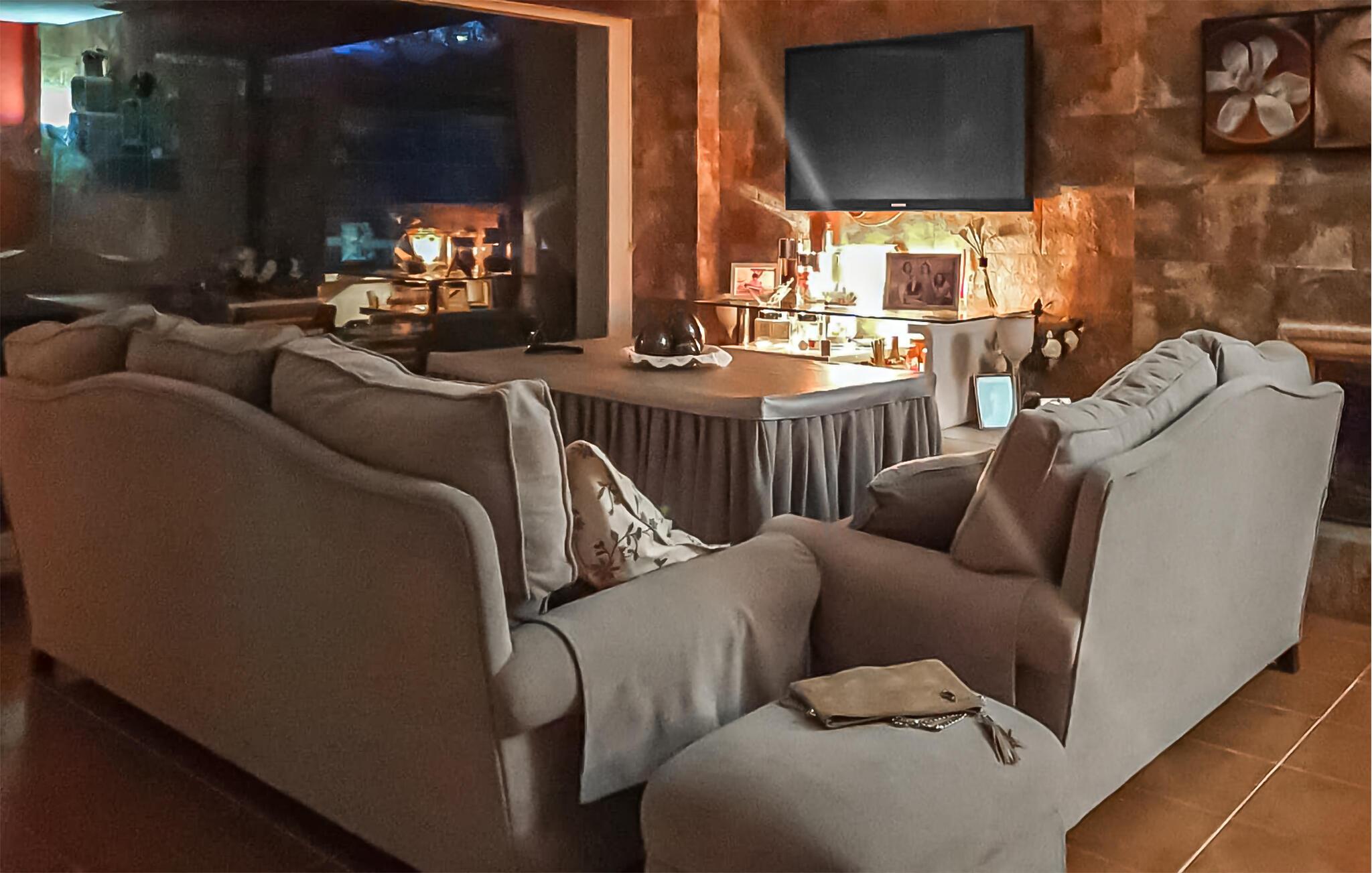 Afhængigt af jeres humør kan I nyde morgenmaden på den åbne eller overdækkede terrasse. snup en frisk dukkert i poolen og nyd lune sommeraftener med et glas vin i det stemningsfuldt oplyste udendørsområde.