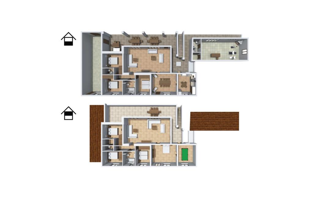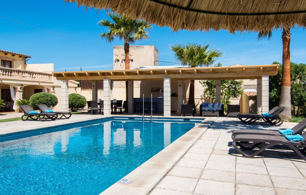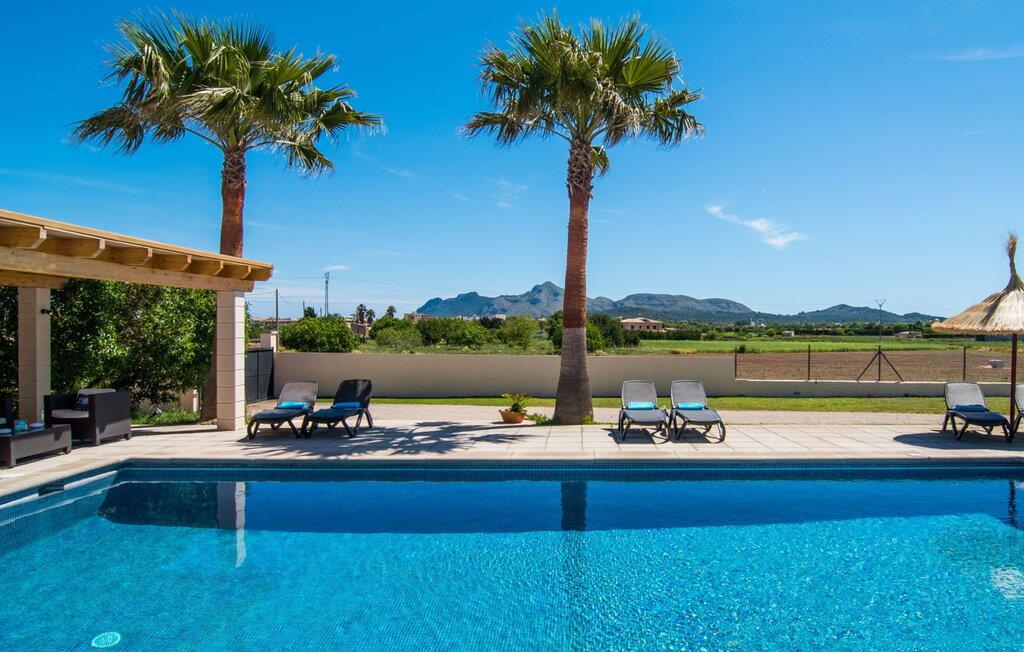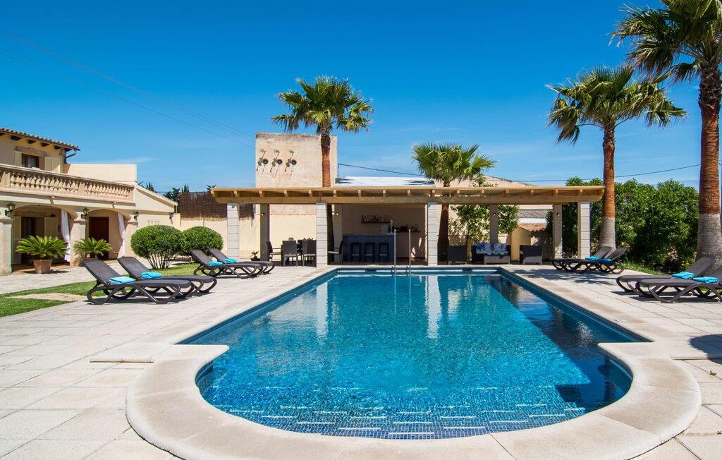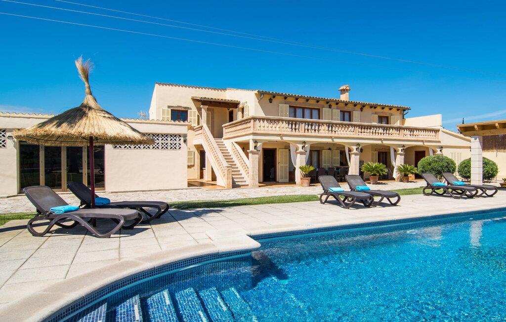 Den to-etagers villa "Catalina", som ligger på en kæmpe grund på 30.000 m², byder os velkommen som sande grundejere. Villaen med udjævnede, gul-orange vægge og en stor altan med terrasser nedenunder passer problemfrit ind i middelhavslandskabet i den nordlige del af Mallorca. De smukke cremefarvede skodder beskytter mod varme om sommeren og mod kulde om vinteren. Et stort højdepunkt er den store pool med en bred trinindgang, som inviterer jer til at slappe af og svømme. Poolområdet har en solterrasse med liggestole og masser af parasoller. Solterrassen grænser op til det overdækkede terrasselandskab. Efter en dag ved poolen kan I grille med jeres venner og nyde et godt glas vin ved det trendy udendørs spisebord i patina-look. Det er vigtigt at tage sig god tid og slappe af – den smarte lounge-facilitet lige ved siden af spisepladsen er perfekt til dette. Indenfor finder vi lyse og rummelige fællesarealer med talrige træskodder og komfortable sofaer i iøjnefaldende trendy farver (gul og grøn), som inviterer til hyggelige timer foran fjernsynet eller til at læse en god bog. Tilbehør til hjemmet som moderne træskulpturer understreger denne villas moderne karakter. Det moderne trækøkken er ganske enkelt rummeligt med smarte kromkontraster (komfur og keramisk kogeplade, opvaskemaskine, stort køle-fryseskab, brødrister, kaffemaskine og meget mere). Det runde glas spisebord passer problemfrit. I alt syv soveværelser kan rumme op til 12 personer, hvilket gør det til et fantastisk feriehus for to til tre familier eller en stor gruppe af rejsevenner. Soveværelserne er indrettet i harmoniske farver; Her finder I orange-brune jordfarver, bløde lilla og blomstermønstre. Gæsterne har adgang til adskillige moderne badeværelser (med bruser og/eller badekar), en vigtig komfort under jeres ferieophold. Placeringen af villaen er ikke isoleret, men er i udkanten af byen Alcúdia. Herfra kan I hurtigt og nemt nå den historiske gamle bydel i Alcúdia og dens fascinerende bymure - nogle fra middelalderen og renæssancen - inviterer jer til at udforske, slentre og nyde. I Alcúdia er der marked tirsdag og søndag, hvor forskellige gader i den gamle bydel er lukket for trafik, og der tilbydes et stort udvalg af forskelligartede varer. Hvis I kan lide at være aktiv på ferie, så besøg de smukke strande ved de lokale bugter, hvor I kan øve alle tænkelige vandaktiviteter. Alcúdia ligger i et til dels meget bjergrigt område og er derfor ideel til vandreture og mountainbiking. I vest begynder de flade sletter, som er ideelle for cyklister. De subtilt farvede og alligevel karakteristiske møbler inviterer jer til at tilbringe en afslappende og glad ferie fuld af muligheder i den storslåede villa "Catalina". Den enorme villa "Catalina" med dens overdimensionerede pool, der strækker sig langs forsiden af huset med en enorm omgivende solterrasse, ligger nær den meget smukke gamle bydel i Alcúdia på det nordlige Mallorca. Det er beliggende på en stor 30.000 m² stor grund, hvorfra I hurtigt og nemt kan nå selve byen Alcúdia (til jeres daglige indkøb, besøg i butikker eller slentre) samt de nærliggende sandstrande.