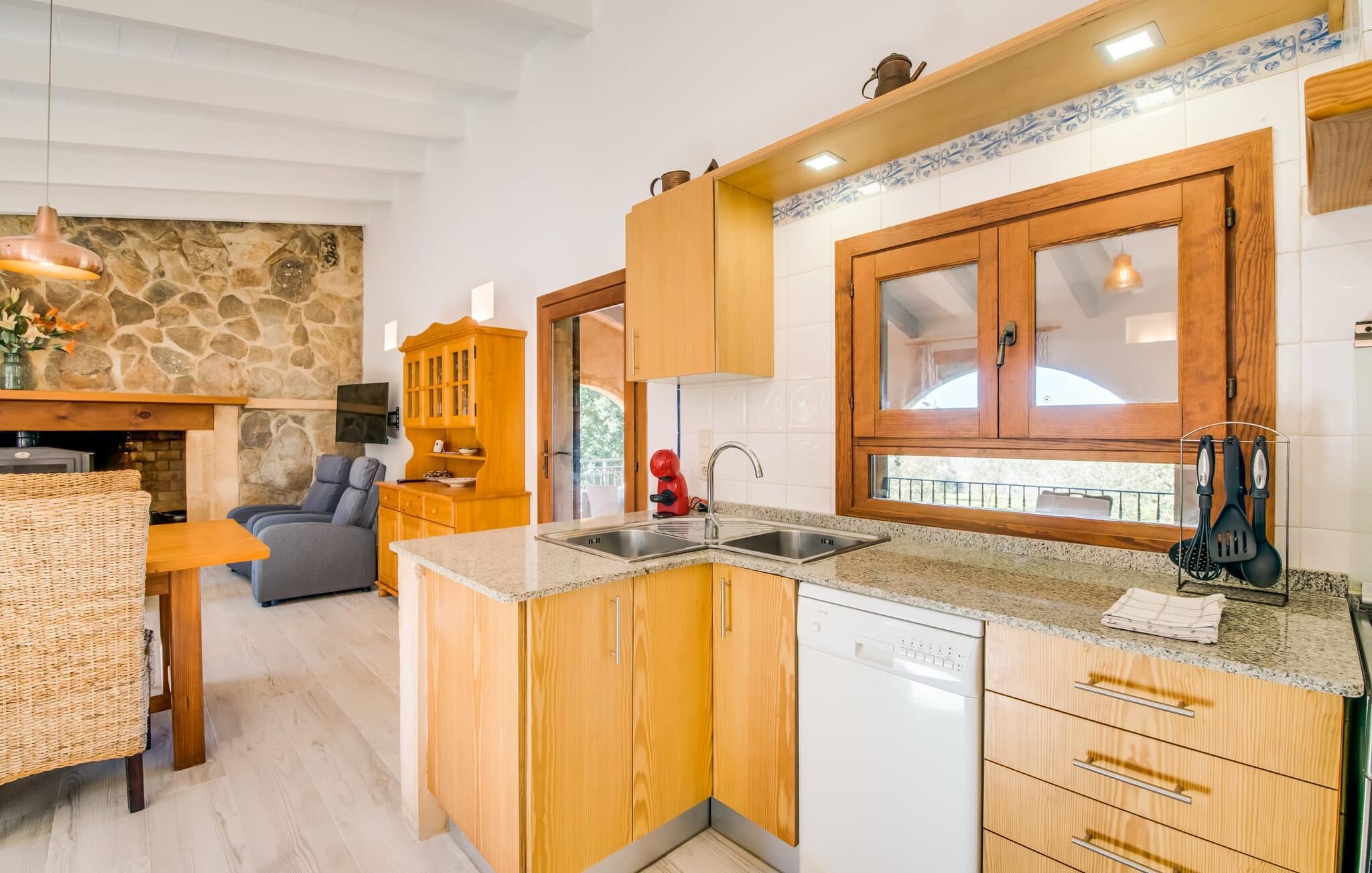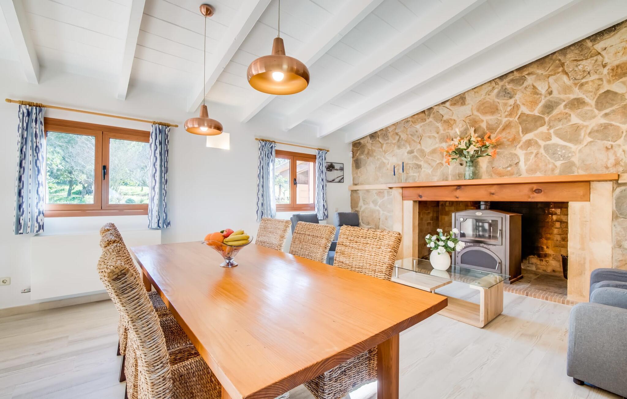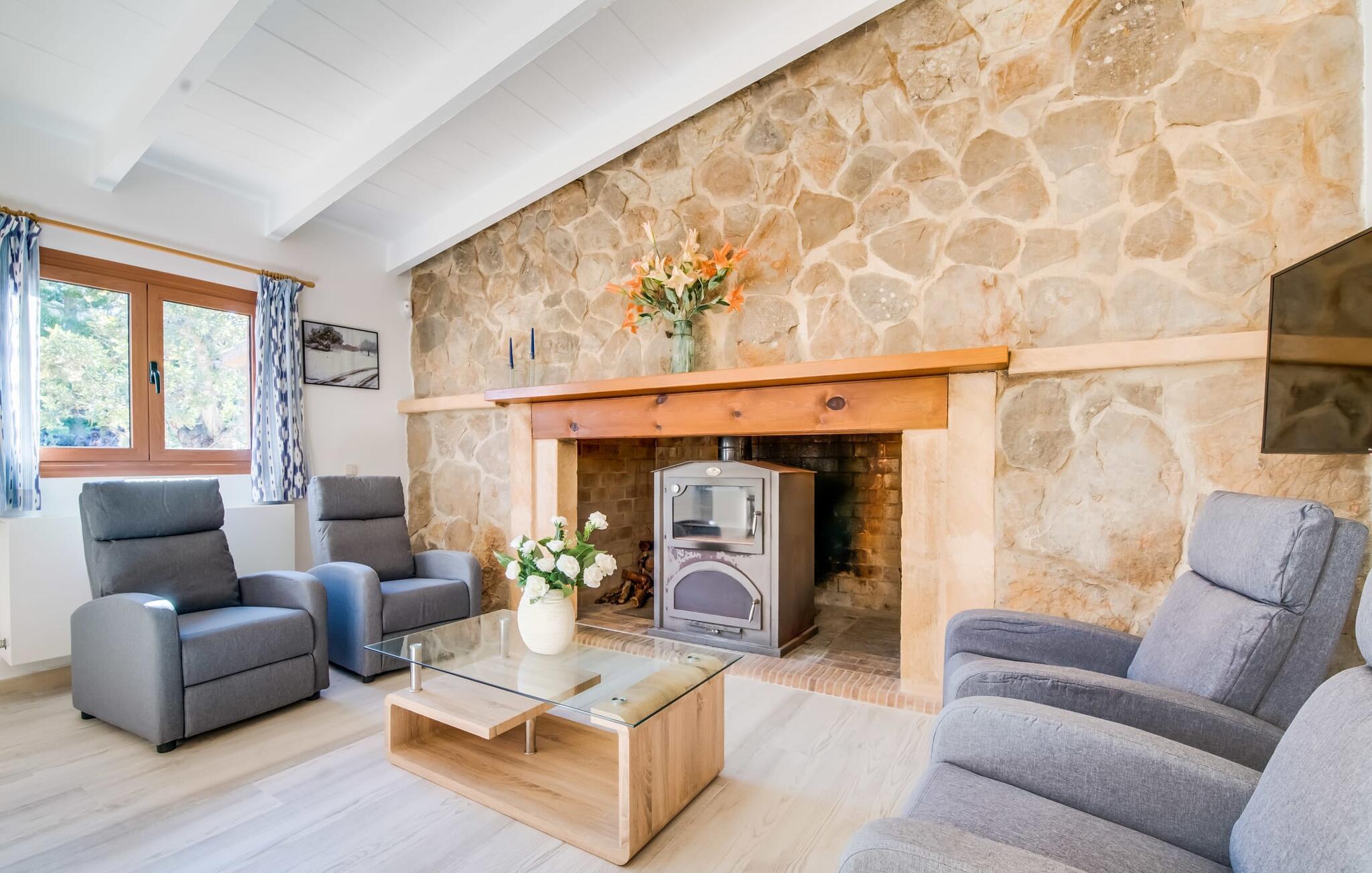 Villaen "Cavall de Mar" har en smuk, rolig beliggenhed ved foden af Muntanya de Calicant, en del af Serra de Llevant naturreservat. Mandel-, johannesbrød- og figentræer vokser i landskabet. Fåreflokke er også en del af billedet, og nogle gange kan man høre de små klokker i det fjerne. Her er ingen direkte naboer. Villaen er beliggende på en ensporet vej med lidt trafik. Forsiden er omgivet af et hegn, mens bagsiden byder på et åbent landskab, så I straks kan nyde panoramaet. Navnet på villaen kommer fra "søhest" ("Cavall de Mar"), som er afbildet som en mosaik på bunden af poolen. På sydsiden af villaen er der en rummelig gårdhave, der er ideel til leg. En stige fører jer til den smukke pool. Det moderne rengøringssystem undgår brugen af klor i poolvandet, hvilket gør det naturligt mere hygiejnisk og sikrere. Der er en udendørs bruser på husvæggen. I kan også give den en hurtig skylning, hvis I mærker varmen. Komfortable liggestole inviterer jer til at slappe af og solbade. Komfortable stole og et spisebord inviterer jer til en smuk, rummelig terrasse, hvor I kan slappe af og nyde den betagende udsigt over landskabet. På dette sted kan I byde dagen velkommen i en værdig atmosfære og afslutte aftenen med flydende drinks på en poetisk tone. Hyggelige grillaftener med lækre regionale specialiteter er et must på dette sted. Hvis I ønsker det, kan I også finde det originale “udekøkken”, da her er en fantastisk kulgrill. Huset ligger i stueetagen og byder på to soveværelser med dobbeltsenge, to badeværelser, en kombineret stue/spisestue med åbent køkken og et vaskerum. Isolerglasvinduer og foldeskodder beskytter mod middelhavssolen. Stuen/spisestuen er yderst rustik og indbydende med sin naturstensvæg. De komfortable lænestole og sofaer inviterer jer til at slappe af, måske med en god bog. På kølige dage kan I endda bruge pejsen til at varme op og nyde det behagelige lys fra bålet. Satellit-tv'et er også bekvemt placeret her, så intet står i vejen for hyggelige tv-aftener. Det massive spisebord i nærheden inviterer jer til at slappe af og spise indendørs. Køkkenet ligger kun få skridt væk, så vejen til at stille op og rydde bordet er kort. Køkkenet er løst omsluttet af en elegant indmuret tæller og er fuldt udstyret. Her finder I køleskab med fryser, komfur, ovn, vask og opvaskemaskine. Soveværelserne byder gæster velkommen i en hjemlig atmosfære og tilbyder de bedste betingelser for en dyb og afslappende søvn. Badeværelserne er moderne og har håndklæderadiatorer. I behøver ikke at pakke en hårtørrer: en er tilgængelig i huset, og I kan bruge den frit. Det højeste punkt i bjergkæden Serra de Llevant er 560 meter over havets overflade. En sti fører op til det 450 meter høje Muntanya de Calicant: Efter denne stigning vil I blive belønnet med en fantastisk udsigt over Mallorca. Når sigtbarheden er god, kan I endda se så langt som til Menorca. Alcúdia-bugten ligger mindre end 20 minutter fra villaen, mens strandene på østkysten ligger lidt længere væk. Hver torsdag morgen kan I opleve det ugentlige marked i Sant Llorenc. Den ekstremt rolige og elegant indrettede villa "Cavall de Mar" ligger på en rummelig ejendom mellem Artà og Sant Llorenc, på den nordøstlige side af øen. Sant Llorenc ligger omkring 8 kilometer væk, Artà 9 kilometer og Manacor omkring 12 kilometer. Køreturen til Palma de Mallorca Lufthavn tager cirka 50 minutter.