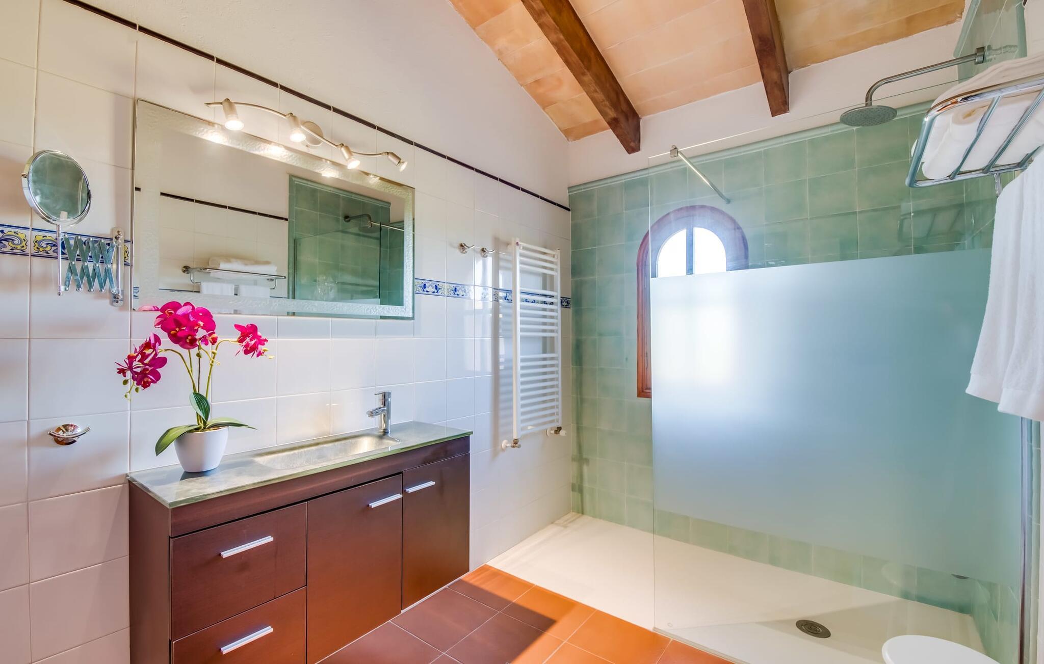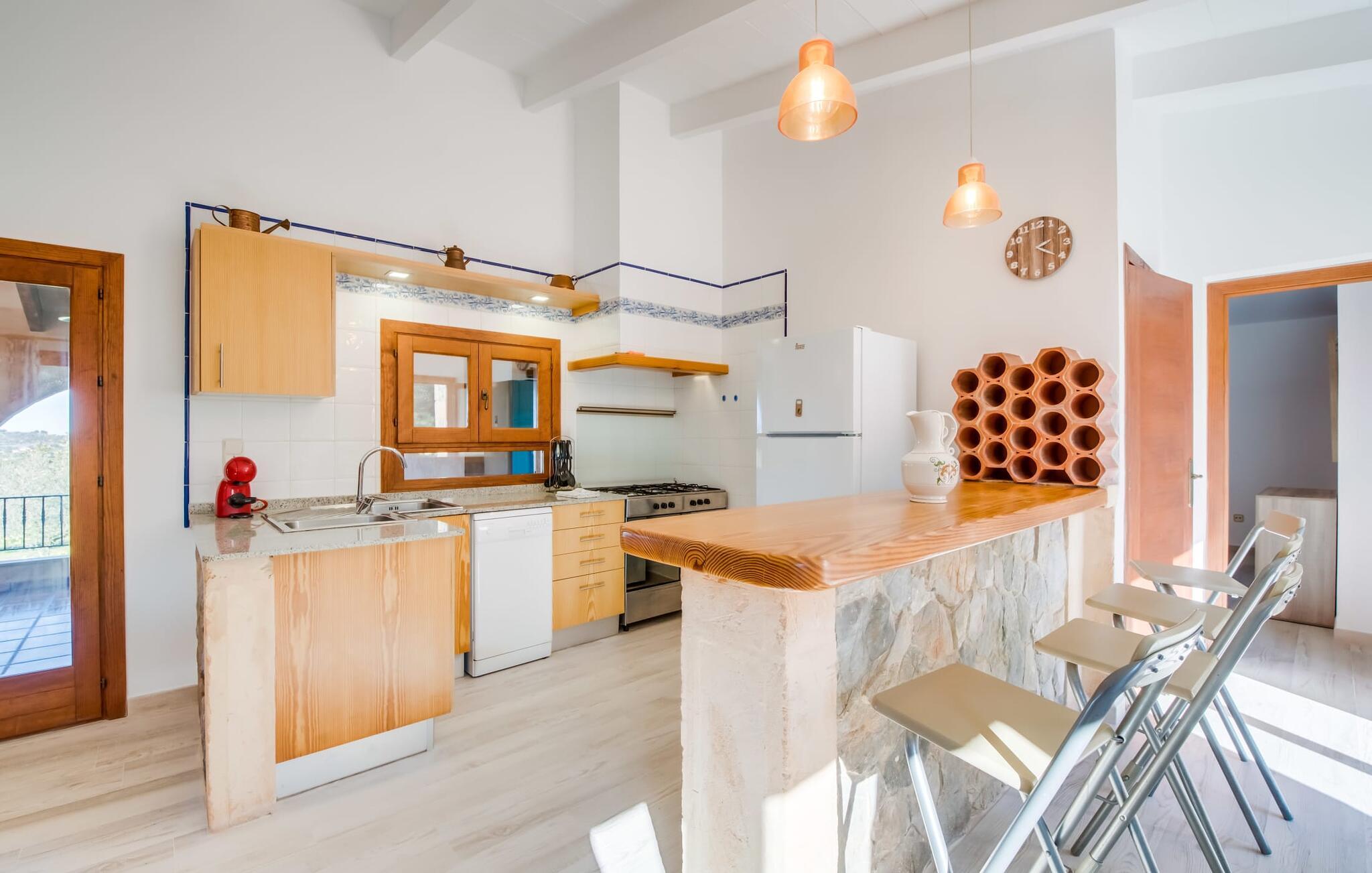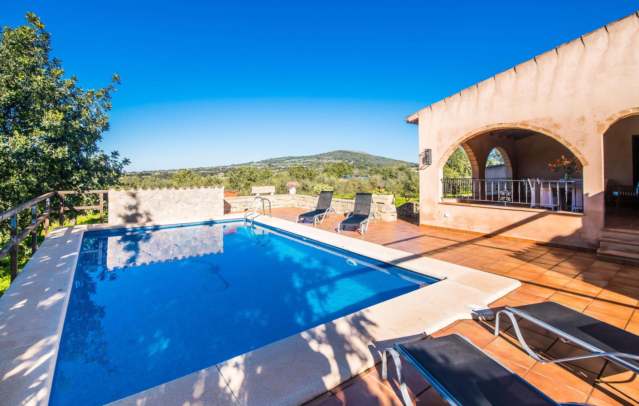 Villaen "Cavall de Mar" har en smuk, rolig beliggenhed ved foden af Muntanya de Calicant, en del af Serra de Llevant naturreservat. Mandel-, johannesbrød- og figentræer vokser i landskabet. Fåreflokke er også en del af billedet, og nogle gange kan man høre de små klokker i det fjerne. Her er ingen direkte naboer. Villaen er beliggende på en ensporet vej med lidt trafik. Forsiden er omgivet af et hegn, mens bagsiden byder på et åbent landskab, så I straks kan nyde panoramaet. Navnet på villaen kommer fra "søhest" ("Cavall de Mar"), som er afbildet som en mosaik på bunden af poolen. På sydsiden af villaen er der en rummelig gårdhave, der er ideel til leg. En stige fører jer til den smukke pool. Det moderne rengøringssystem undgår brugen af klor i poolvandet, hvilket gør det naturligt mere hygiejnisk og sikrere. Der er en udendørs bruser på husvæggen. I kan også give den en hurtig skylning, hvis I mærker varmen. Komfortable liggestole inviterer jer til at slappe af og solbade. Komfortable stole og et spisebord inviterer jer til en smuk, rummelig terrasse, hvor I kan slappe af og nyde den betagende udsigt over landskabet. På dette sted kan I byde dagen velkommen i en værdig atmosfære og afslutte aftenen med flydende drinks på en poetisk tone. Hyggelige grillaftener med lækre regionale specialiteter er et must på dette sted. Hvis I ønsker det, kan I også finde det originale “udekøkken”, da her er en fantastisk kulgrill. Huset ligger i stueetagen og byder på to soveværelser med dobbeltsenge, to badeværelser, en kombineret stue/spisestue med åbent køkken og et vaskerum. Isolerglasvinduer og foldeskodder beskytter mod middelhavssolen. Stuen/spisestuen er yderst rustik og indbydende med sin naturstensvæg. De komfortable lænestole og sofaer inviterer jer til at slappe af, måske med en god bog. På kølige dage kan I endda bruge pejsen til at varme op og nyde det behagelige lys fra bålet. Satellit-tv'et er også bekvemt placeret her, så intet står i vejen for hyggelige tv-aftener. Det massive spisebord i nærheden inviterer jer til at slappe af og spise indendørs. Køkkenet ligger kun få skridt væk, så vejen til at stille op og rydde bordet er kort. Køkkenet er løst omsluttet af en elegant indmuret tæller og er fuldt udstyret. Her finder I køleskab med fryser, komfur, ovn, vask og opvaskemaskine. Soveværelserne byder gæster velkommen i en hjemlig atmosfære og tilbyder de bedste betingelser for en dyb og afslappende søvn. Badeværelserne er moderne og har håndklæderadiatorer. I behøver ikke at pakke en hårtørrer: en er tilgængelig i huset, og I kan bruge den frit. Det højeste punkt i bjergkæden Serra de Llevant er 560 meter over havets overflade. En sti fører op til det 450 meter høje Muntanya de Calicant: Efter denne stigning vil I blive belønnet med en fantastisk udsigt over Mallorca. Når sigtbarheden er god, kan I endda se så langt som til Menorca. Alcúdia-bugten ligger mindre end 20 minutter fra villaen, mens strandene på østkysten ligger lidt længere væk. Hver torsdag morgen kan I opleve det ugentlige marked i Sant Llorenc. Den ekstremt rolige og elegant indrettede villa "Cavall de Mar" ligger på en rummelig ejendom mellem Artà og Sant Llorenc, på den nordøstlige side af øen. Sant Llorenc ligger omkring 8 kilometer væk, Artà 9 kilometer og Manacor omkring 12 kilometer. Køreturen til Palma de Mallorca Lufthavn tager cirka 50 minutter.