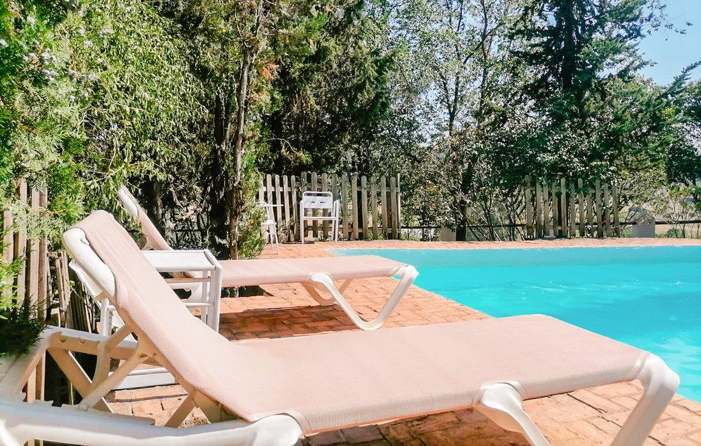 Sammen med jeres storfamilie eller flere familier, I er venner med, kan I føle jer hjemme i dette hyggelige sommerhus. Det er perfektt udstyret til en stor rejsegruppe, der værdsætter privatliv, men også store rum. Soveværelserne har eget badeværelse, og den indbydende stue med køkken findes i annekset. De hyggelige møbler og udstyr inviterer jer til at blive hængende, slappe af sammen eller trække jer tilbage med en bog. Flere terrasser tilbyder jer det perfekte sted at få jeres morgenkaffe, slappe af eller dyrke jeres yogaøvelser. En privat pool tilbyder jer den bedste løsning til at slappe af og få en frisk dukkert efter lange vandreture.