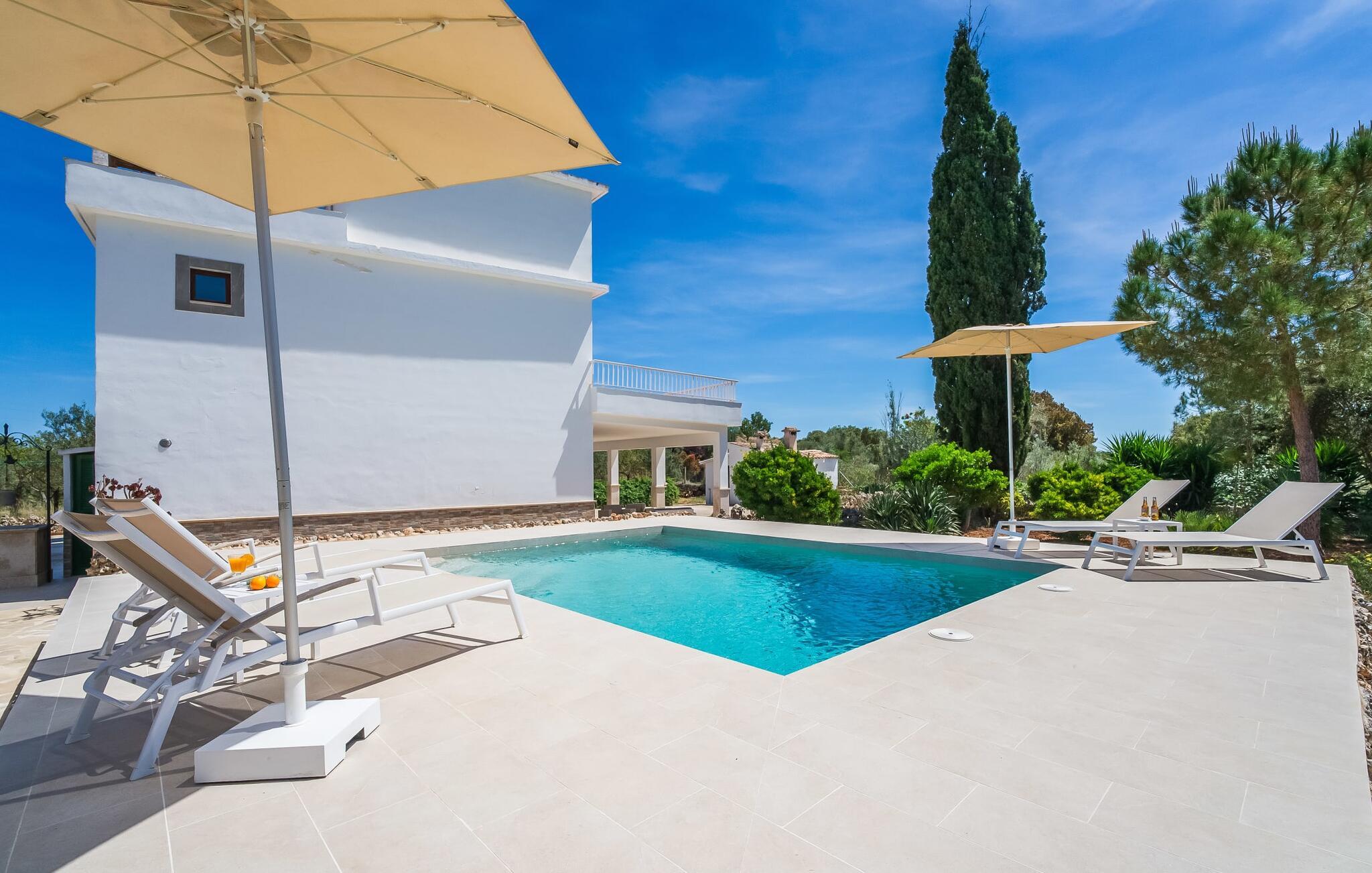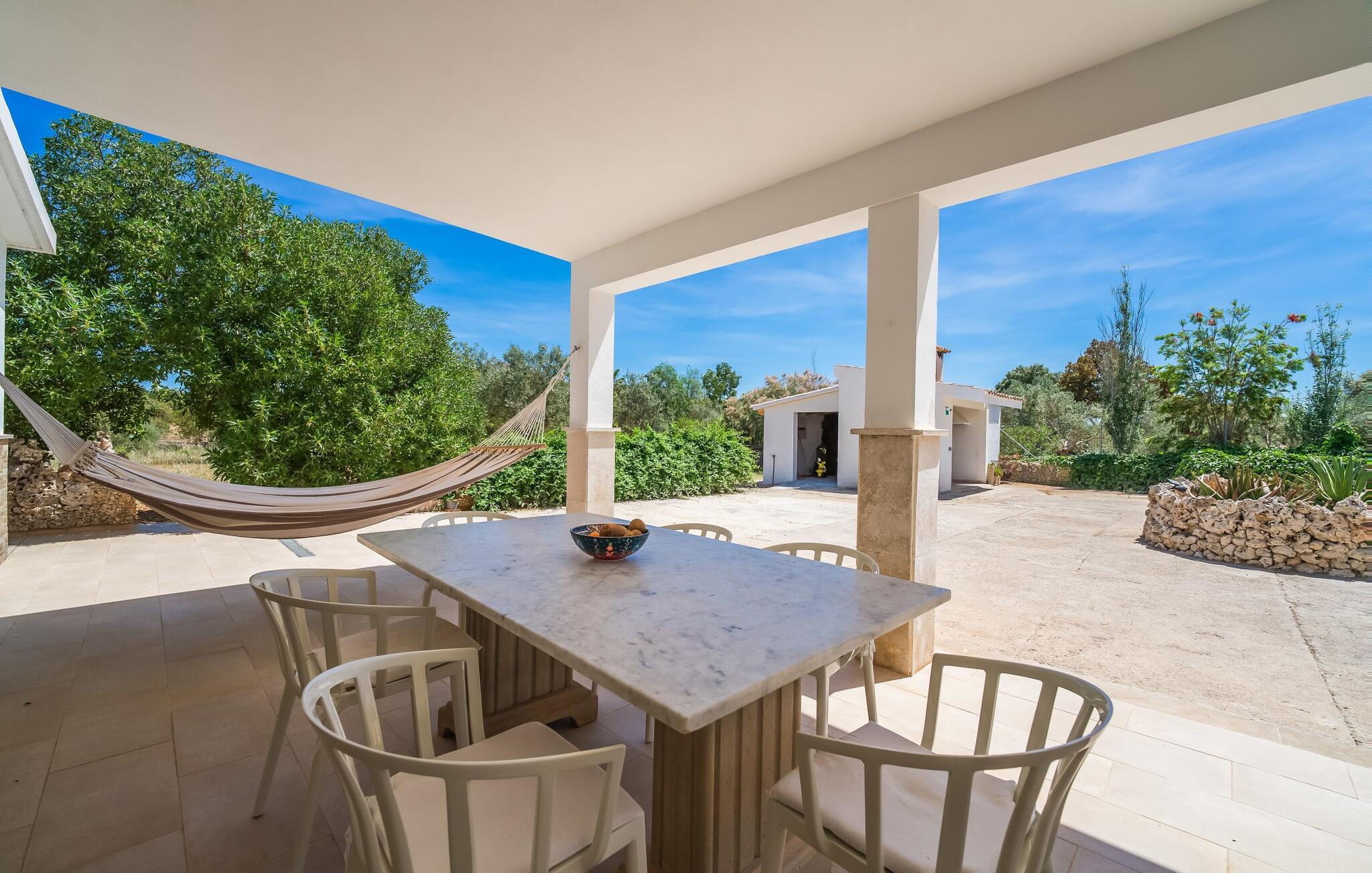 Leder I efter et idyllisk tilflugtssted, hvor I kan slappe af og nyde det? Under mottoet "Cel i Sol" tilbyder dette sted masser af plads og tid til det! Spred jer ud på den 7.000 m² store grund og slap af uforstyrret – for eksempel i den hyggelige lounge eller ved spisebordet på den skyggefulde, overdækkede terrasse lige ved siden af ??huset. Måske bliver I tiltrukket af poolområdet på en af ??de behagelige liggestole eller til poolkanten, hvor I kan dingle med fødderne i det kølige vand. Måske galer hanen i nabolaget og tilføjer en ekstra landlig atmosfære om morgenen. Lydene fra gården vil også understrege den mallorcanske idyl. Et lille højdepunkt ved denne finca med sin smukke indkørsel er balkonen, hvorfra udsigten kan feje endnu mere sublimt ud i det fjerne – et perfekt sted til solnedgang!