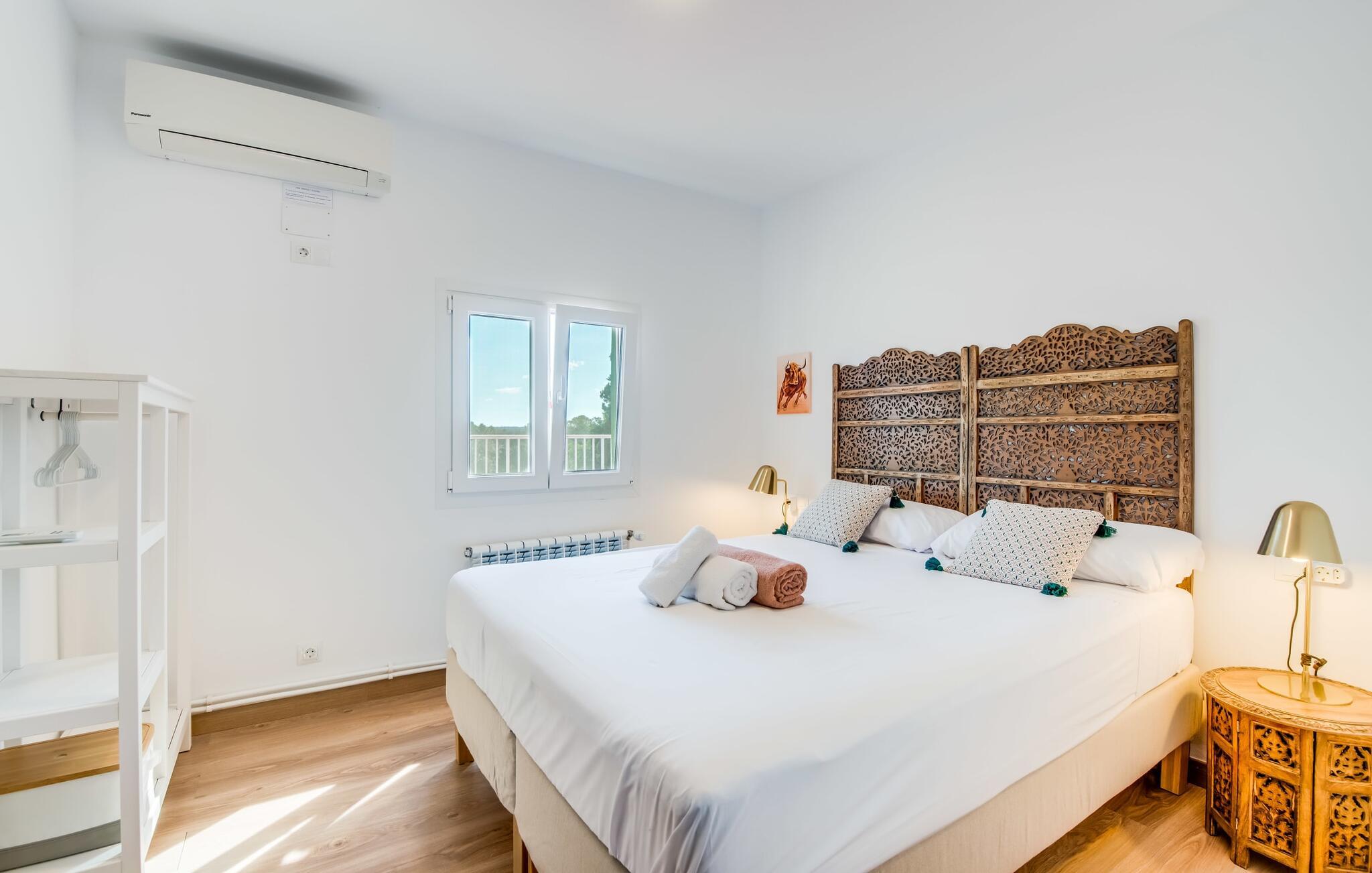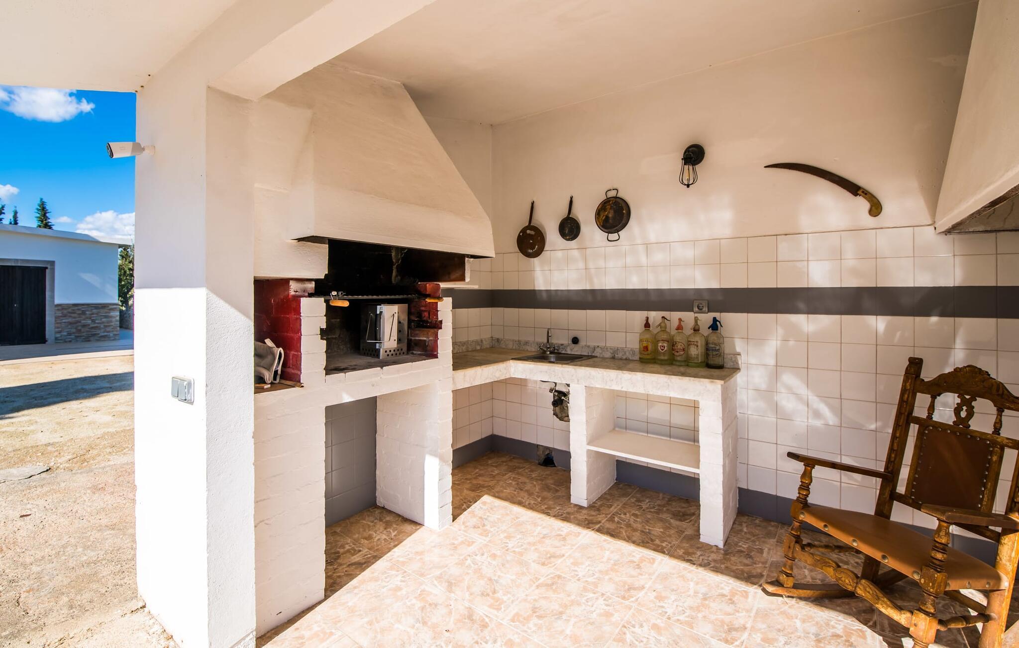 Når I træder ind i bondegården, vil I måske blive betaget af et par ting. De fine detaljer i form af udvalgte møbler og dekorationer lægger op til hyggestunder og se omgivelserne, hvilket giver værelserne en virkelig individuel og indbydende stilfuld atmosfære, hvor I straks føler jer hjemme. Det virker som om, at hvert eneste møbel er omhyggeligt udvalgt og placeret i harmoni med resten af ??interiøret. Gennem den brede indgangsdør træder man straks ind i den rummelige spisestue, hvor I også kan spise sammen indendørs – og når det bliver lidt køligere, fremmaner pejsen ekstra varme og hygge. På den ene side har man adgang til køkkenet, der er fuldt udstyret med alt, hvad man behøver til uafhængige dage med selvforplejning. På den anden side, rundt om hjørnet, er der en sofa – til at se tv, læse en bog eller bare have en hyggelig snak. Der er også et lille badeværelse på denne etage. Ovenpå finder de, der søger fred og ro, tre yderst elegante dobbeltværelser. To badeværelser med naturskønt lys, hvoraf det ene er ensuite, afrunder komforten i dette feriehus på Mallorca, som vi anbefaler ikke kun for dets personlige og behagelige charme. Beliggende i trekanten mellem Inca, Llubí og Costitx, i en vidunderlig rolig beliggenhed, ligger bondegården "Cel i Sol". Dets mallorcanske navn refererer til to væsentlige kvaliteter, I vil opleve i dette hus: sol og himmel. Hvis I nogensinde skulle få lyst til at forlade jeres feriehus for at shoppe, har I to nabolandsbyer at vælge imellem. Den nærmeste strand ligger i den kilometerlange Alcúdia-bugt. Da landevejen fører til bondegården, anbefaler vi en lejebil.