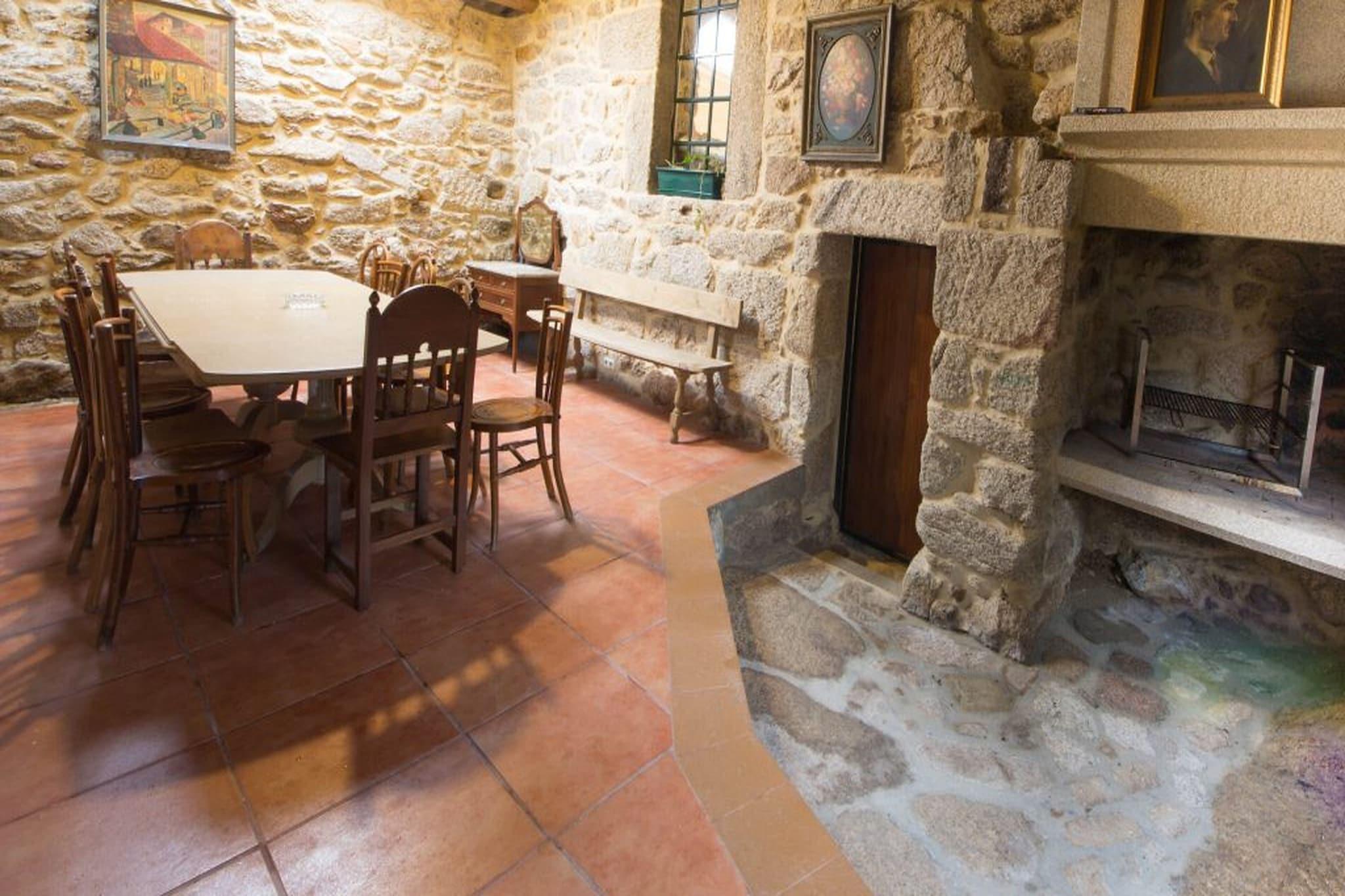 Overgiv dig til den luksus, som denne vidtstrakte villa i Cerdedo i det grønne Spanien tilbyder, og lev det søde liv! Forkæl dig selv med den private swimmingpool, den private terrasse, haven, kulgrillen og alt andet i dette storslåede hus, der er over 200 år gammelt og indrettet med vintage møbler og pejse i alle stuerne, med stor omhu og kærlighed. Dette landlige hjem er perfekt til store familier og grupper. Fra huset er der flere vandreruter, såsom broerne over floden Lérez, den forladte landsby Vichocuntin, et besøg i Serrapia-kapellet eller opdagelsen af Pedre-petroglyferne. Huset ligger kun 17 minutter i bil fra Pontevedra by og 25 minutter fra de nærmeste kyststrande. Restauranter og supermarkeder ligger heller ikke langt væk. Der er 2 spiseborde plus et ekstra opholdsområde. Der er parkeringsmuligheder. Der er et vaskerum og 2 fritidsrum med selskabslege, billard og bordfodbold. Vigo Lufthavn ligger 55 km derfra.