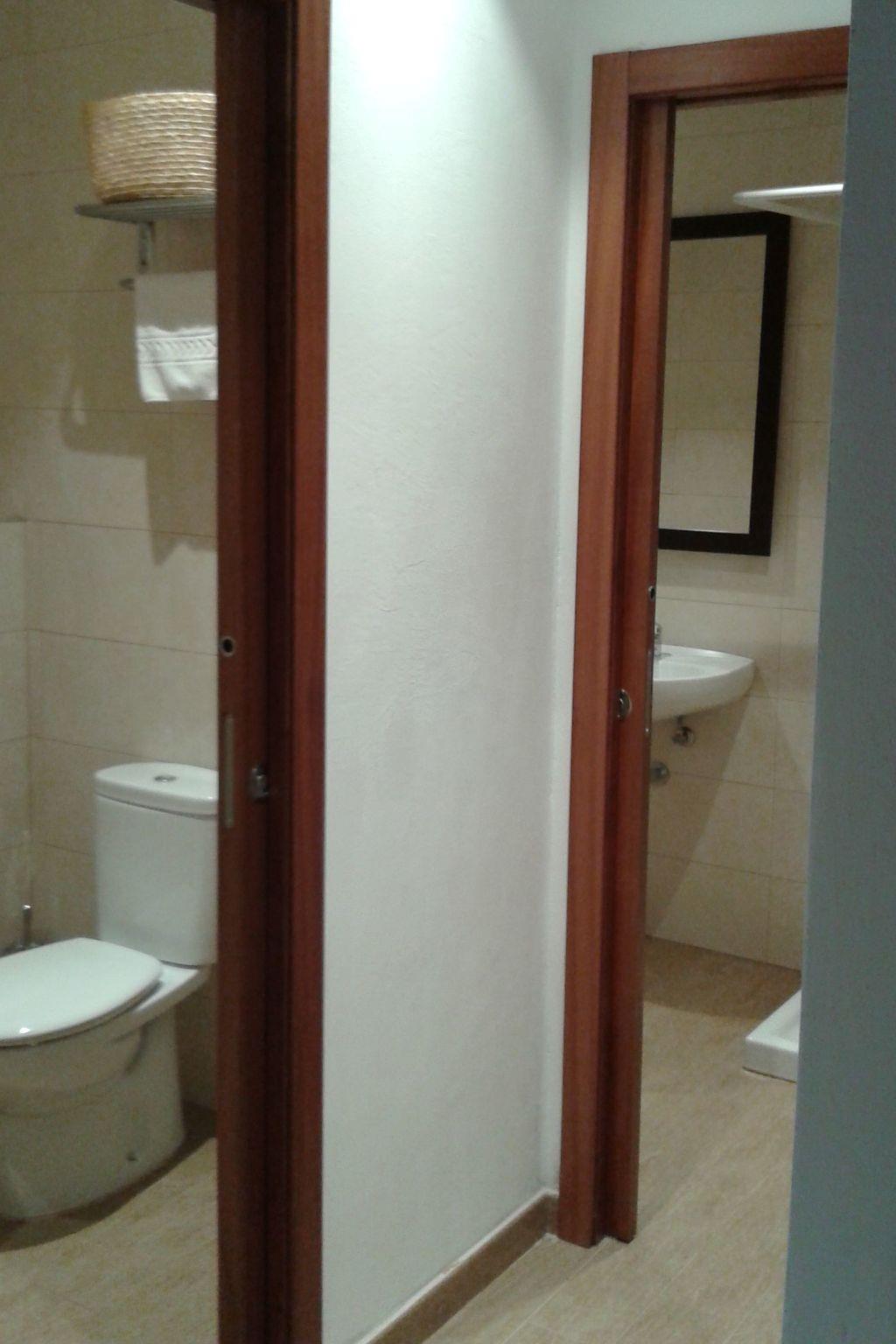 Dispensers with soap and gel in bathrooms, and dishwasher dispenser in kitchen.