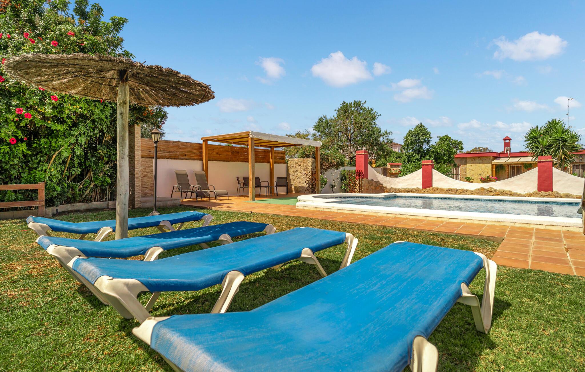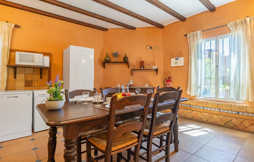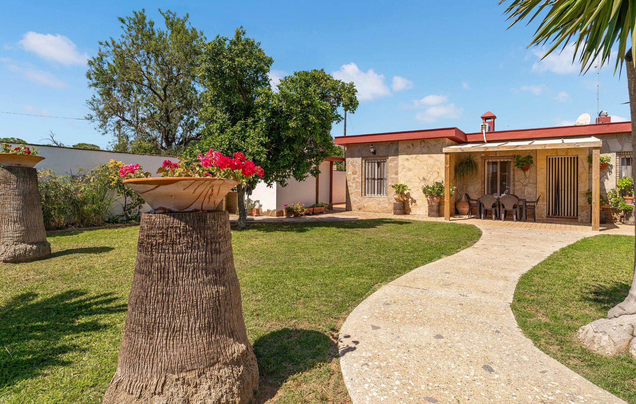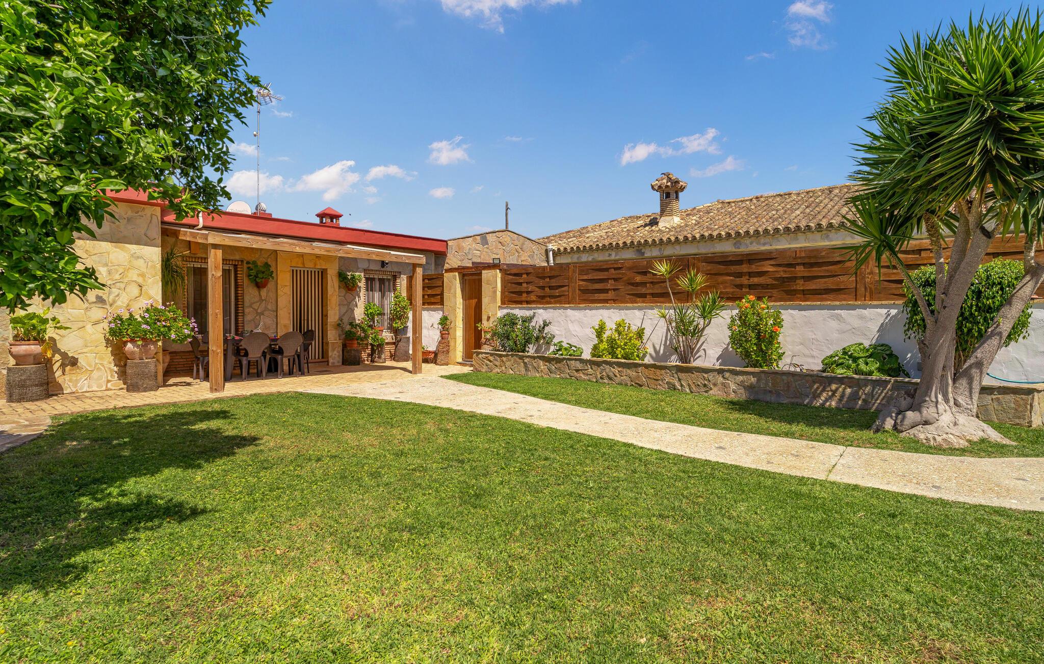 Med sin klassiske andalusiske charme inviterer dette smukke hus jer til et afslappende ophold i Costa de la Luz' bagland. I vil føle jer hjemme i de komfortabelt møblerede værelser, hvor middelhavsfarver og karakteristiske træbjælker skaber en varm atmosfære. Slap af om aftenen på bløde sofaer i stuen, skab en særlig hyggelig atmosfære med en knitrende ild i pejsen og nyd tiden sammen.