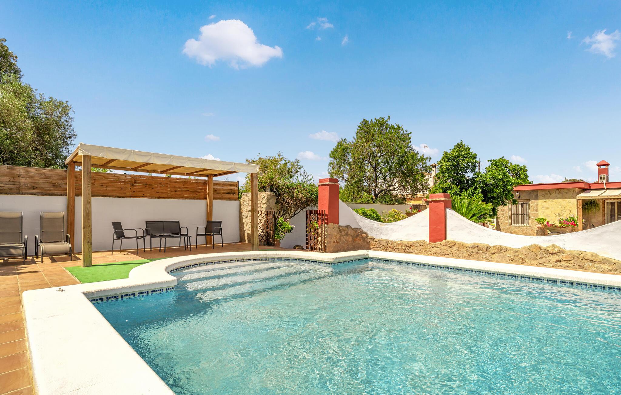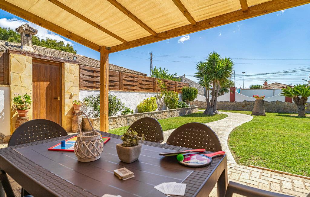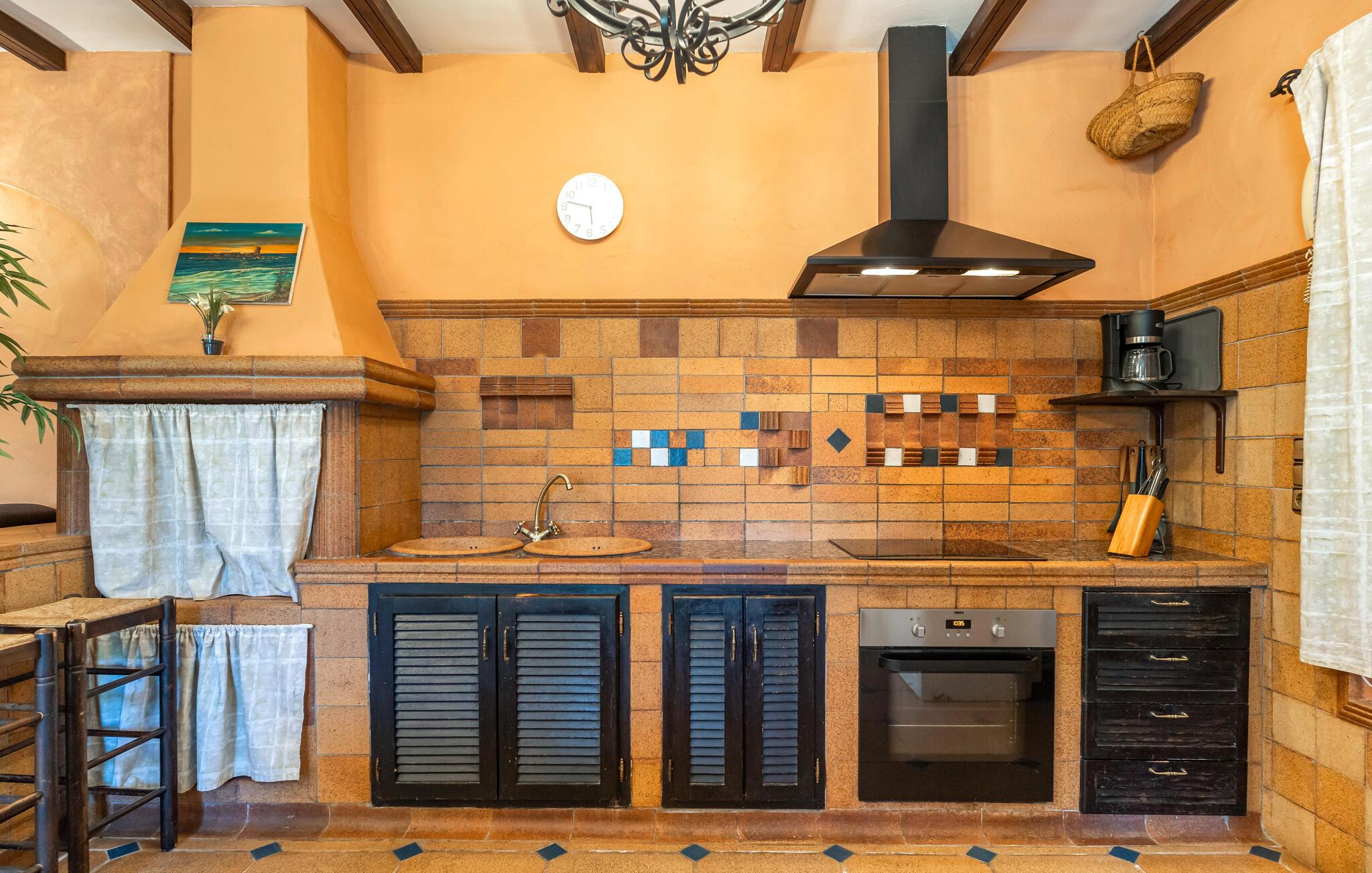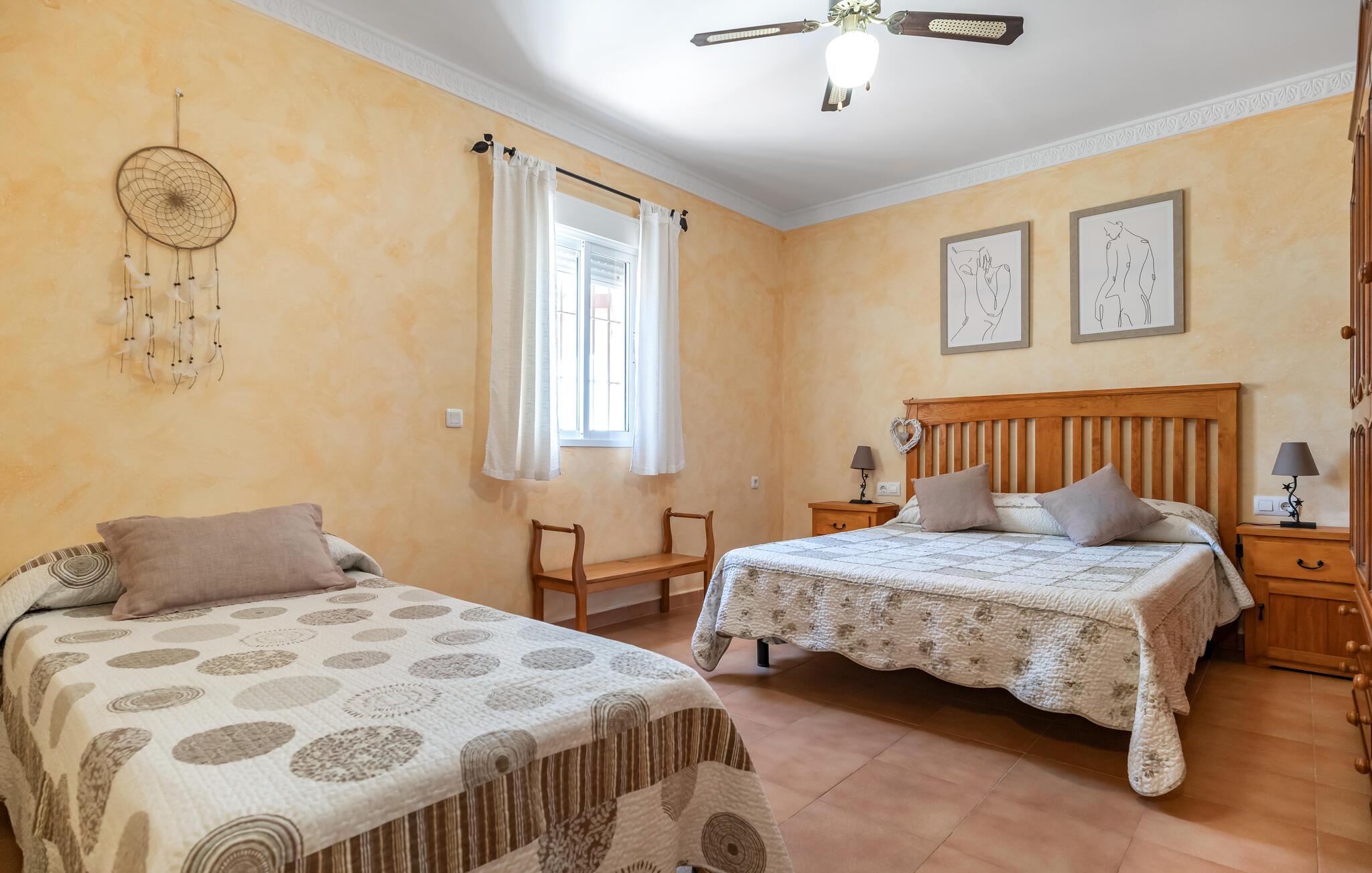 Med sin klassiske andalusiske charme inviterer dette smukke hus jer til et afslappende ophold i Costa de la Luz' bagland. I vil føle jer hjemme i de komfortabelt møblerede værelser, hvor middelhavsfarver og karakteristiske træbjælker skaber en varm atmosfære. Slap af om aftenen på bløde sofaer i stuen, skab en særlig hyggelig atmosfære med en knitrende ild i pejsen og nyd tiden sammen.