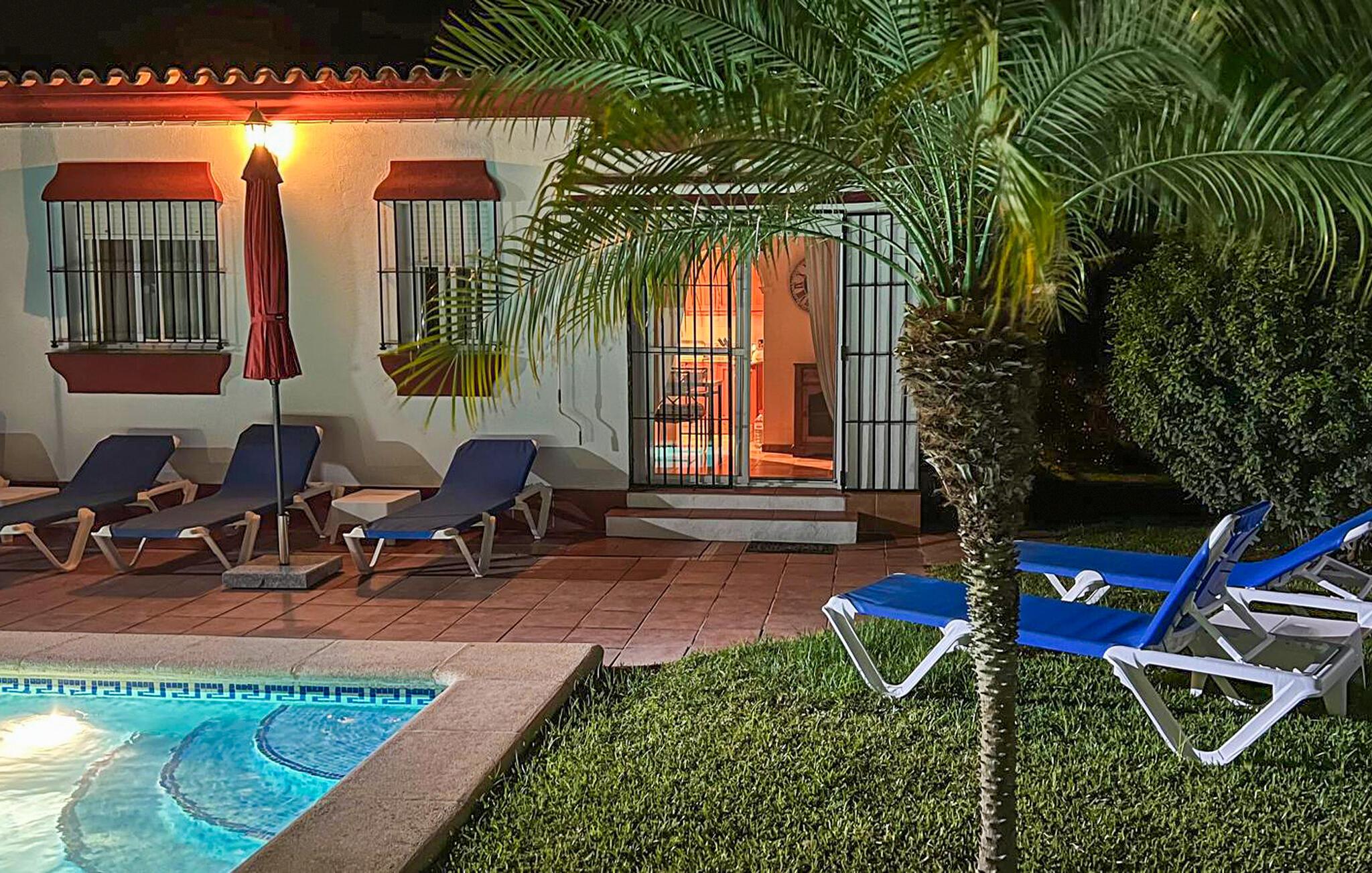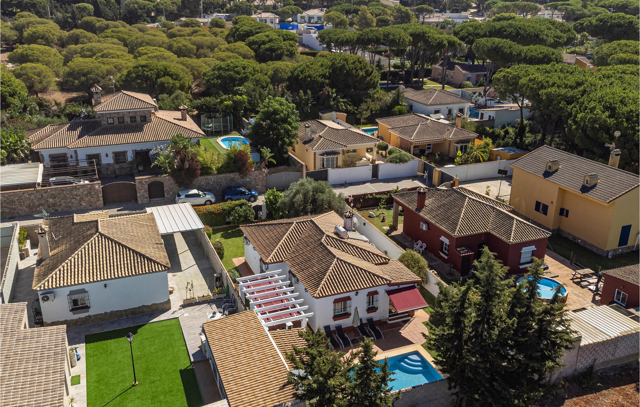 Med klassisk andalusisk charme inviterer dette smukke hus jer til et afslappende ophold i Costa de la Luz' bagland. I vil straks føle jer hjemme i de lyse, komfortabelt møblerede værelser, hvor mange træelementer giver en varm følelse. Slap af om aftenen på de bløde sofaer i stuen, skab en særlig hyggelig atmosfære med en pejs og nyd tiden sammen.