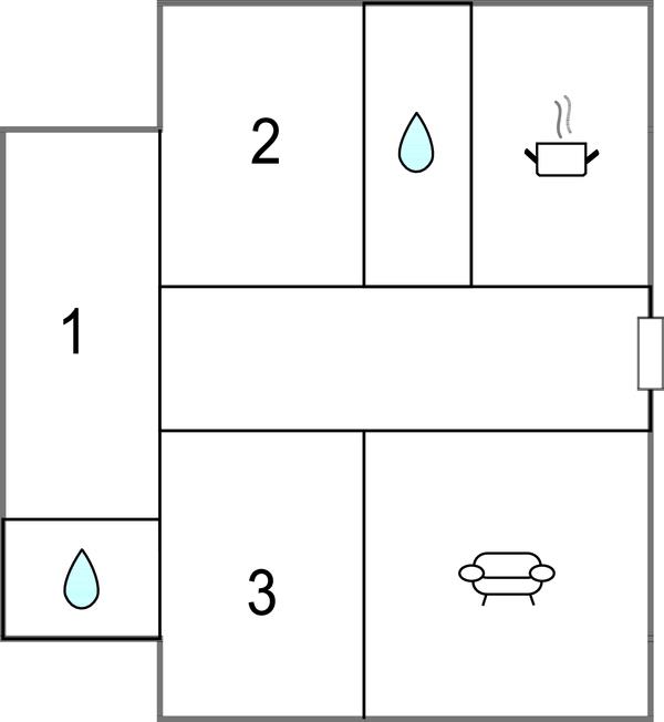 Badeværelse 4m2 (nr. 1) - WC. Varmt og koldt vand. Bruser