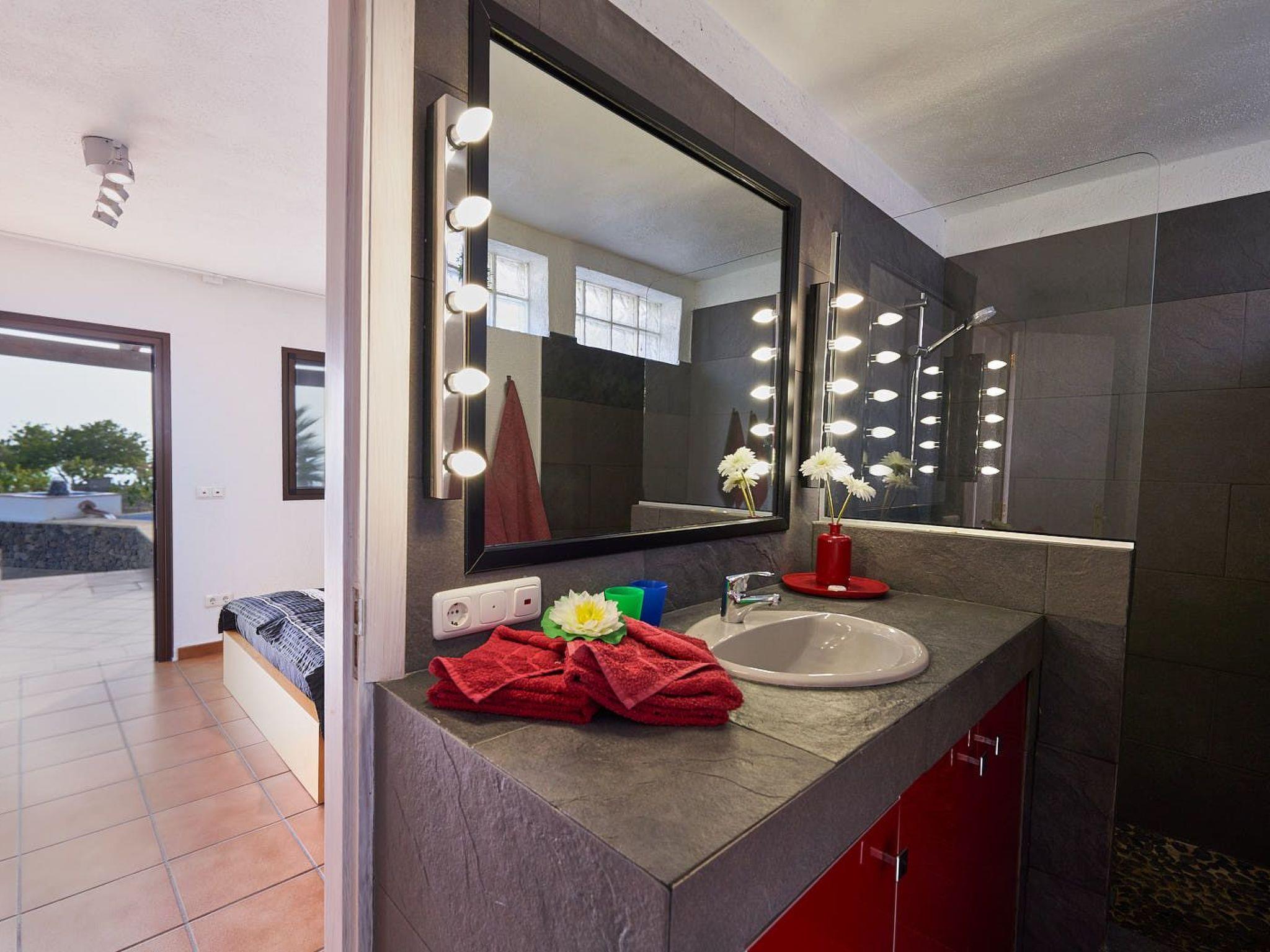 In the detached holiday home Casa Hélena you will find - apart from the magnificent view of the sea and the neighbouring islands of La Gomera and La Palma - a fully equipped kitchen with fridge/freezer, gas hob, microwave, toaster and coffee machine. Right next to the kitchenette is the dining table with a view of the garden and the sea. In the living area, take a seat on the comfortable sofa, read a book, enjoy music with 3.1 sound or watch a great film on the flat screen with the latest LED technology - from German satellite TV or a medium you have brought with you. With the latest Nintendo WII, you can fulfil your gaming and exercise instincts. The bedrooms are bright, decorated with fresh colours and modern furniture; they invite you to feel at home. Each bedroom has its own bathroom with a spacious shower, a washbasin with plenty of storage space and a WC. A gas stove is available for the cold season.
