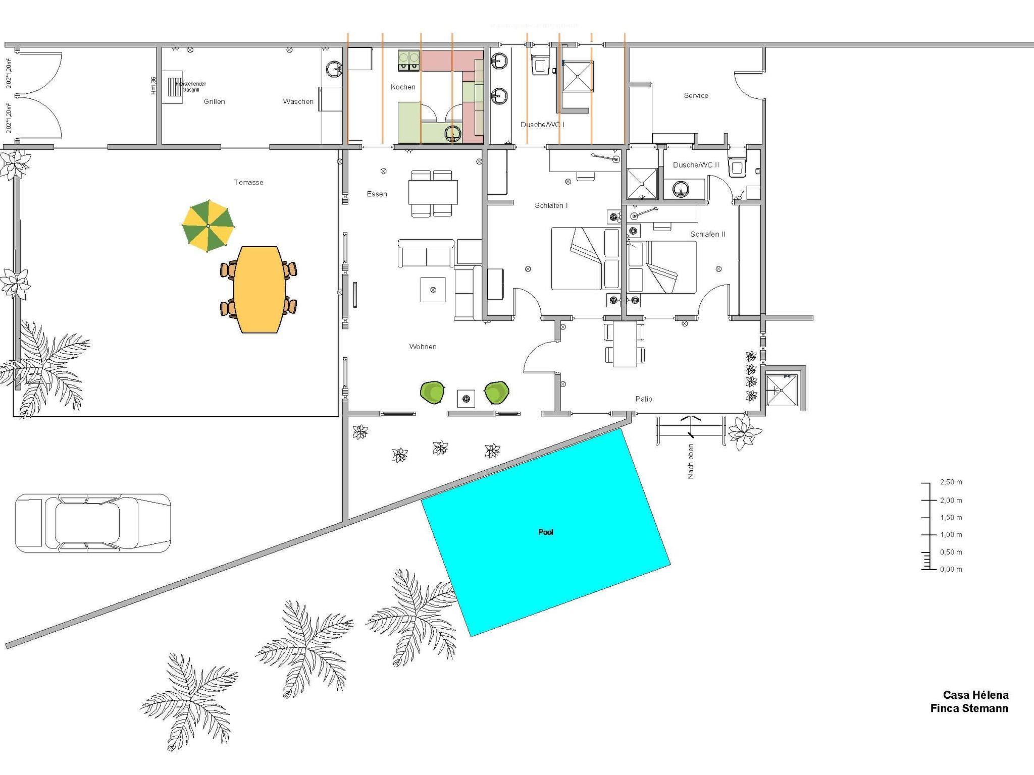 The landlord's family lives on the finca. The water is of the highest quality and comes from a neighbouring deep well; the electricity is supplied directly from the sun - in island mode and without a connection to the public energy supplier. On the few rainy days and especially in winter, there may be a shortage of electricity; in this case there is a diesel generator. The landlords grow wine, fruit, vegetables and spices in their own garden for their own use. If you wish, you can buy these products fresh and ecologically sound.
