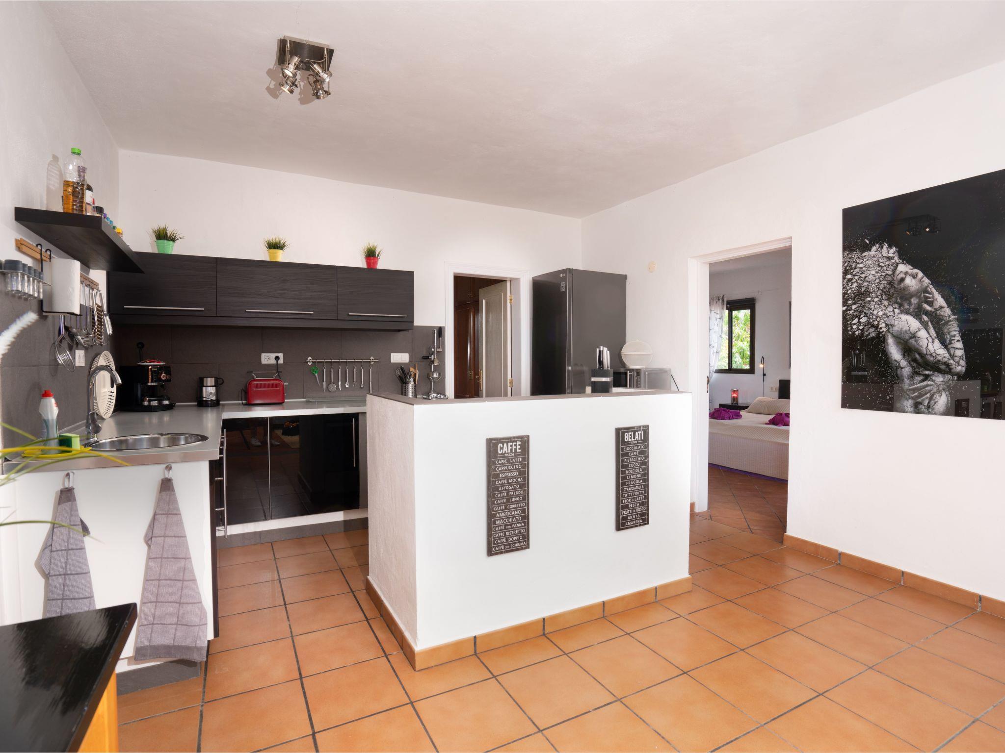 Your holiday home is embedded in our three-hectare finca; it is located on its own plot of around 2,000 m². In the outdoor area of the house you have a barbecue area with a cosy seating area and wonderful views of the fascinating surroundings. On the spacious terrace you can enjoy spectacular sunsets, depending on the season, over the sea or the neighbouring islands.