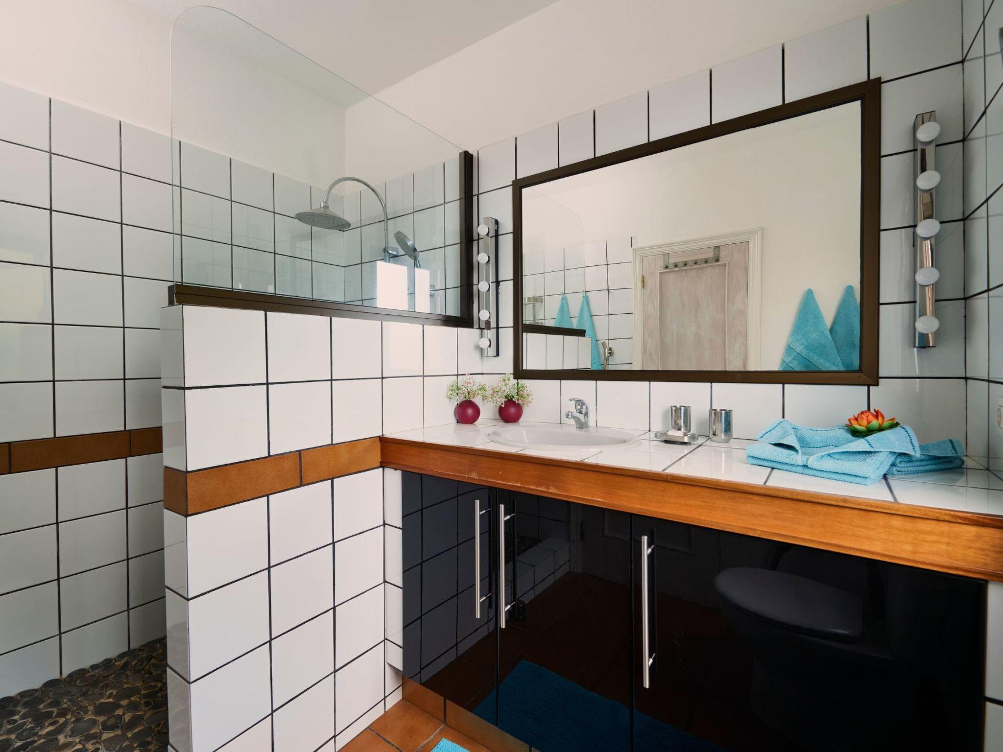 In the detached holiday home Casa Isabel you will find a fully equipped kitchen with fridge/freezer, gas hob, oven, toaster, microwave and coffee machine on a living space of 122 m². You can enjoy your meal with a sea view right next to the kitchen. In the living area, take a seat on the comfortable sofa, read a book, enjoy music in 3.1 sound or watch a great film on the flat screen with the latest LED technology - from German satellite TV or a medium you have brought with you. You can receive the relevant German-language radio and television programmes. The bedrooms are bright, decorated with fresh colours and modern furniture; they invite you to feel at home. Each bedroom has its own bathroom with a spacious shower, a washbasin with plenty of storage space and a WC. One of the bedrooms/bathrooms is equipped for the disabled. The beds are 1.80 x 2.00 m and 1.60 x 2.00 m respectively. For an occupancy of up to two persons, only one bedroom is available. If you would like separate bedrooms, please discuss this with us in advance.