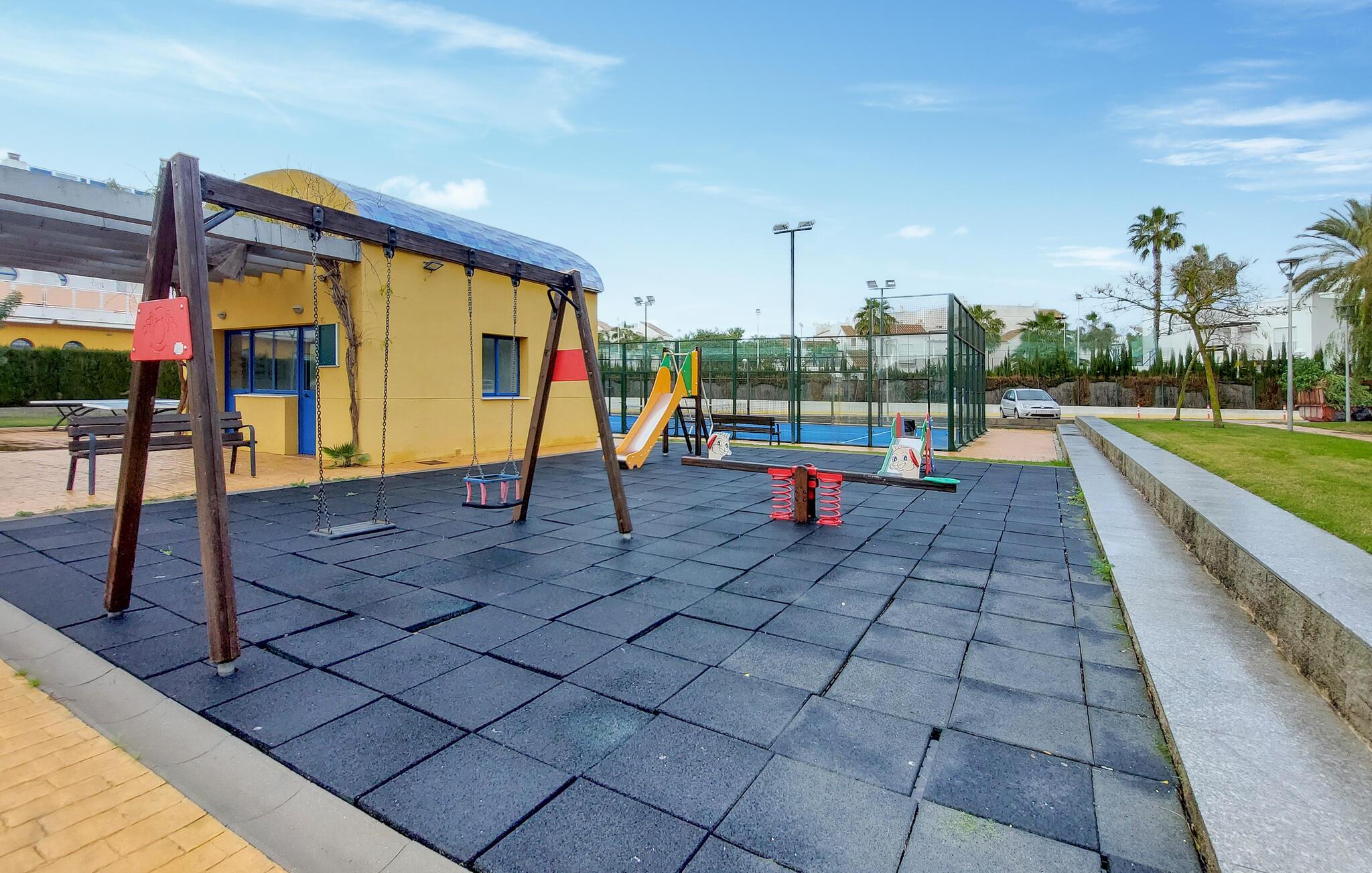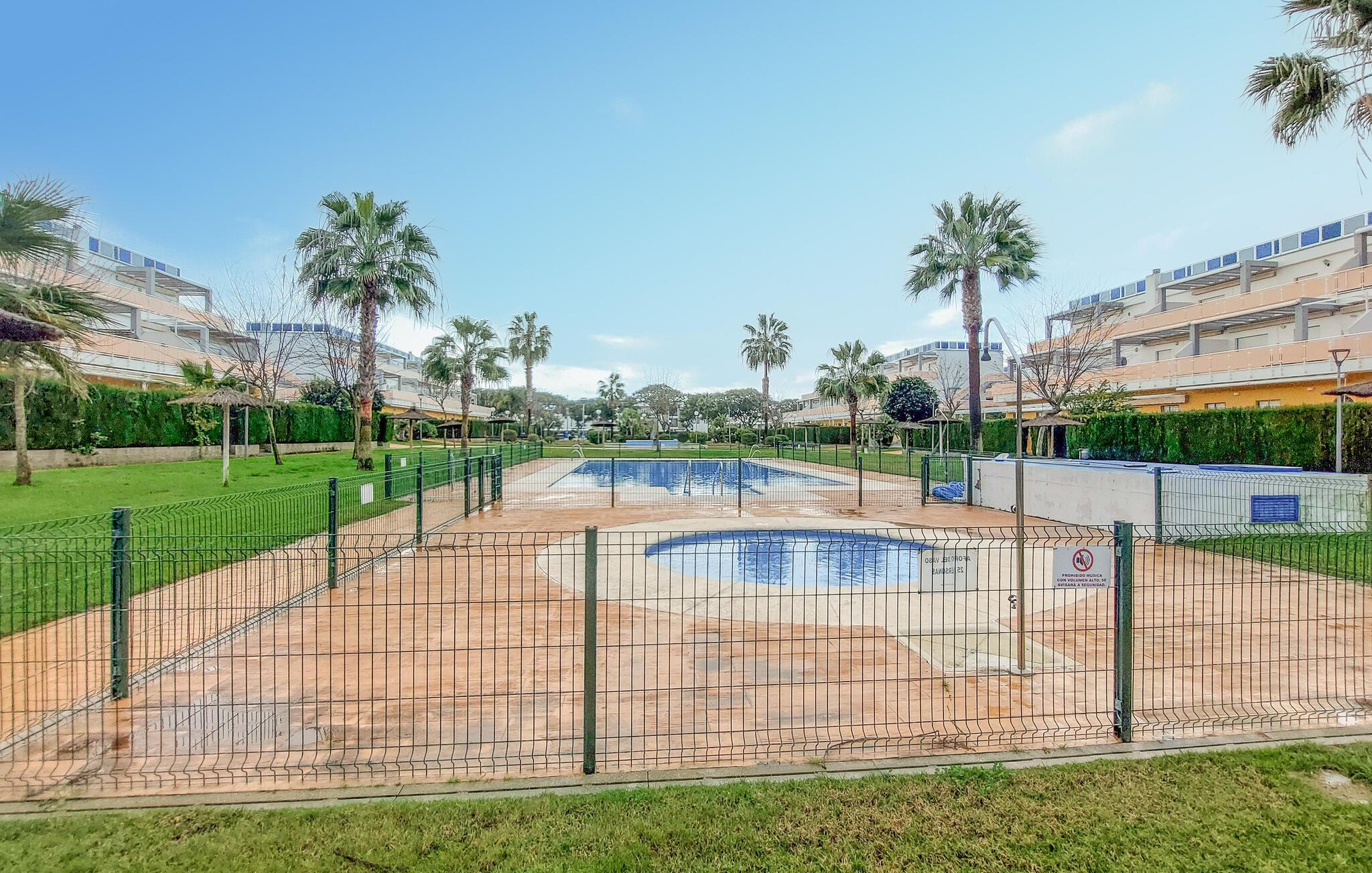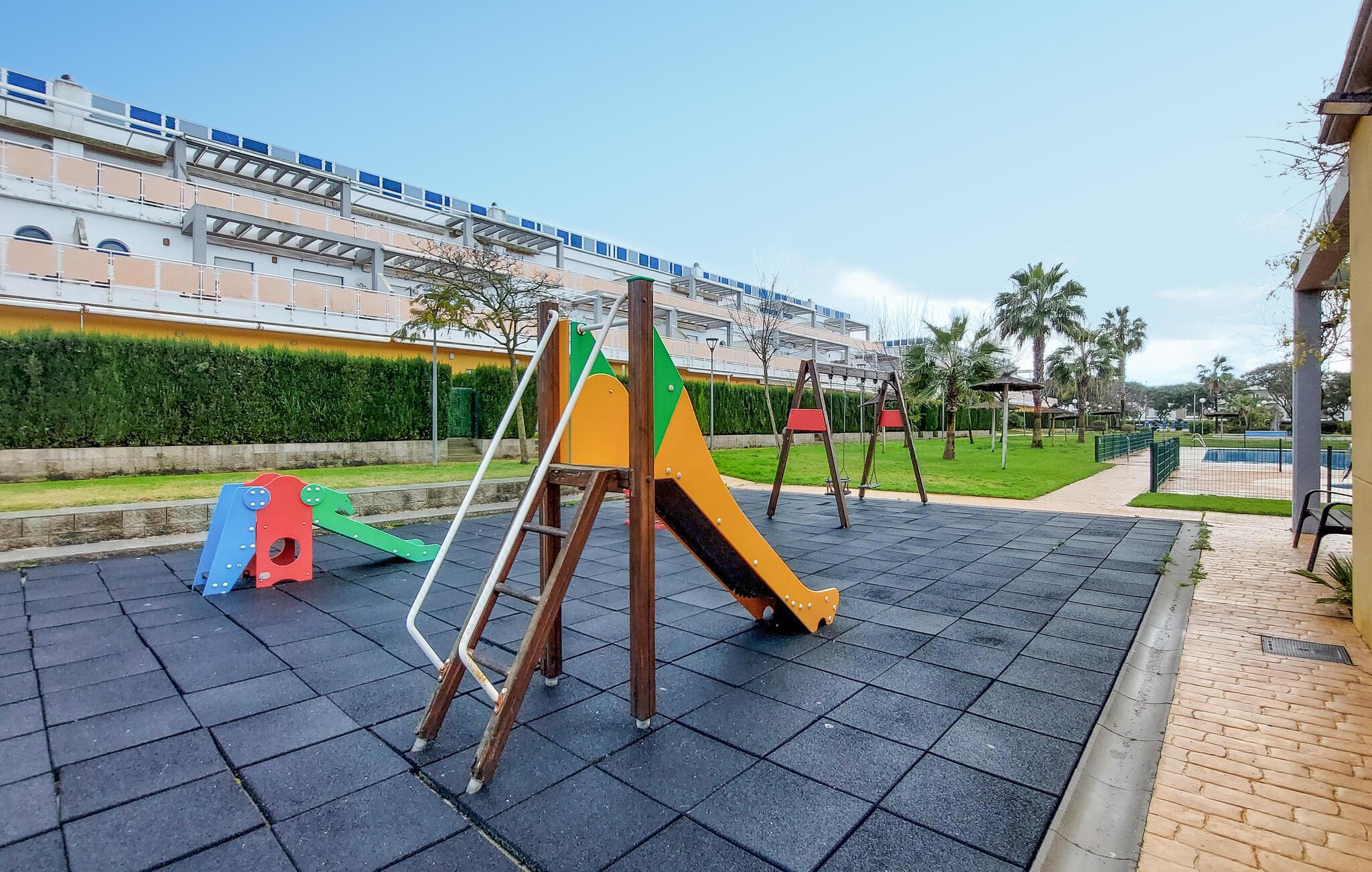 Denne rummelige og familievenlige ferielejlighed lægger op til afslappende dage på Costa de la Luz. De komfortable møbler skaber en varm atmosfære, hvor I straks vil føle jer hjemme. Den rummelige opholdsstue giver jer plads til omgængelige aftener, mens det veludstyrede køkken er ideelt til fælles måltider. Et særligt højdepunkt er den store private terrasse - perfekt til lange sommeraftener under stjernerne. Det fantastiske fællesområde med pools, legeplads, bordtennis og paddletennis sikrer sjov og variation for hele familien.