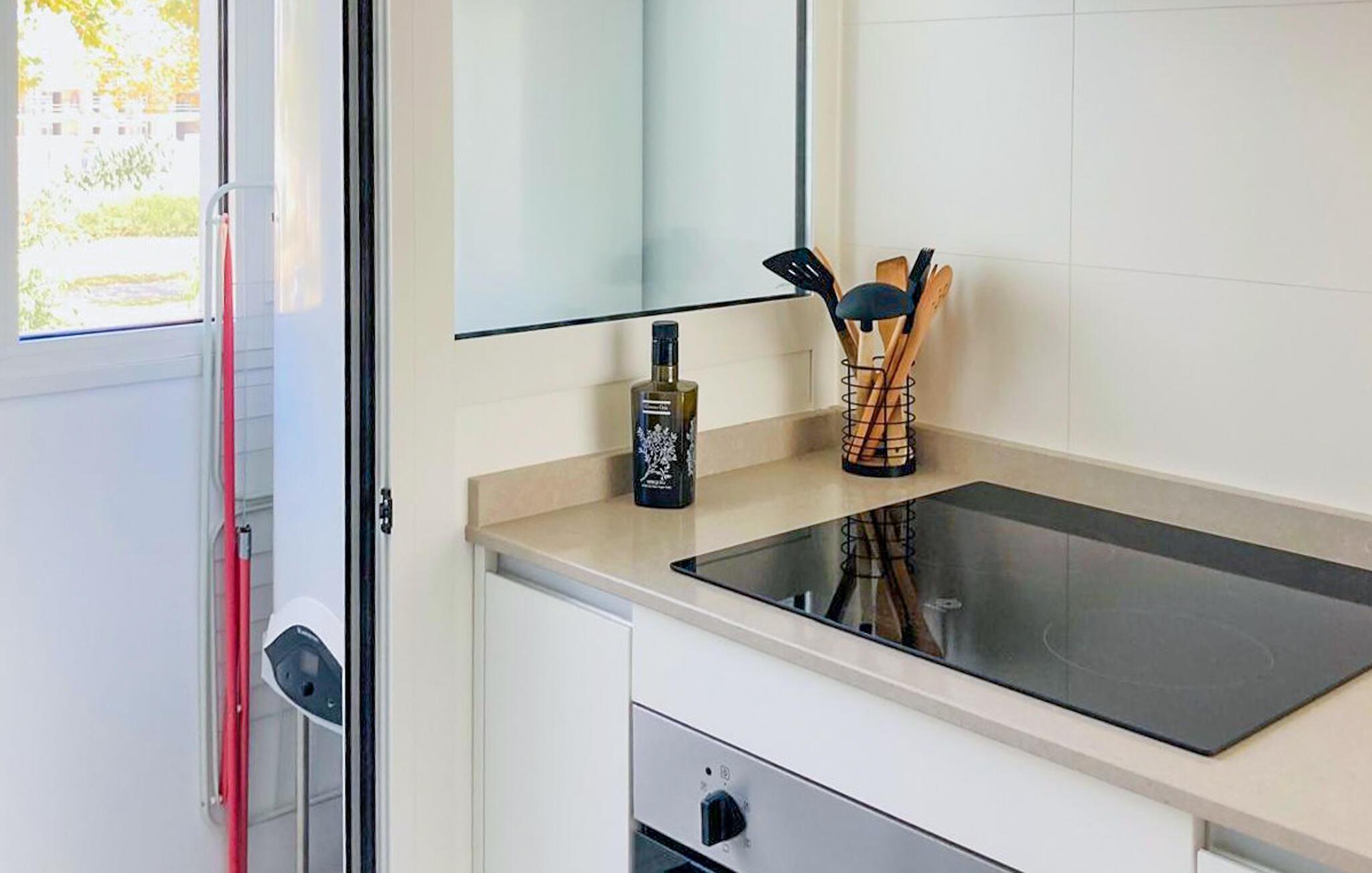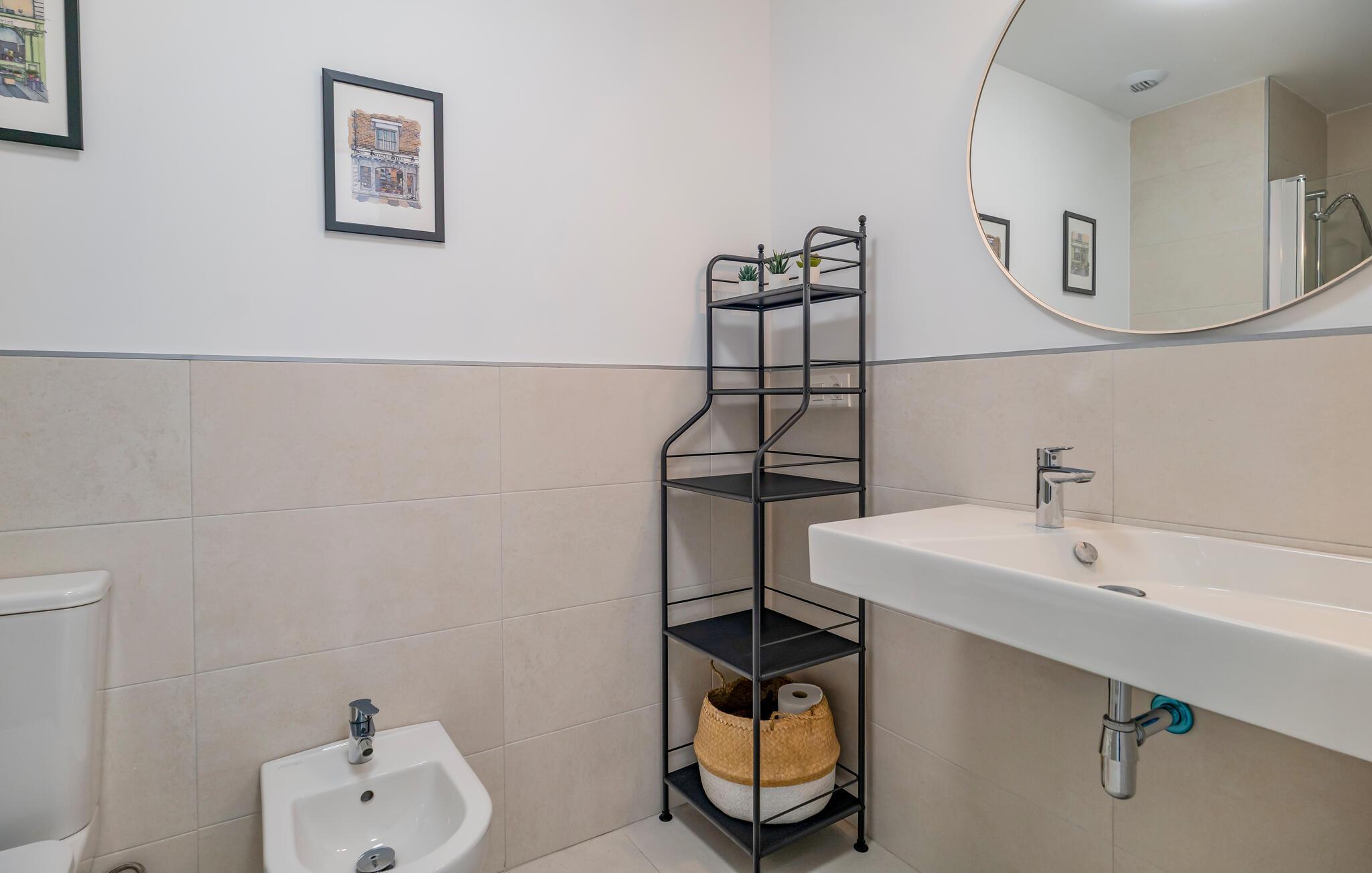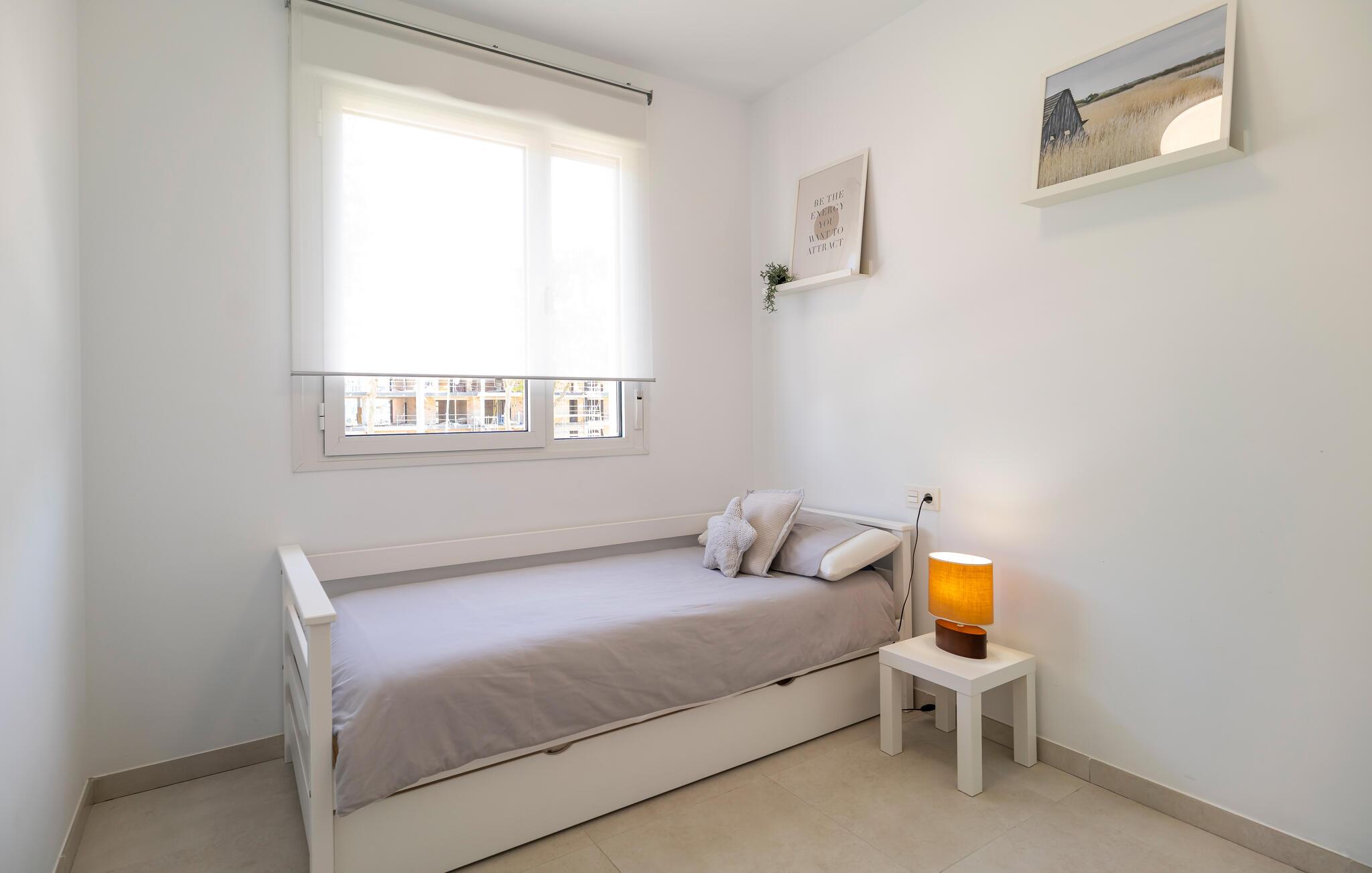 Velkommen til denne lyse og moderne ferielejlighed, som byder på talrige ekstraudstyr midt i et velholdt boligområde. Fremtryll lækre tapas, server måltiderne ved det stilfulde spisebord, Find jer godt til rette i sofaen efter en begivenhedsrig dag, stream en film eller hel jer familien med en spilleaften.