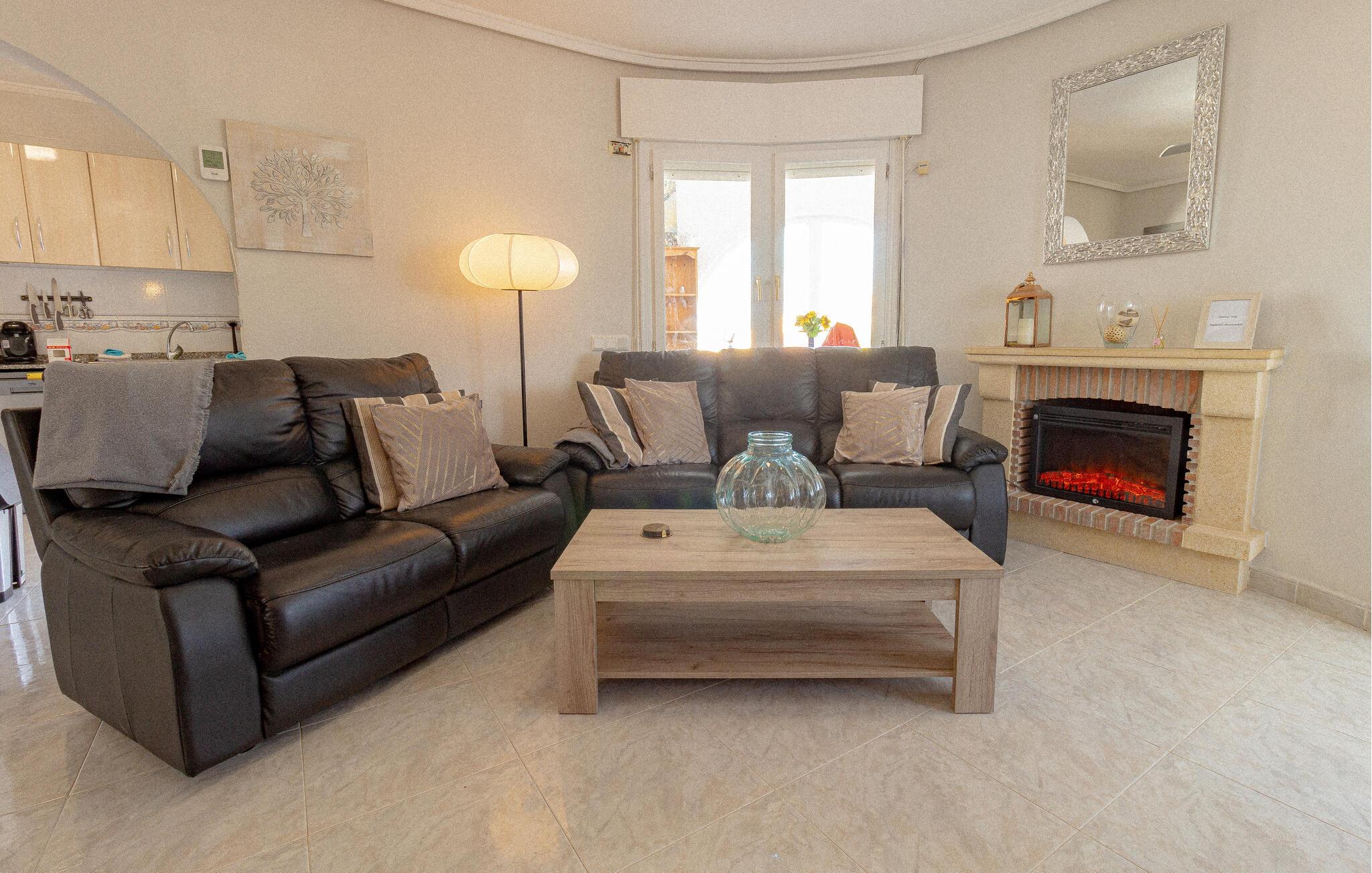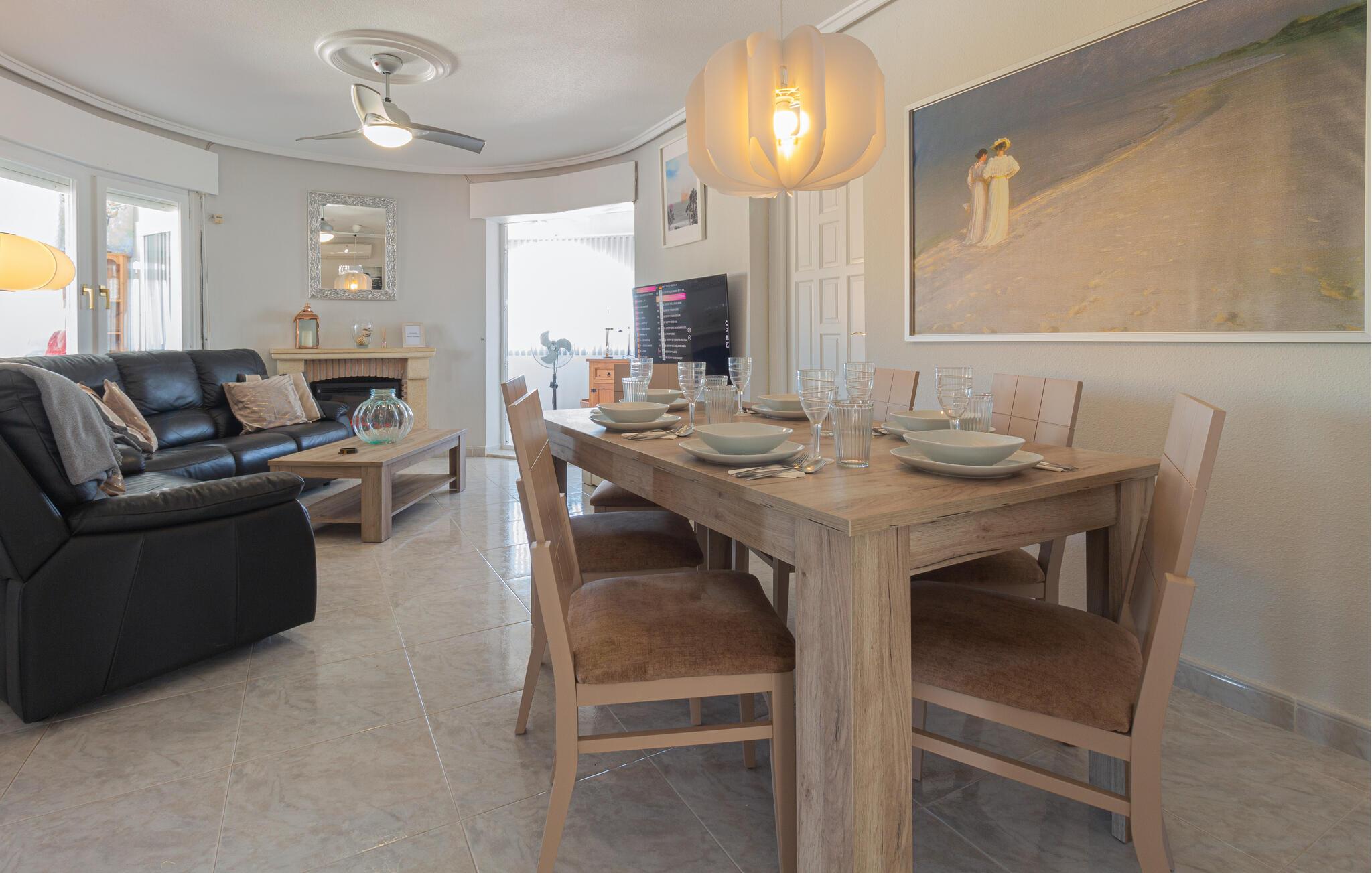 Tillad jer selv en pause fra hverdagen og tag familien med på en dejlig ferie under den spanske sol. Huset er smukt indrettet med smagfuldt interiør og kunst på væggene, der skaber en behagelig og hjemlig atmosfære. Boligen er den helt ideelle base for en behagelig sportsferie, og særligt hvis jeres hjerter banker for golf. Efter dagens runder kan I slappe af på en af ??terrasserne med en kølig drink eller tage en forfriskende dukkert i poolen. Der er carport til en bil.