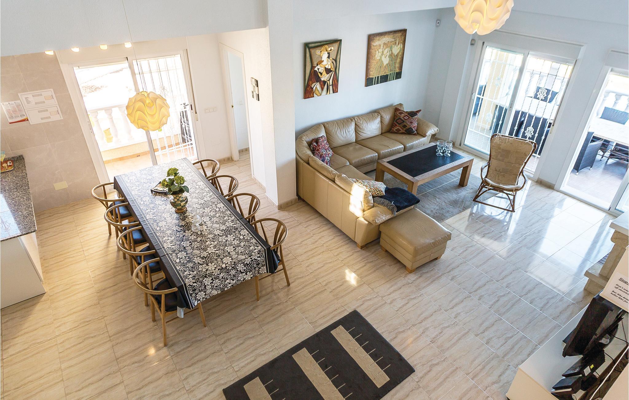 Foran den overdækkede terrasse, der hører til dette hus, har I en drømmeudsigt ud over golfbanen Marquesa. Snup en forfriskende svømmetur i swimmingpoolen og lad blikket vandre, mens I nyder den fabelagtige udsigt. Trods den skønne pool, skal I også forkæle jer selv med et besøg på de herlige strande med klitter ved Guadamar - de er bestemt et besøg værd! Også golfelskere vil elske dette sted. Klubhuset, restauranterne og butikkerne kommer I let til til fods. Dem, der holder ferie her, længes efter fred og ro, skøn udsigt til bjergene og at kunne nyde det smukke lyshav i dalen om aftenen. Ikke langt fra huset ligger der et fredet naturområde med to saltsøer, hvor I kan betragte eksotiske fugle. Regionen byder på talrige markeder, hvor I bl.a. kan finde eksotiske frugter og grøntsager til favorable priser - gå ikke glip af en oplevelsesrig ferie her. Blandt feriehusets særlige udstyr er en mobil gasgrill, en børnehøjstol, og en babyseng. sengelinned til denne er mod betaling.