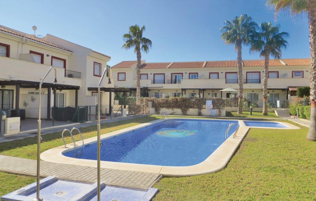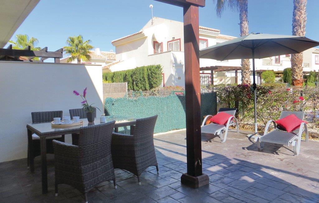 Dette stilfulde rækkehus til fire personer er moderne indrettet, og ligger i udkanten af den kendte lille by Ciudad Quesada. Feriehuset består af to soveværelser og et badeværelse samt flere terrasser, hvor I kan nyde det skønne klima, der findes i denne region. Komplekset byder på et velplejet udendørs område med en fælles swimmingpool, der ligger direkte ved jeres solterrasse. I nærheden er der supermarkeder, restauranter og et apotek.