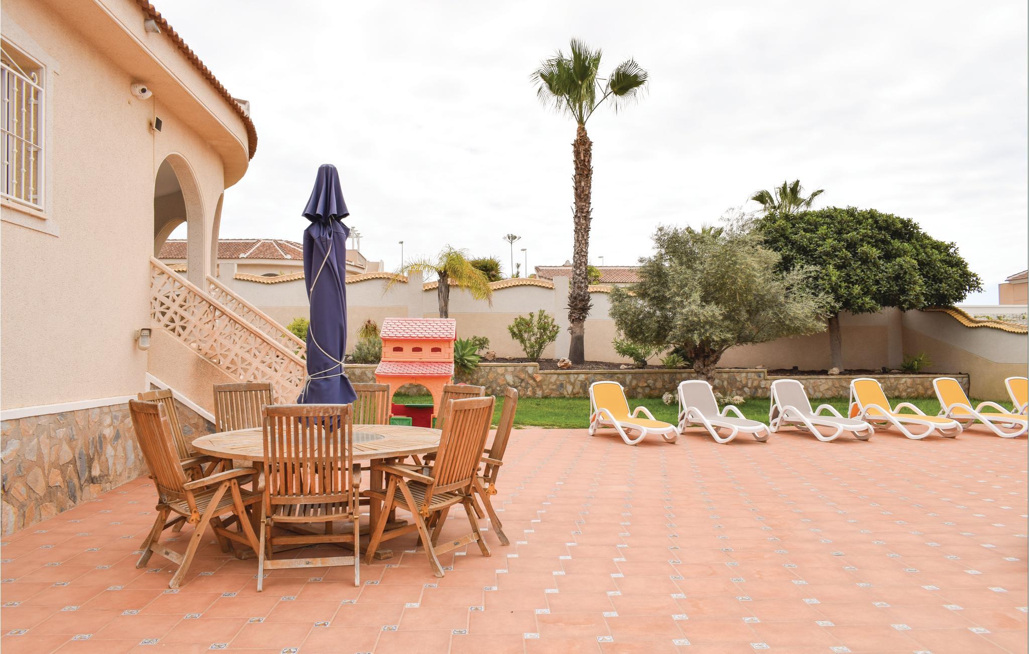 Denne charmerende villa i Ciudad Quesada er bygget i en betagende middelhavsstil og ligger i et dejligt boligområde kun 6 km fra fine sandstrande. Huset tilbyder smukke indendørs og udendørs områder, hvor du kan synke helt hen i feriens herligheder. Der er en privat swimmingpool og rummelig terrasse. Det moderne design strømmer gennem villaens to etager og giver masser af privatliv. Den lyse og rummelige stueetage har en stilfuld stue, spiseplads forbundet til stue og køkken, tre soveværelser og to badeværelser, et af dem en suite med et moderne dobbeltbrusebad. En stor terrasse på første sal ikke er forbundet med det indre af stueetagen. Møblerne i dette hus er af høj kvalitet, og du vil føle dig hjemme her. Poolområdet er udstyret med udendørs bruser, havemøbler, grill, spisebord og spisestole. Poolen lokker dig til at tage en forfriskende dukkert. Slap af på solsengene med en god bog eller nyd en grillaften med familie eller venner, hvor I giver jer i kaste med at lave lækker tapas. Den private grund med mere end 700 m² giver masser af plads til leg – der er også en privat parkering.